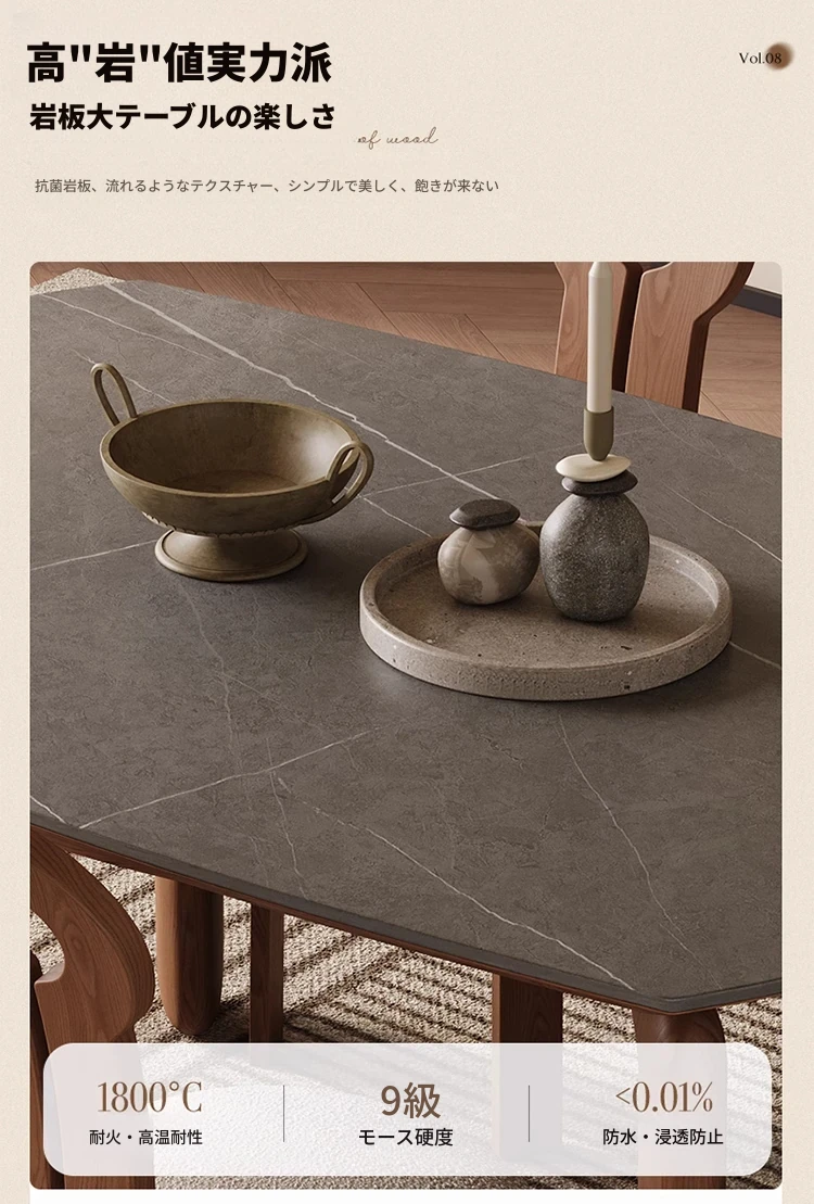 香港送料無料!スタイリッシュな現代的なデザイン、軽奢感あふれる岩板製のダイニングテーブル。小型住宅に最適な長方形、大理石の美しさが際立つレストラン用テーブル。おしゃれな食卓を演出!