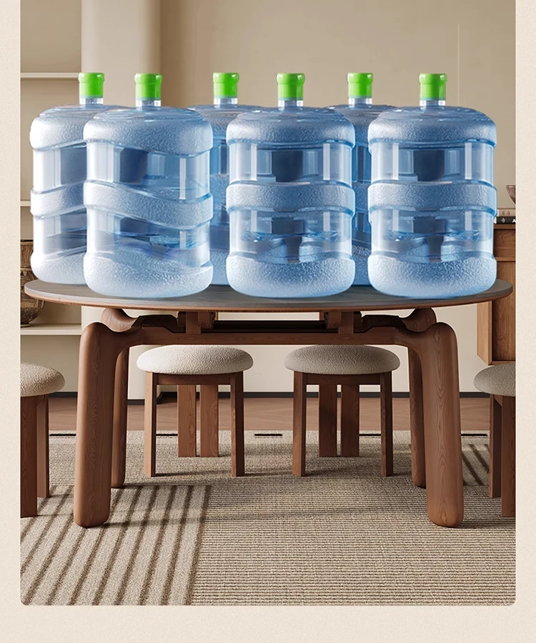 伸縮式の丸型・角型両用ロック板ダイニングテーブル、暖房・調理ができる電気ヒーター付き、マルチ機能で家族団らんを楽しめる!