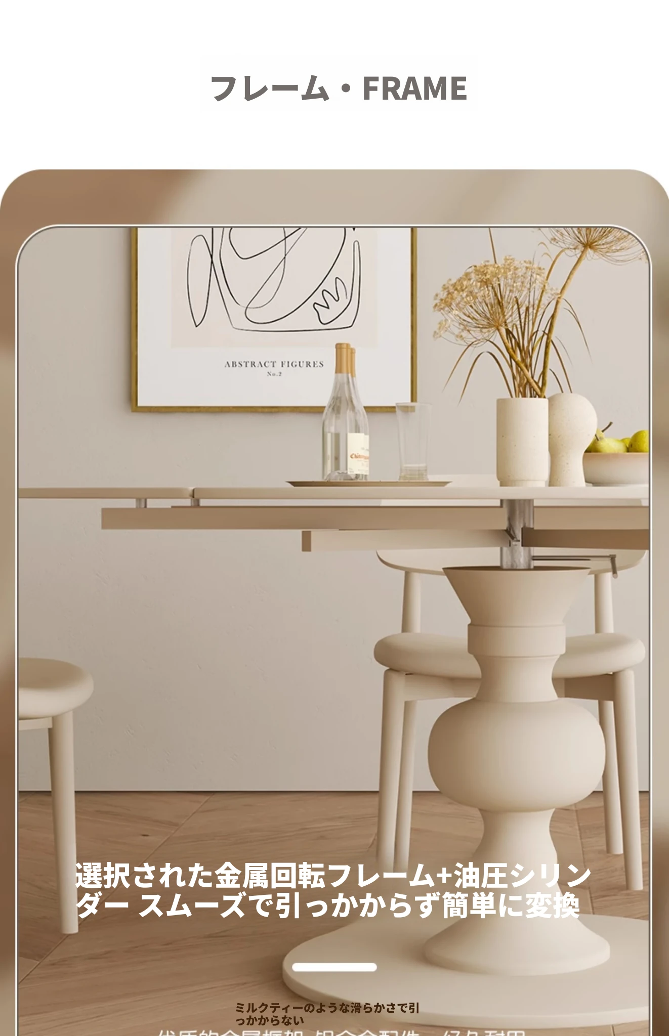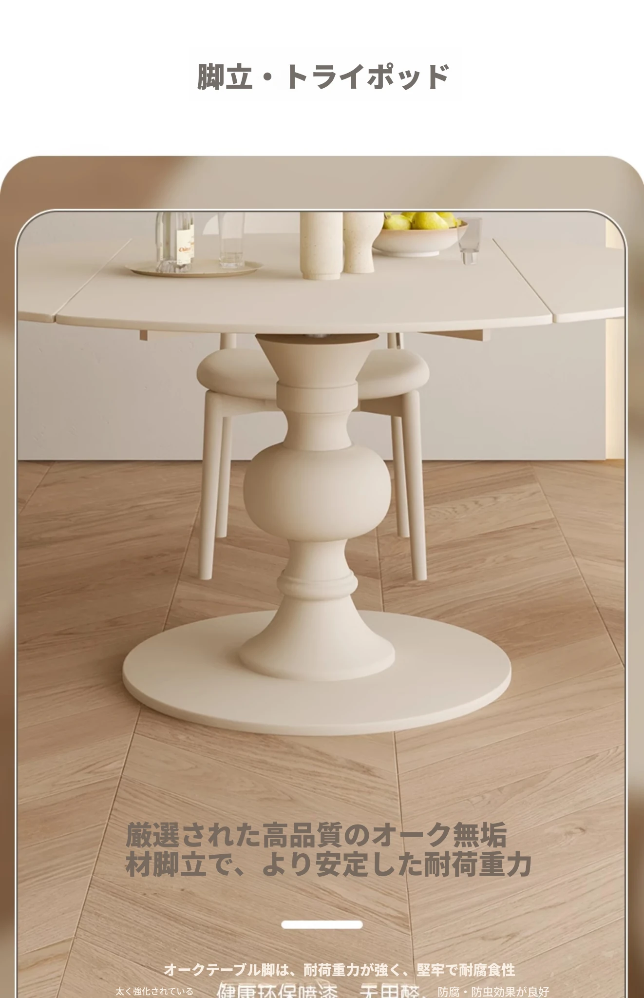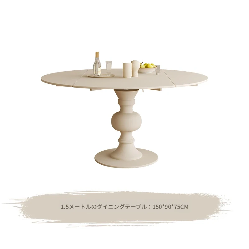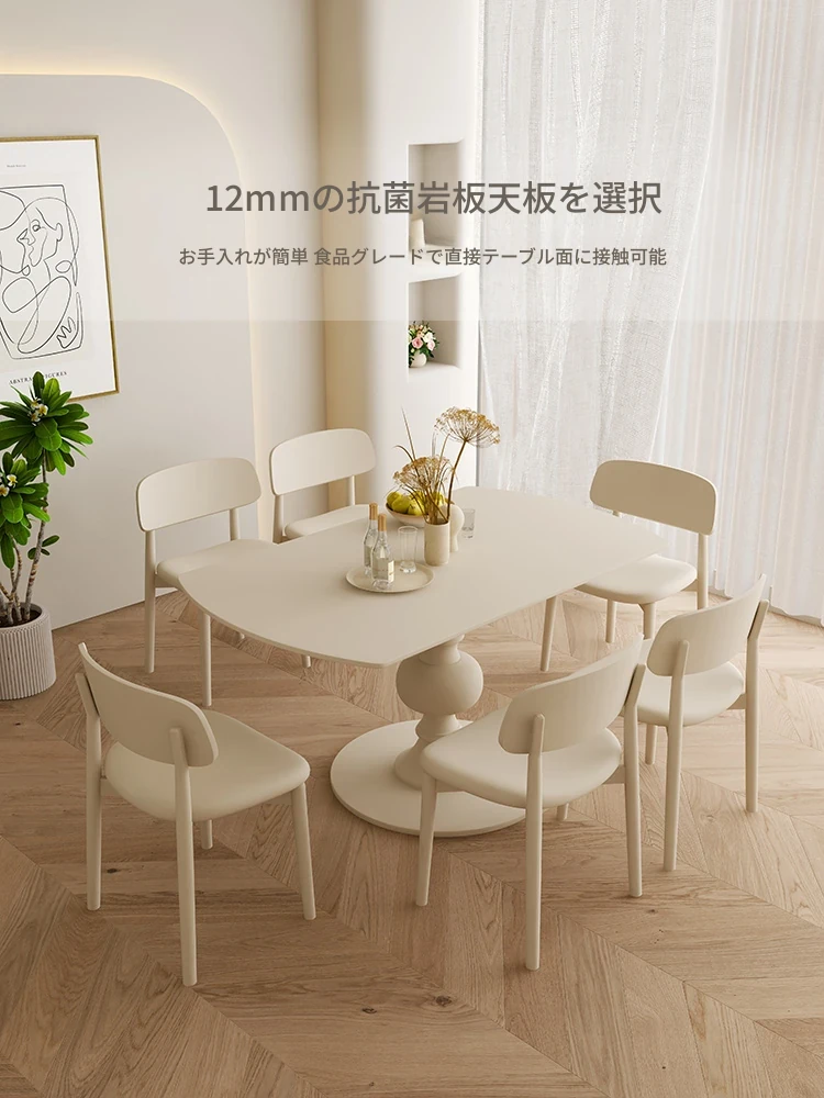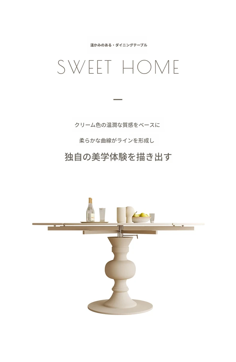 フレンチクリーム風の多機能折りたたみ式回転テーブル - 天然木と岩板製、四角から丸へ変形可能で伸縮自在。どんな空間にもぴったりフィットし、家族や友人との特別なひとときを演出します!