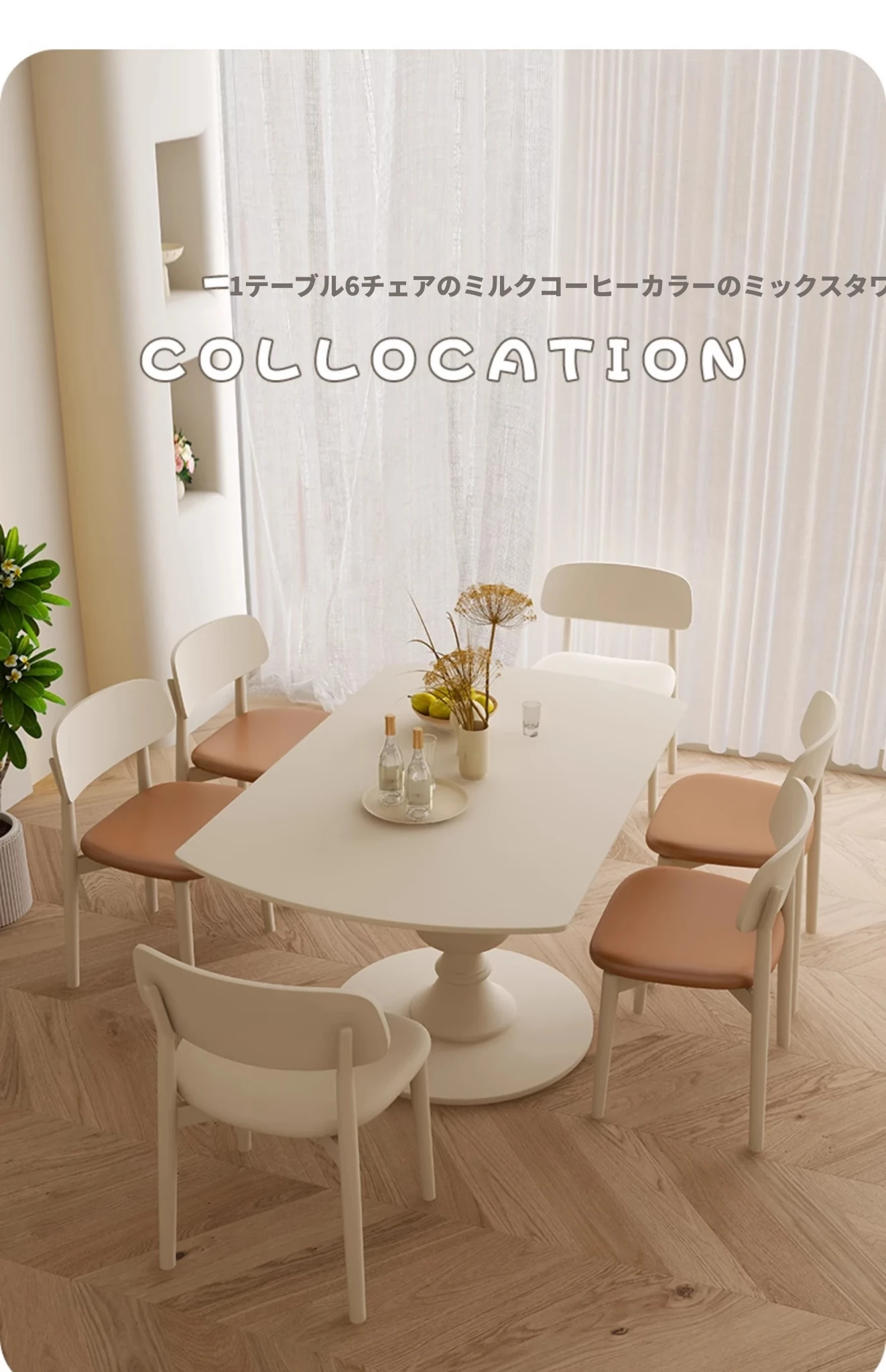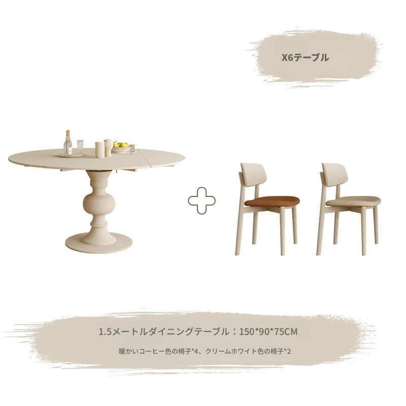 【新温旋转餐桌】1.5メートル+6椅子クリーム色