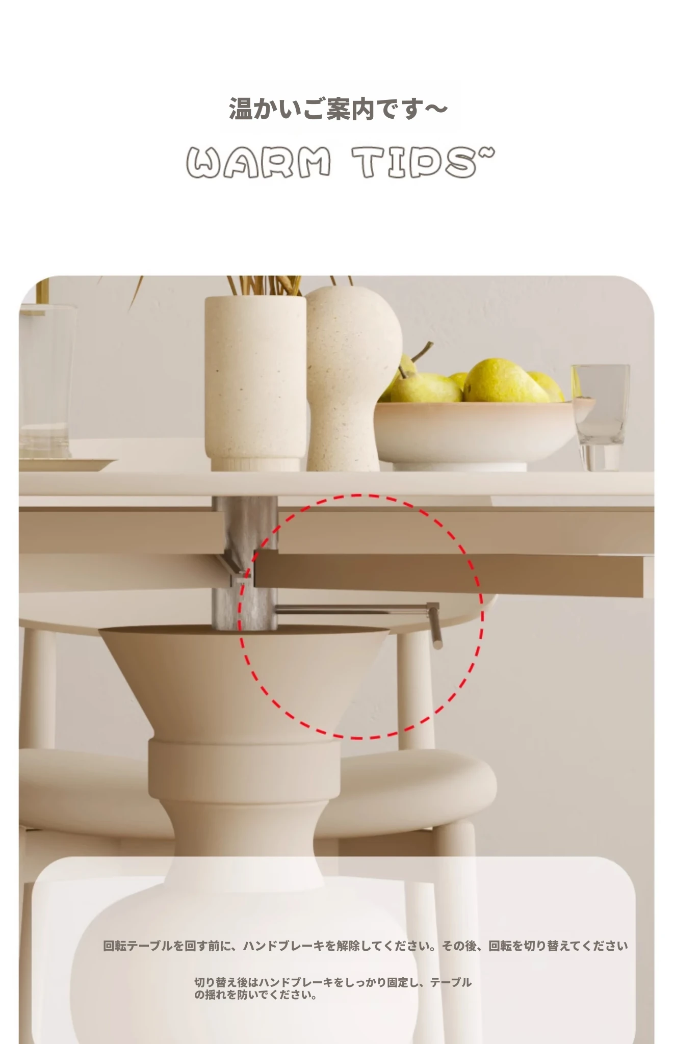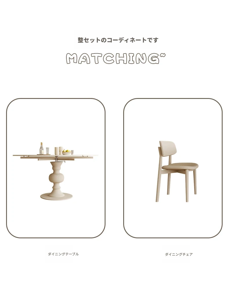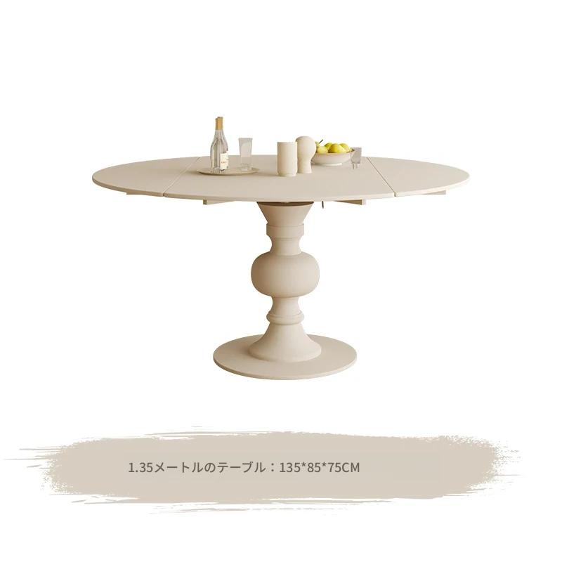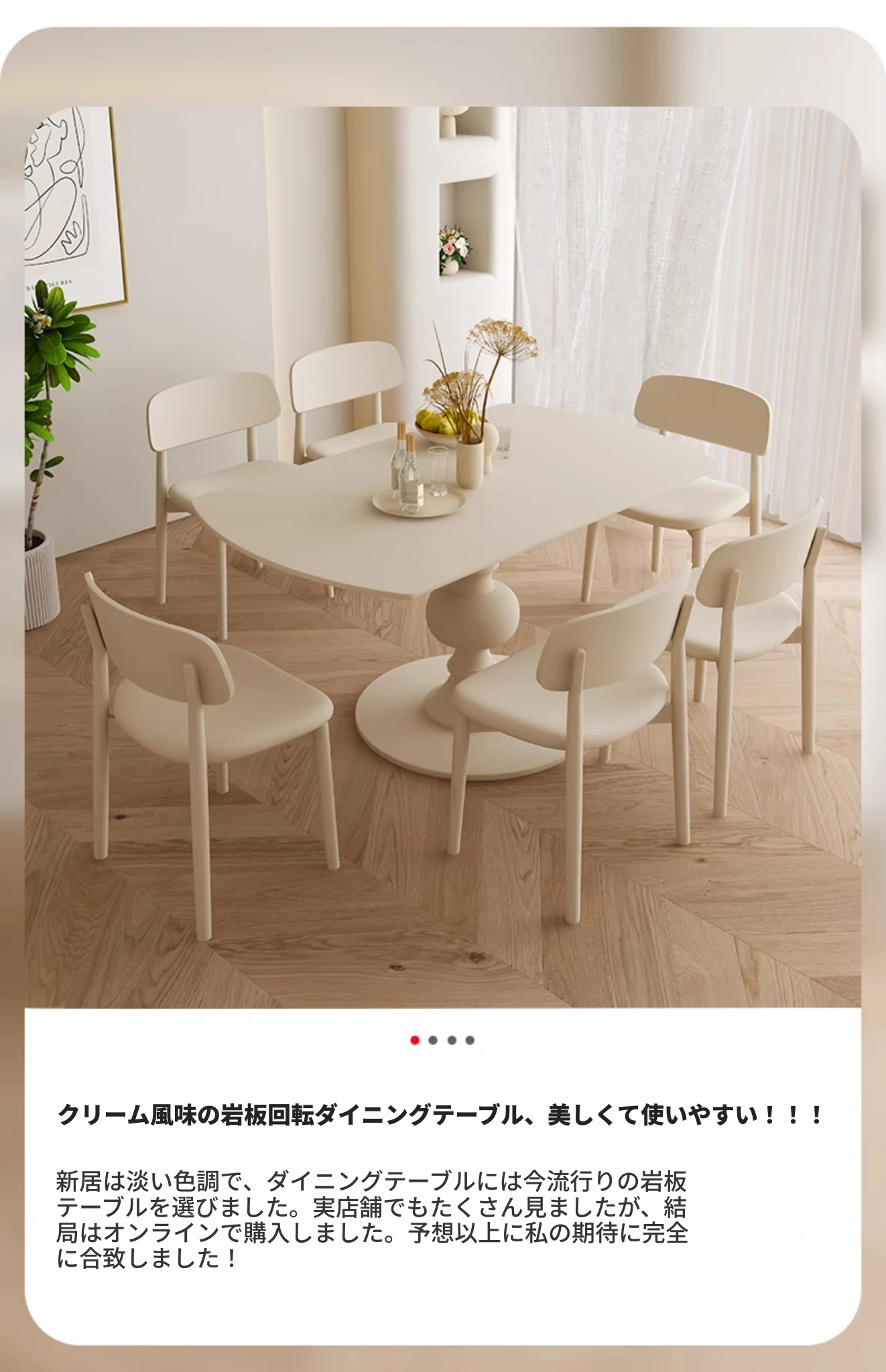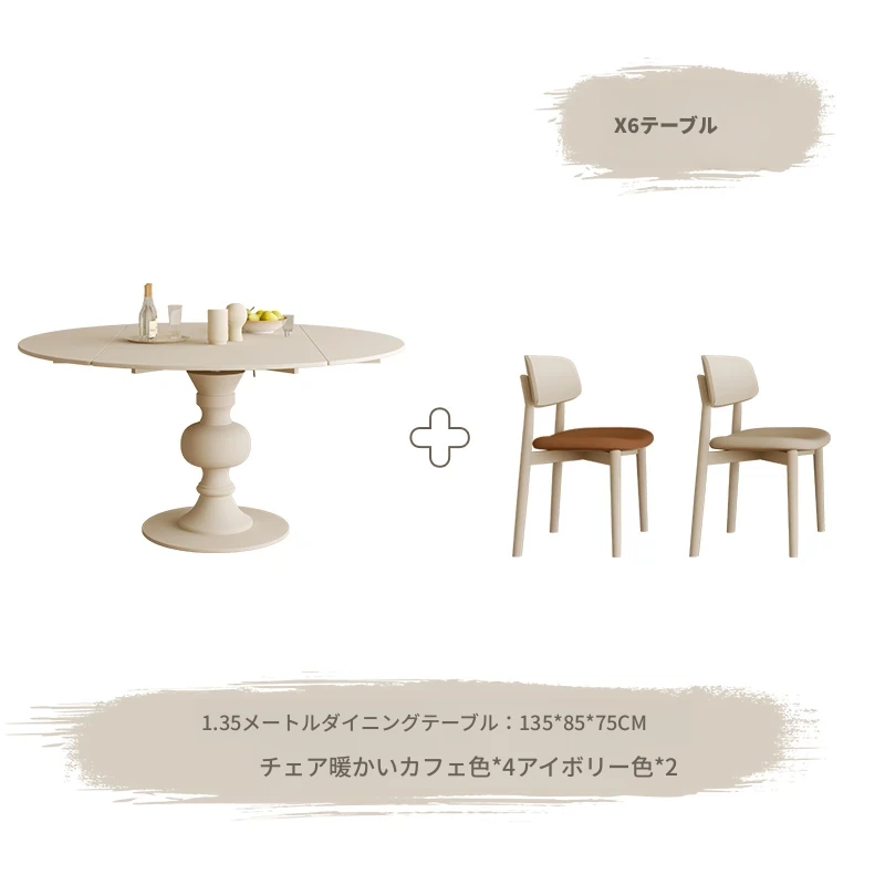 【新温旋转餐桌】1.35メートル+6椅子クリーム色