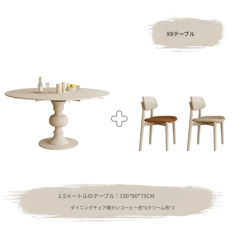【新温旋转餐桌】1.5メートル+8椅子クリーム色