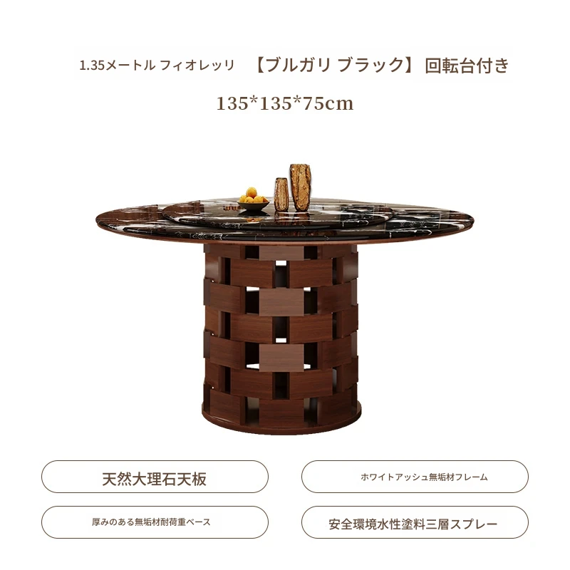 【ブルガリブラックダイニングテーブル+回転盤】直径1.35メートル