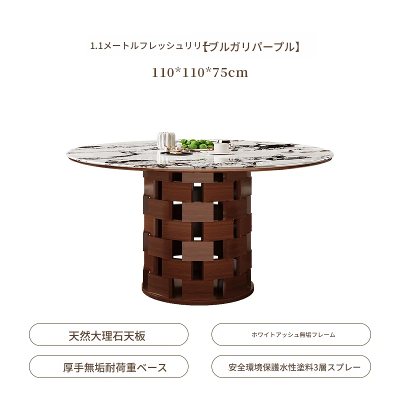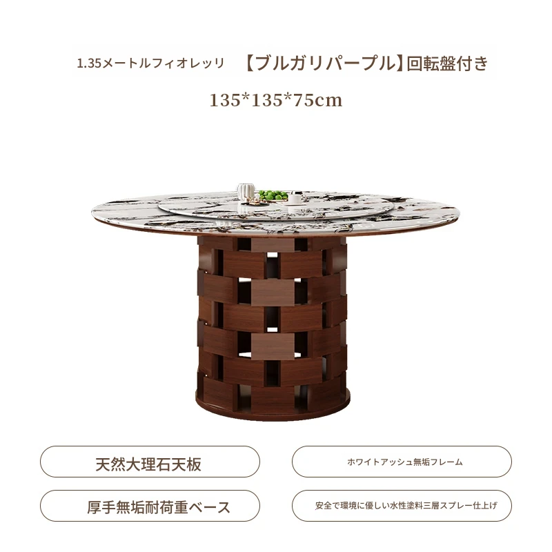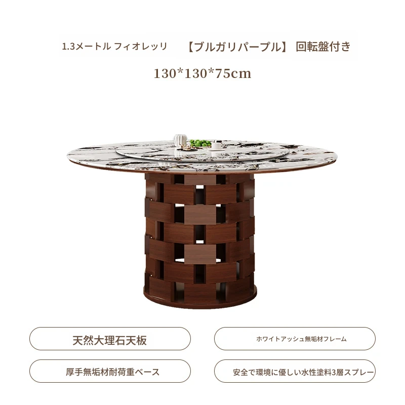 【ブルガリパープルダイニングテーブル+回転盤】直径1.35メートル