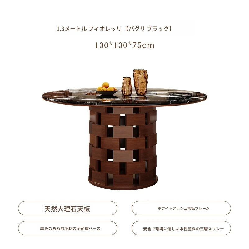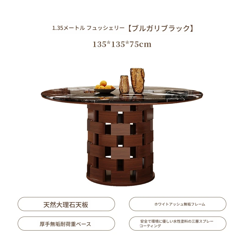 【ブルガリブラックブロックダイニングテーブル】直径1.35メートル