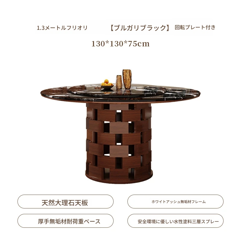 【ブルガリブラックダイニングテーブル+回転盤】直径1.3メートル