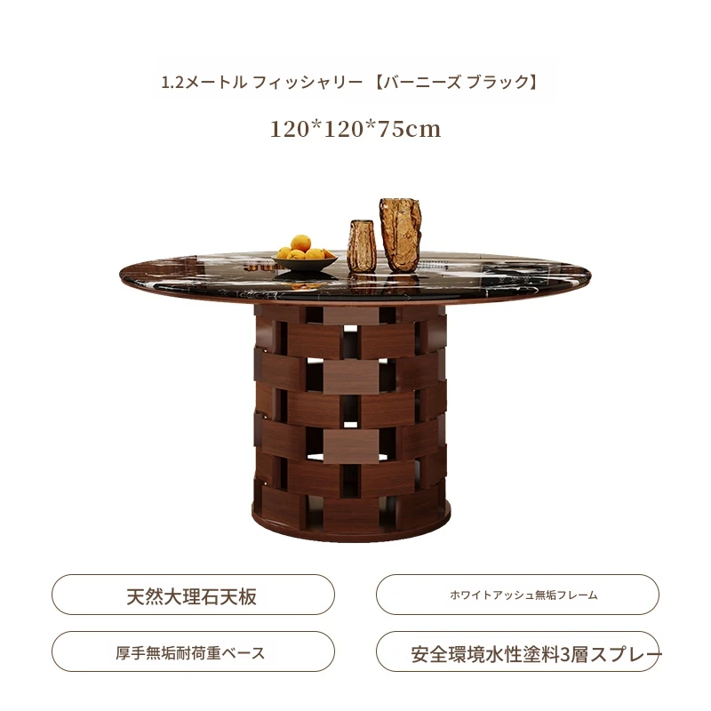 【ブルガリブラックブロックダイニングテーブル】直径1.2メートル