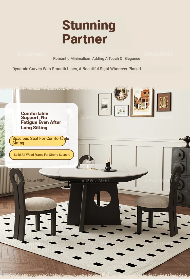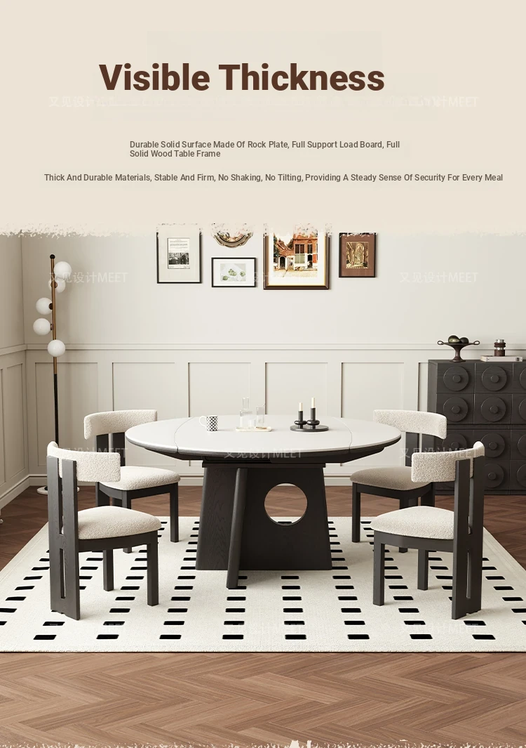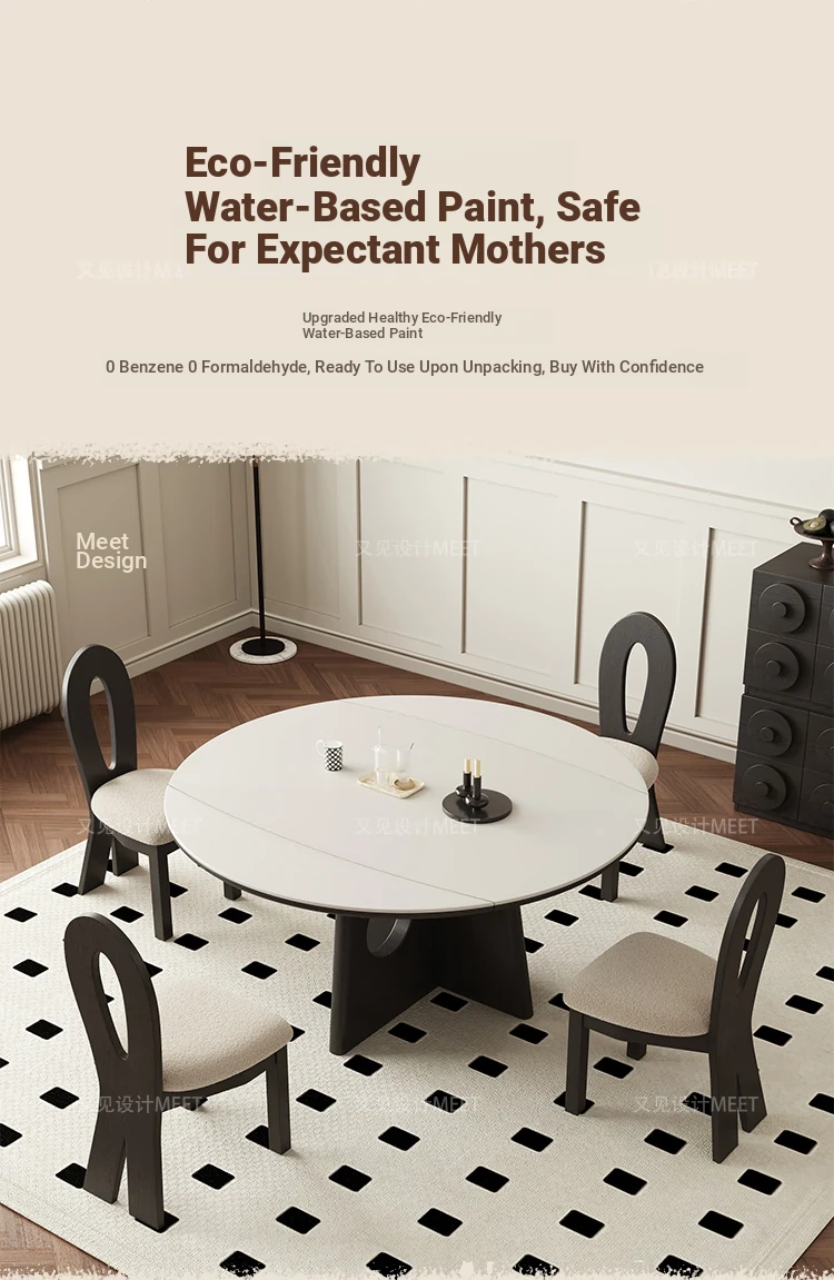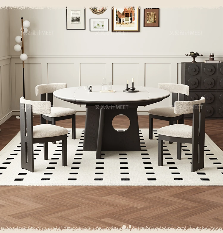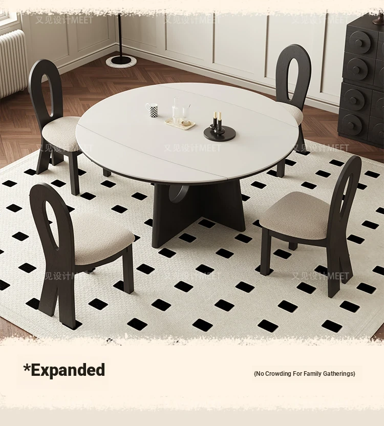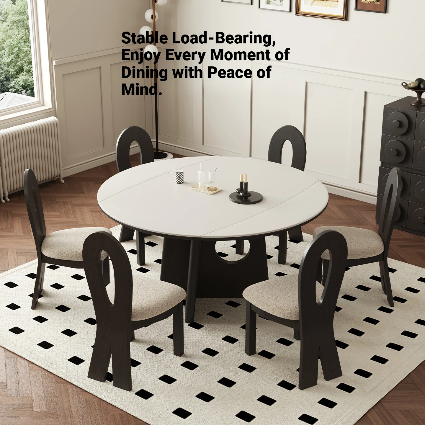 French Vintage Solid Wood Dining Table and Chair Set - Expandable Round Design for Home Living Room, Perfect for Family Meals and Gatherings.