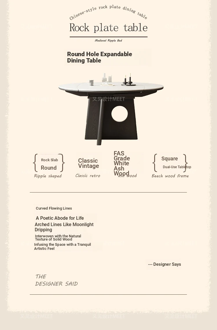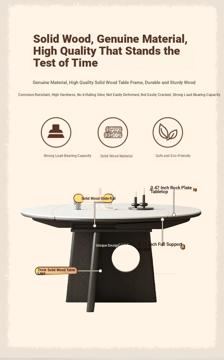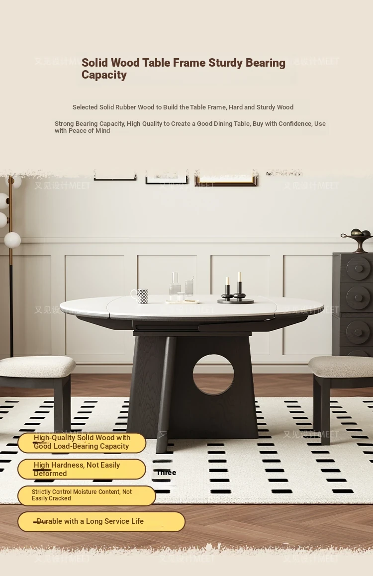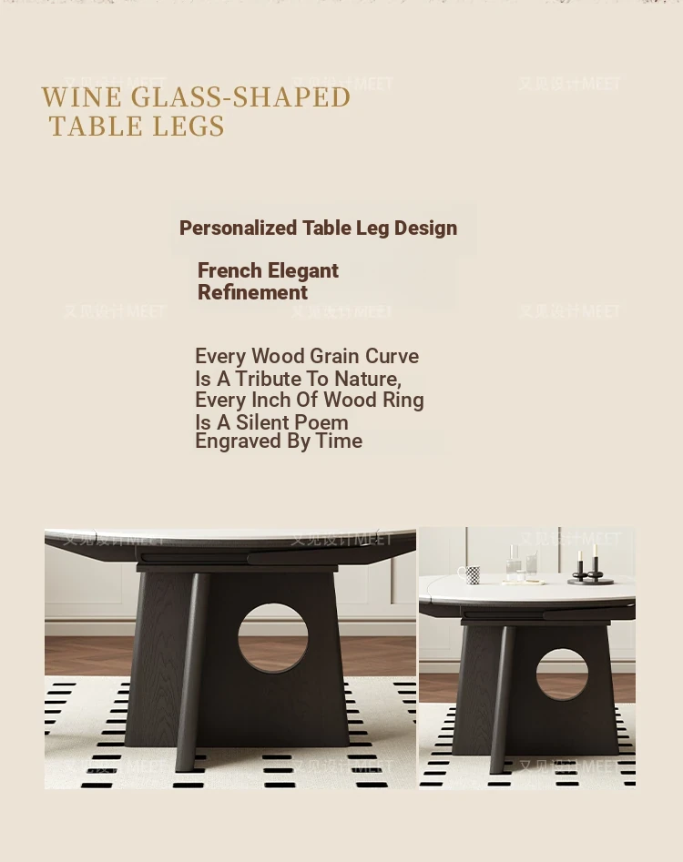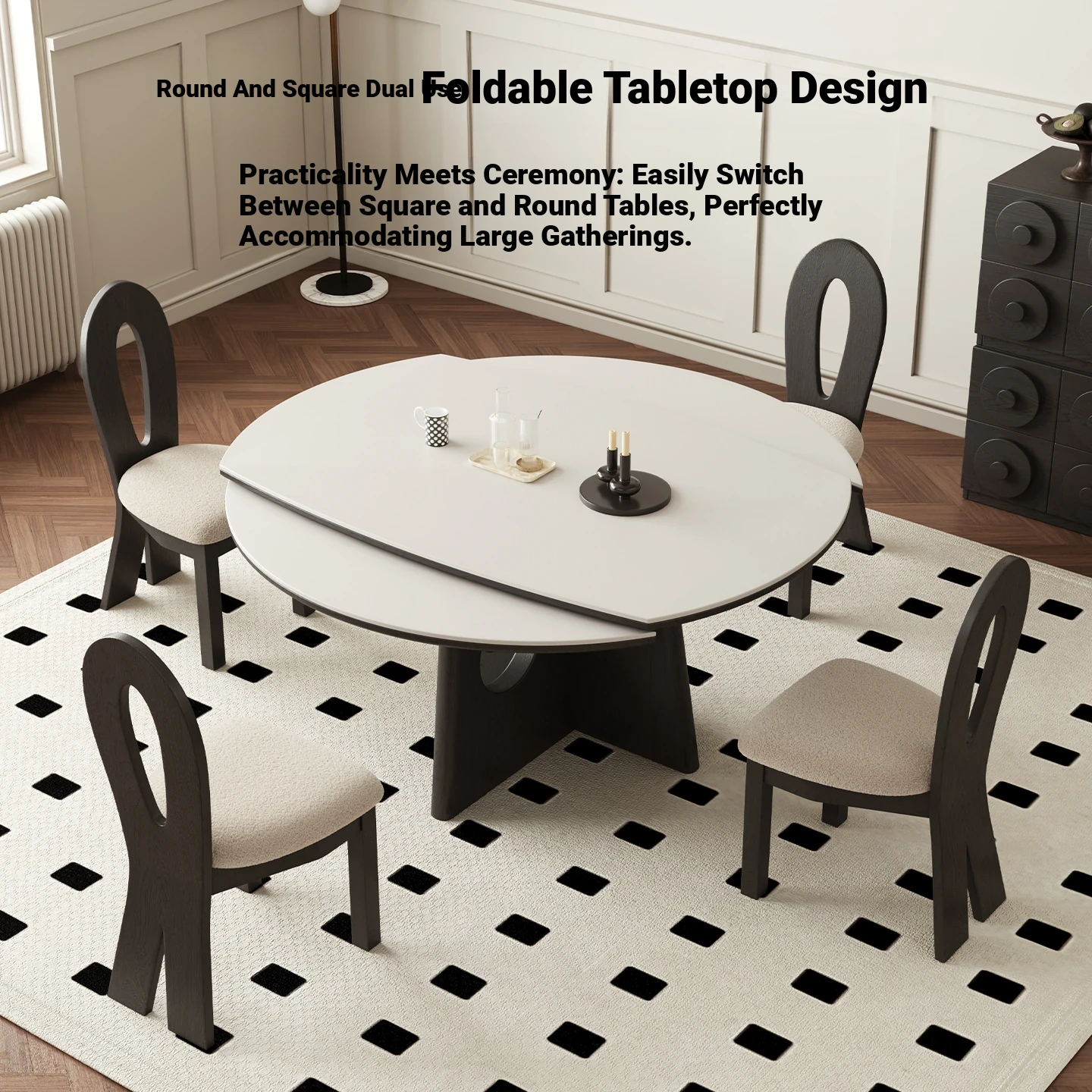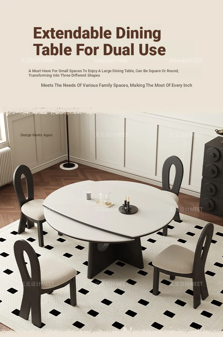 French Vintage Solid Wood Dining Table and Chair Set - Expandable Round Design for Home Living Room, Perfect for Family Meals and Gatherings.