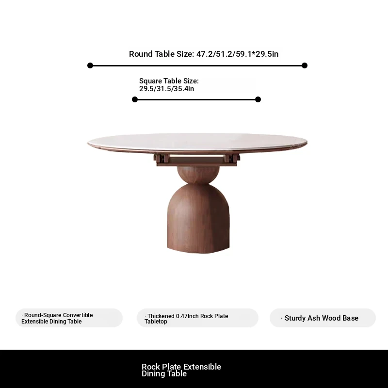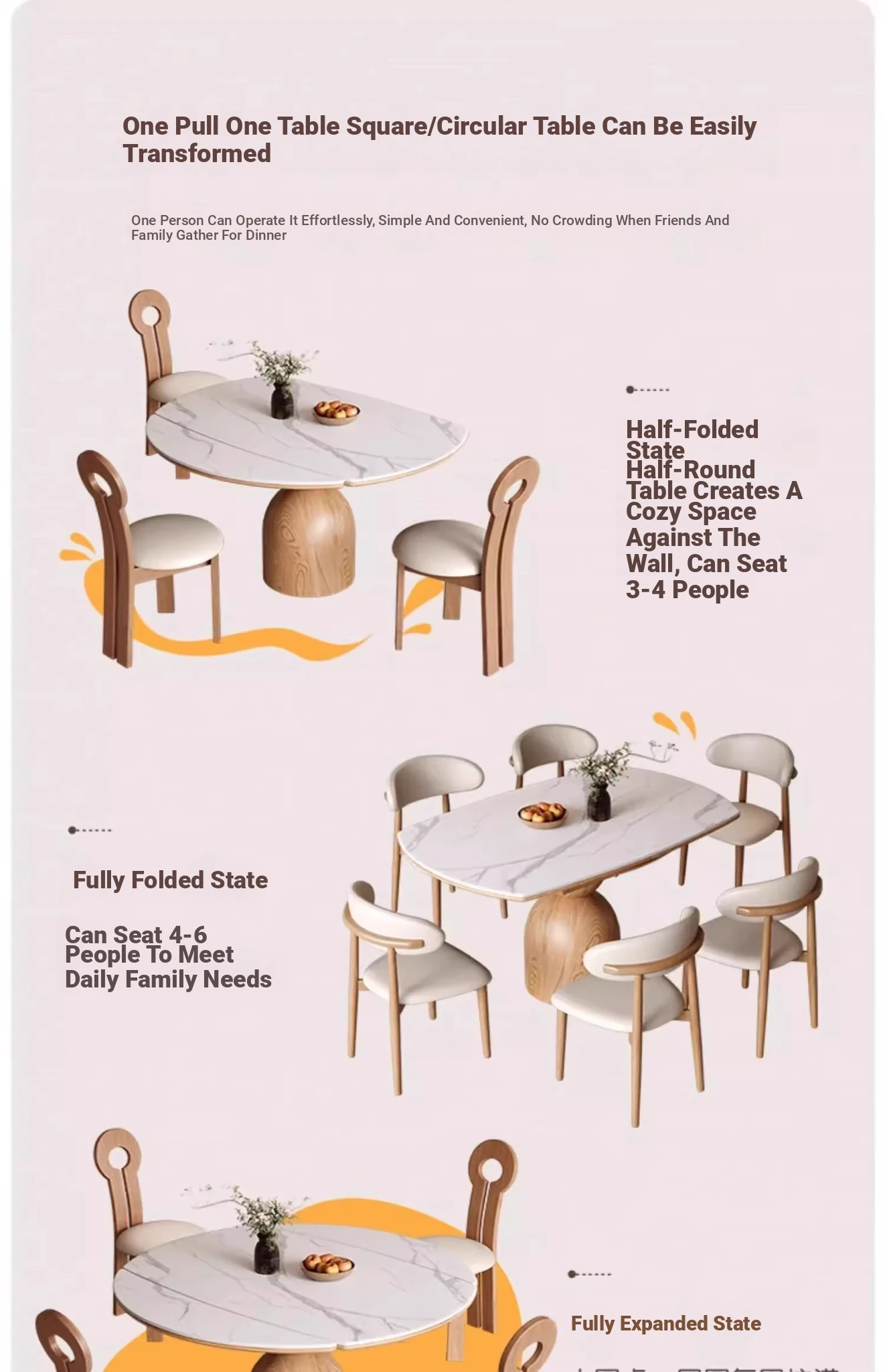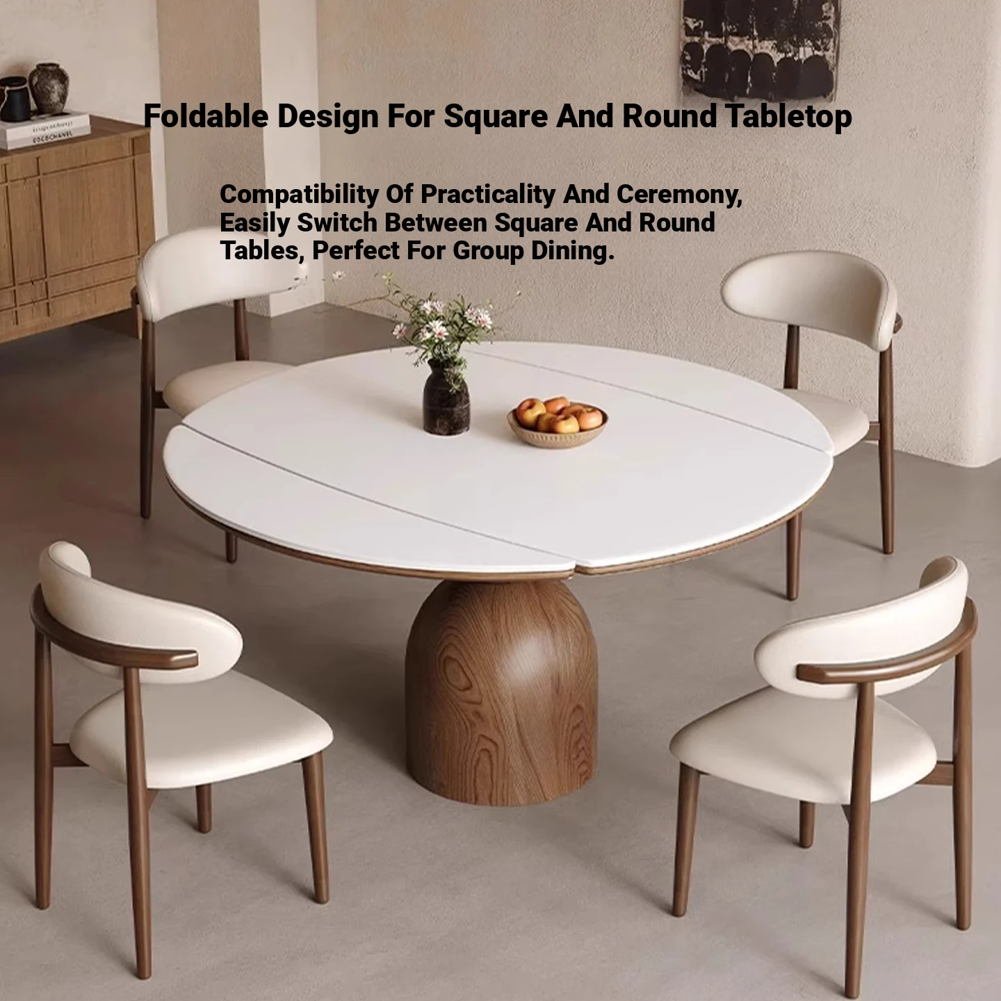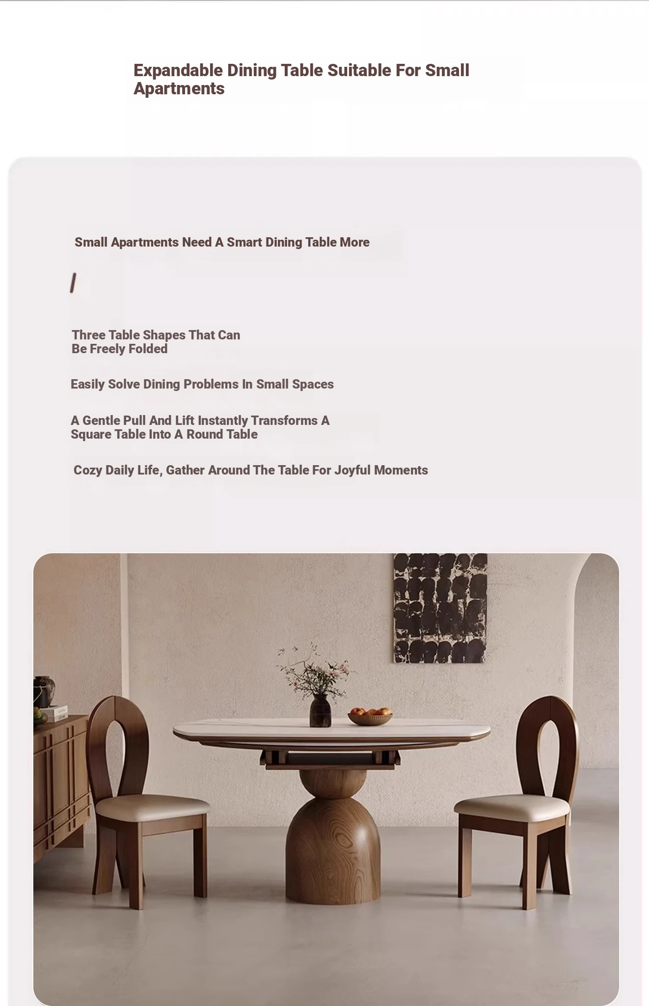 フランス風アンティークスタイルの無垢材ロック板ダイニングテーブル - 伸縮可能な円形&角形、スペースにぴったりな小型住宅向けの多機能テーブル!おしゃれで実用的な食事の時間を楽しんでください。