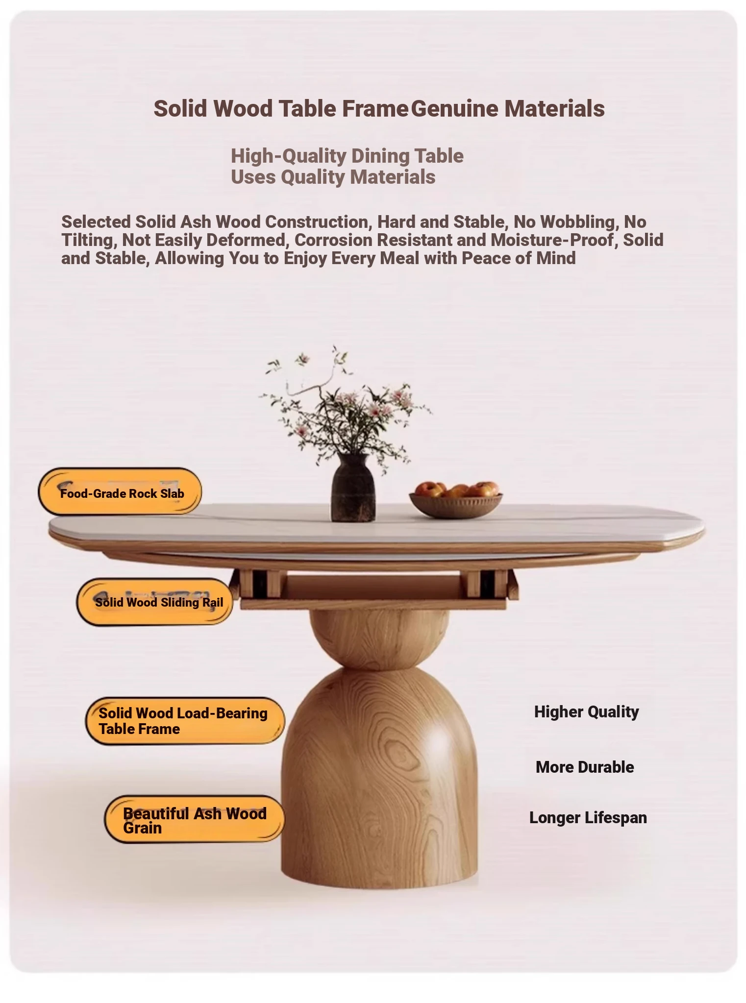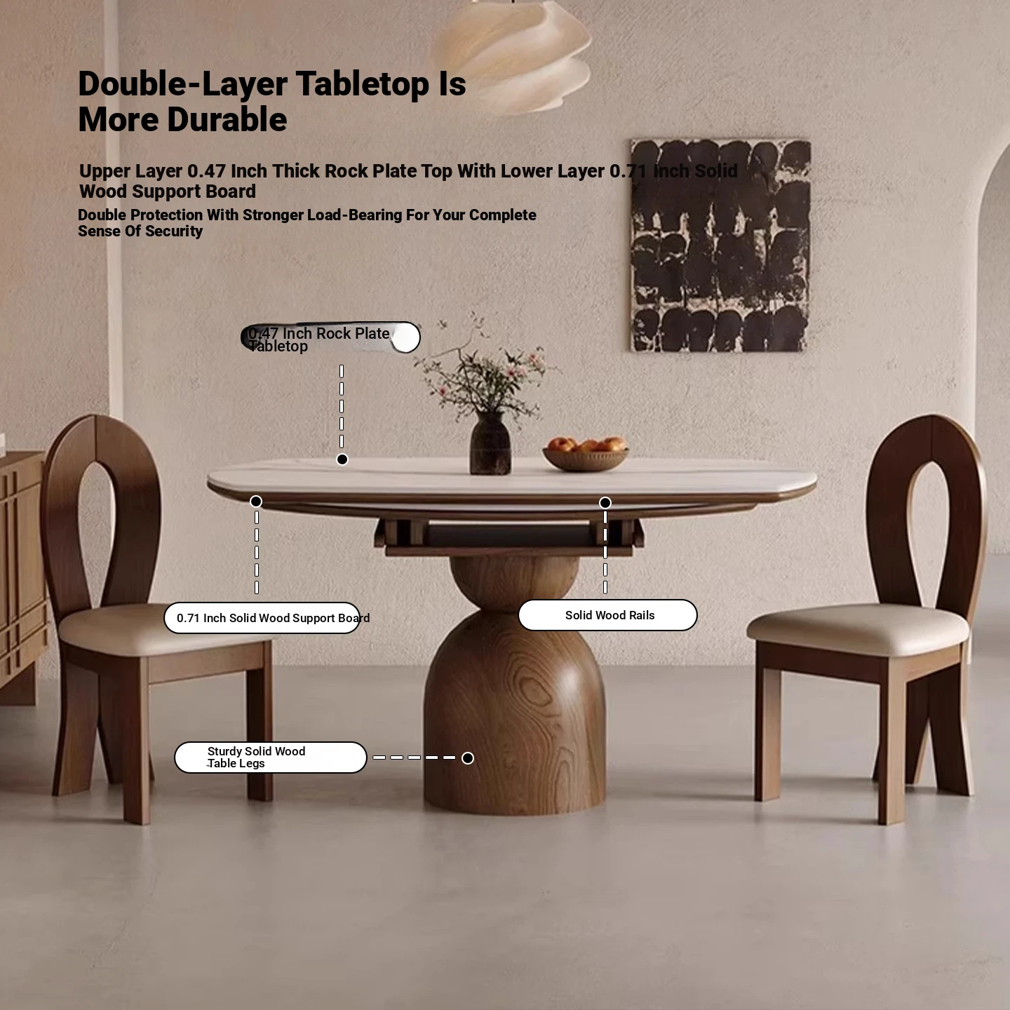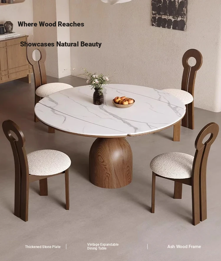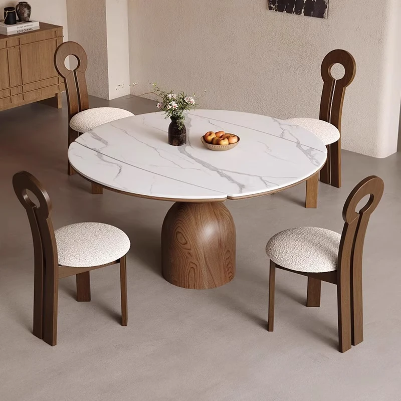 フランス風アンティークスタイルの無垢材ロック板ダイニングテーブル - 伸縮可能な円形&角形、スペースにぴったりな小型住宅向けの多機能テーブル!おしゃれで実用的な食事の時間を楽しんでください。