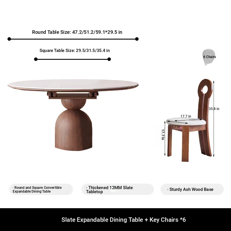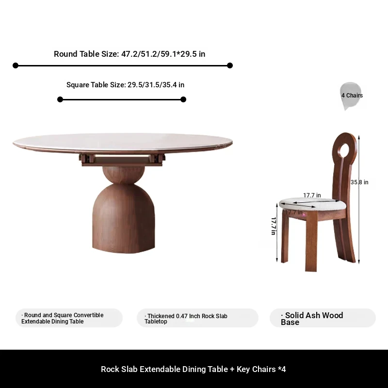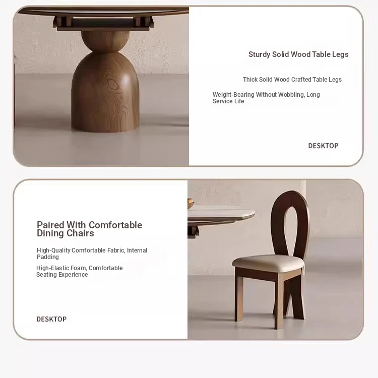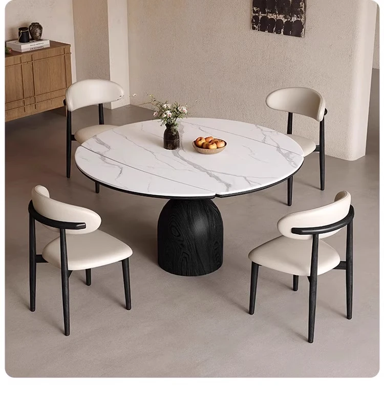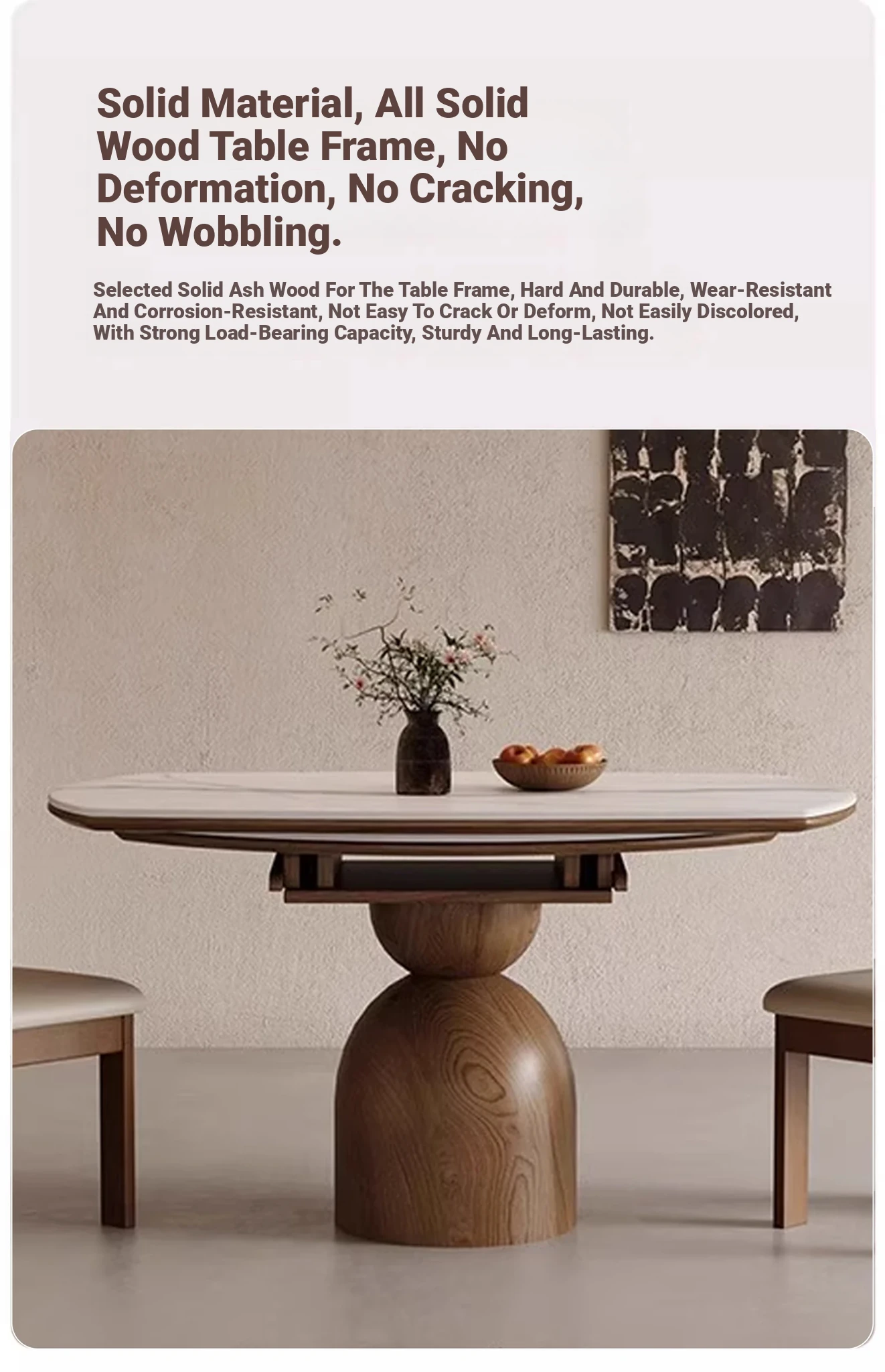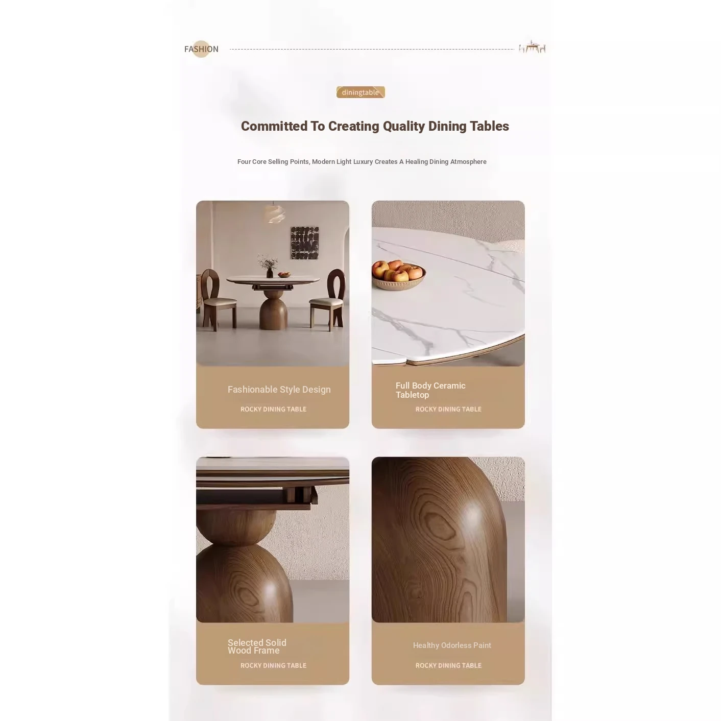 フランス風アンティークスタイルの無垢材ロック板ダイニングテーブル - 伸縮可能な円形&角形、スペースにぴったりな小型住宅向けの多機能テーブル!おしゃれで実用的な食事の時間を楽しんでください。