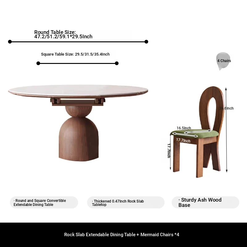 岩板伸縮ダイニングテーブル+人魚椅子*4 【厚みのあるホワイトアッシュフレーム】