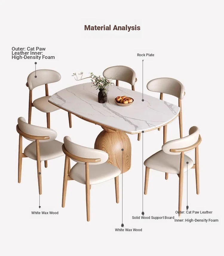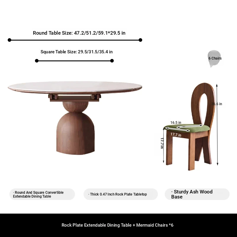 岩板伸縮ダイニングテーブル+人魚椅子*6 【厚みのあるホワイトアッシュフレーム】