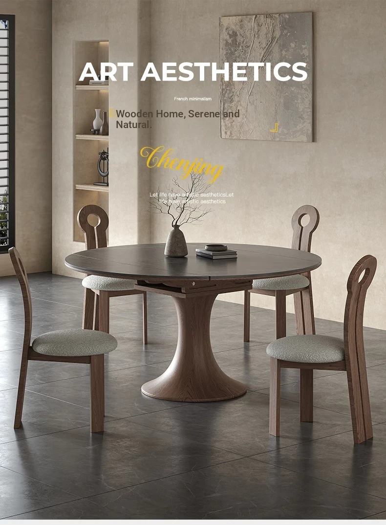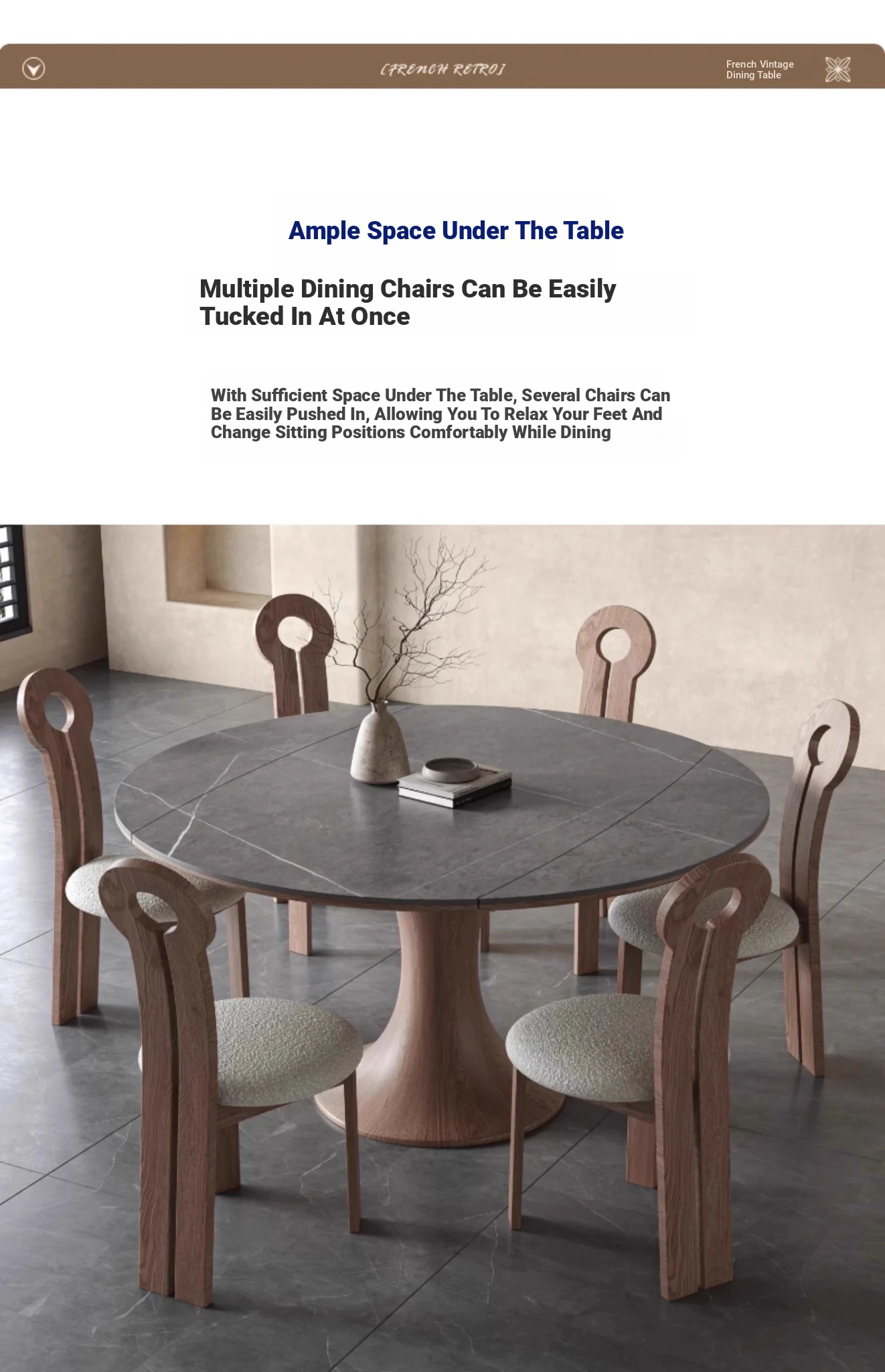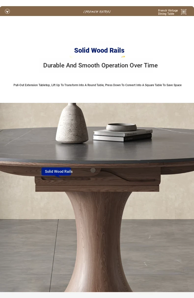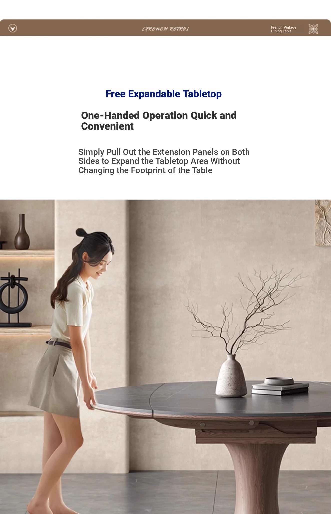 フランス風アンティークスタイルの折りたたみ式無垢材ロックテーブル - 小型住宅に最適!伸縮自在な丸型テーブルで、家族や友人との楽しい食事を演出します。