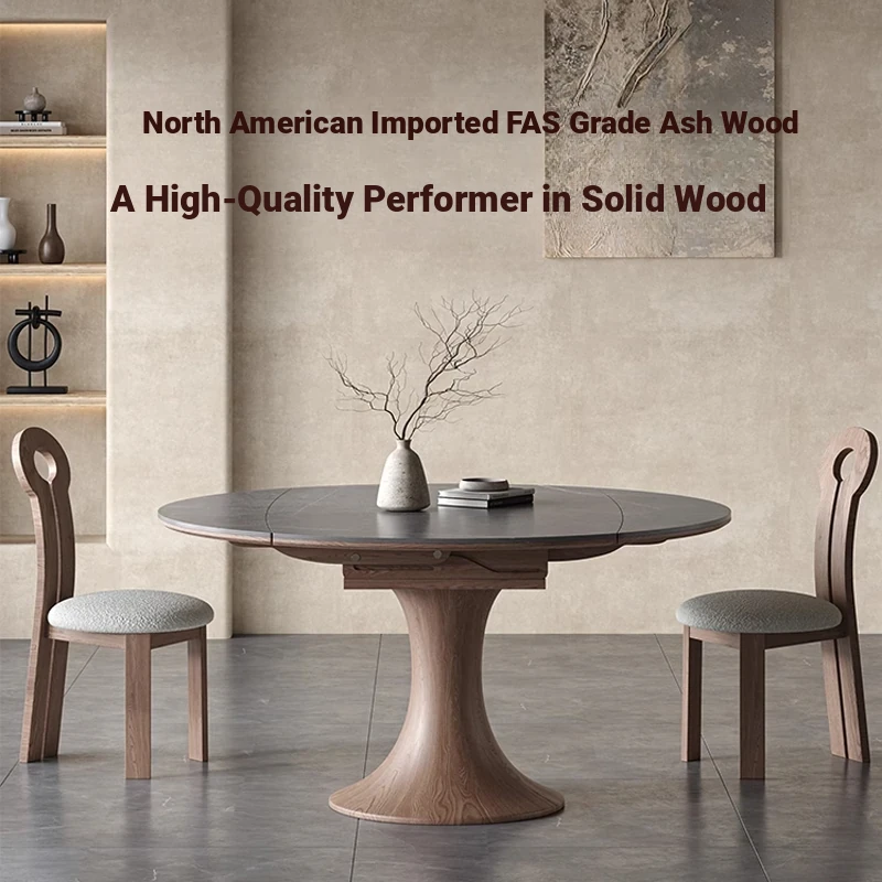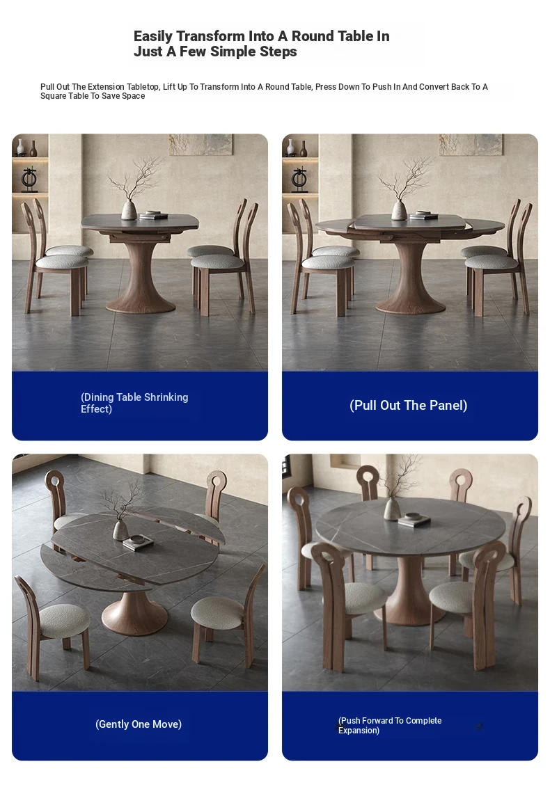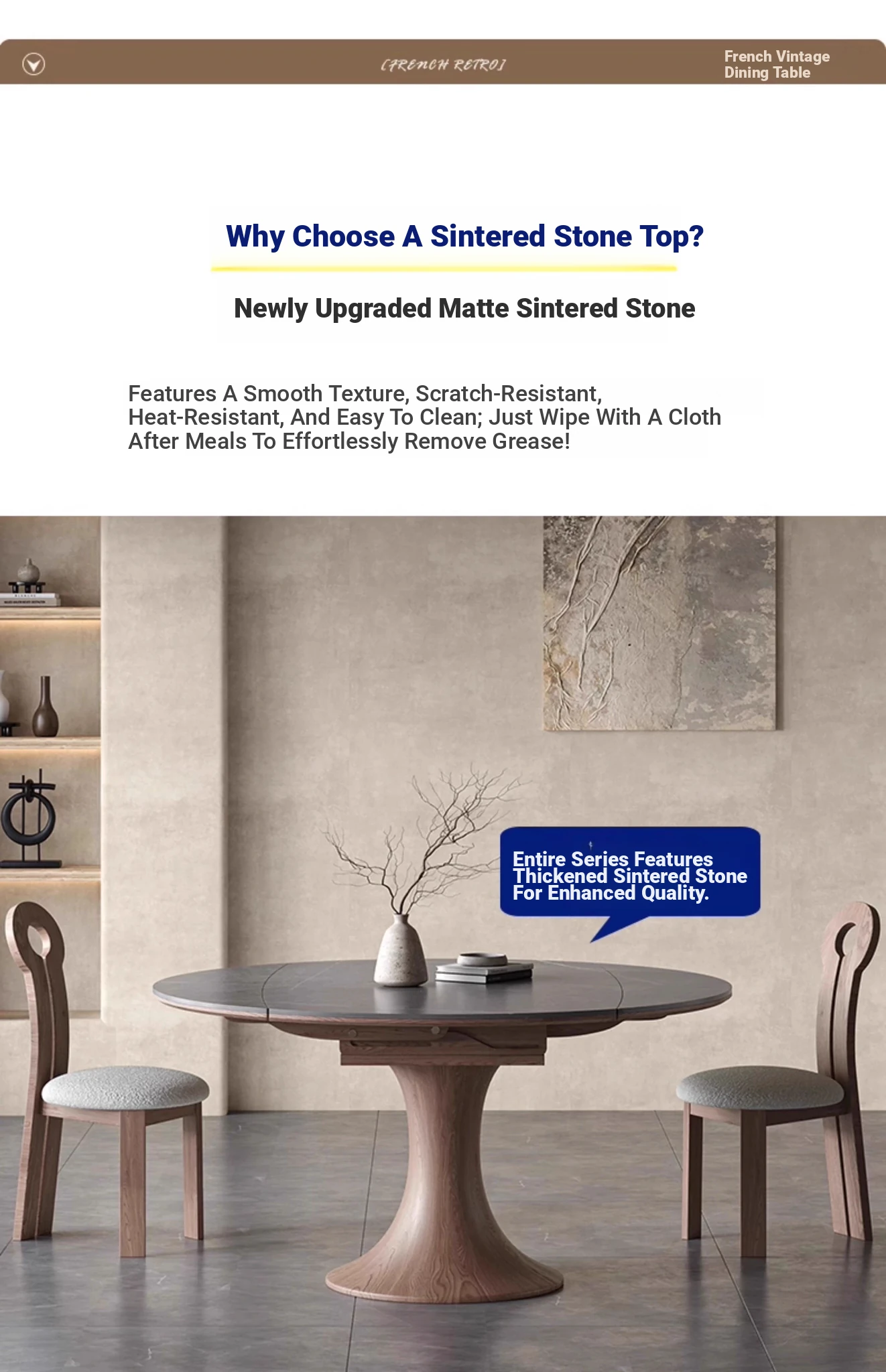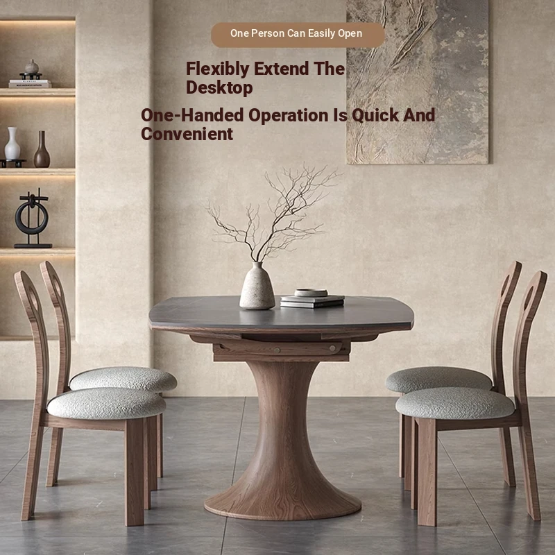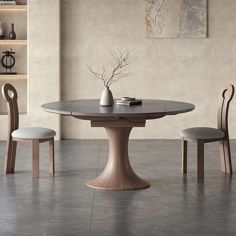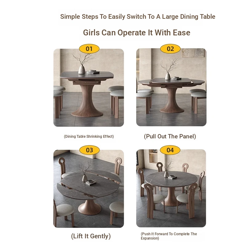 フランス風アンティークスタイルの折りたたみ式無垢材ロックテーブル - 小型住宅に最適!伸縮自在な丸型テーブルで、家族や友人との楽しい食事を演出します。