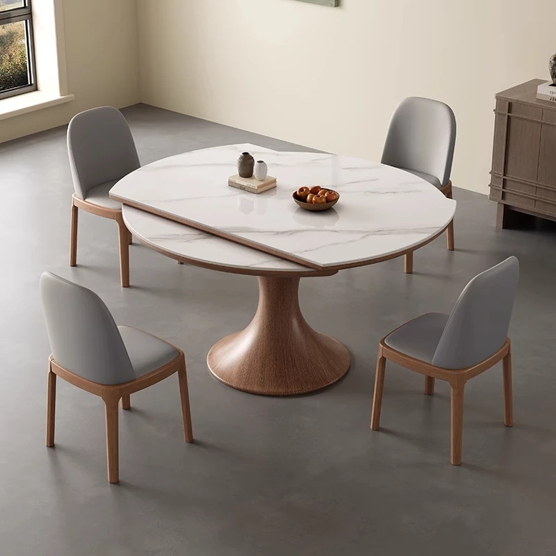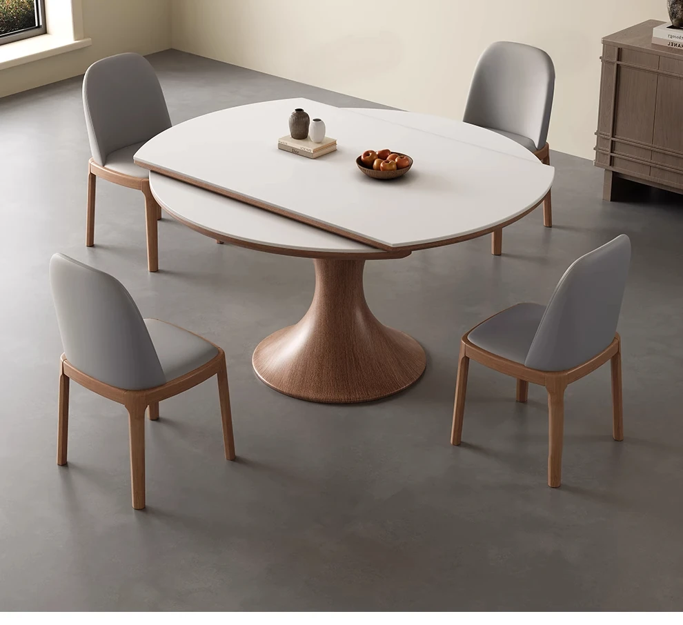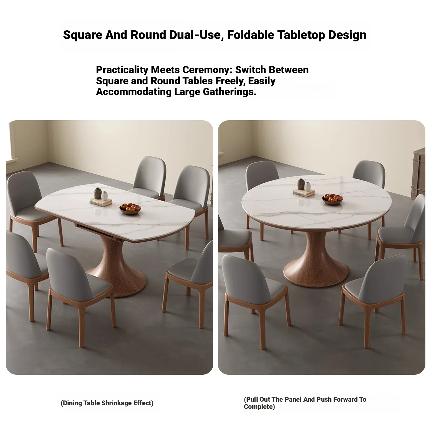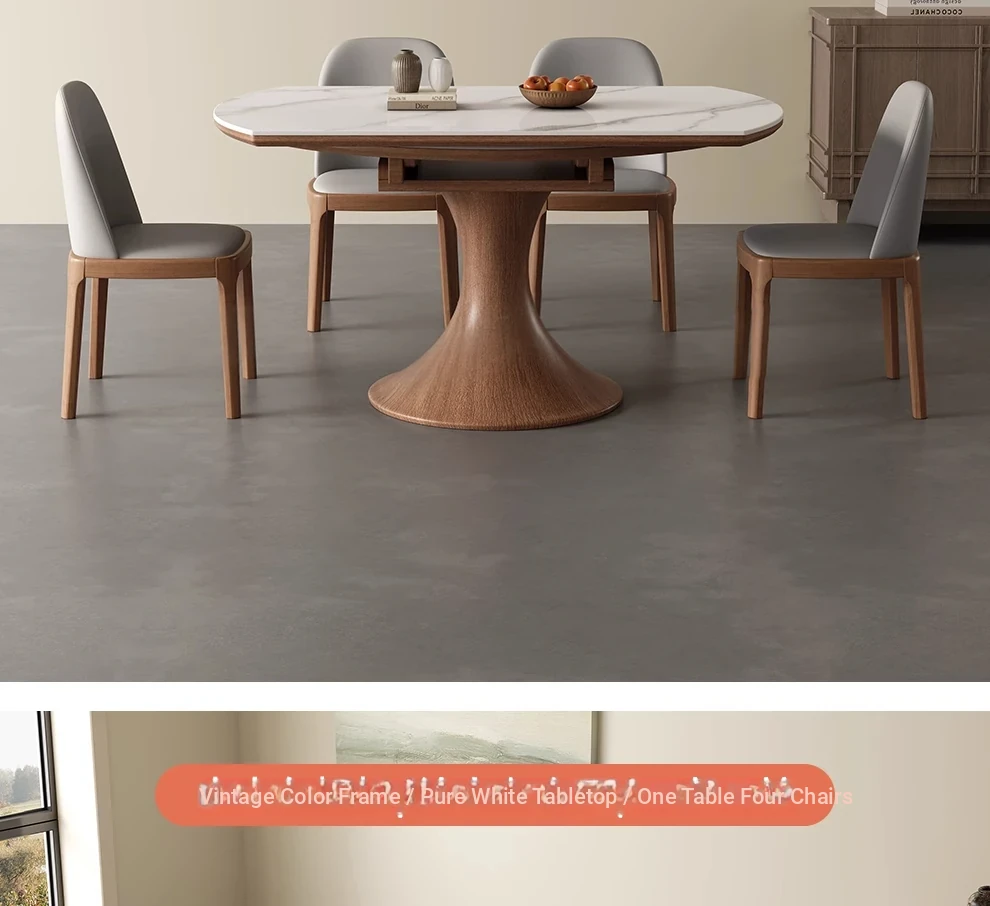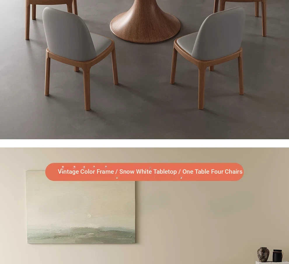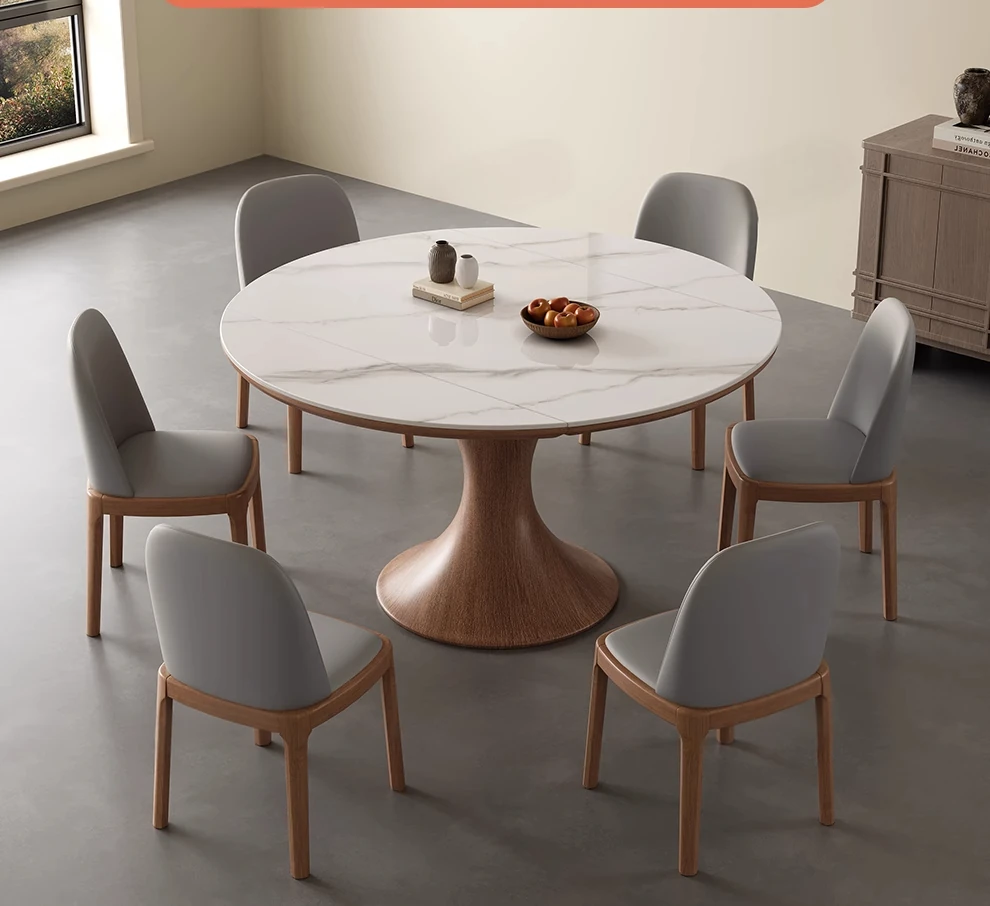 French Vintage Solid Wood Rock Slab Dining Table and Chair Set - Expandable and Versatile Round Table for Small Spaces, Perfect for Home Dining