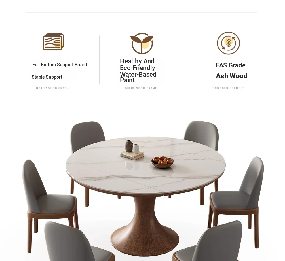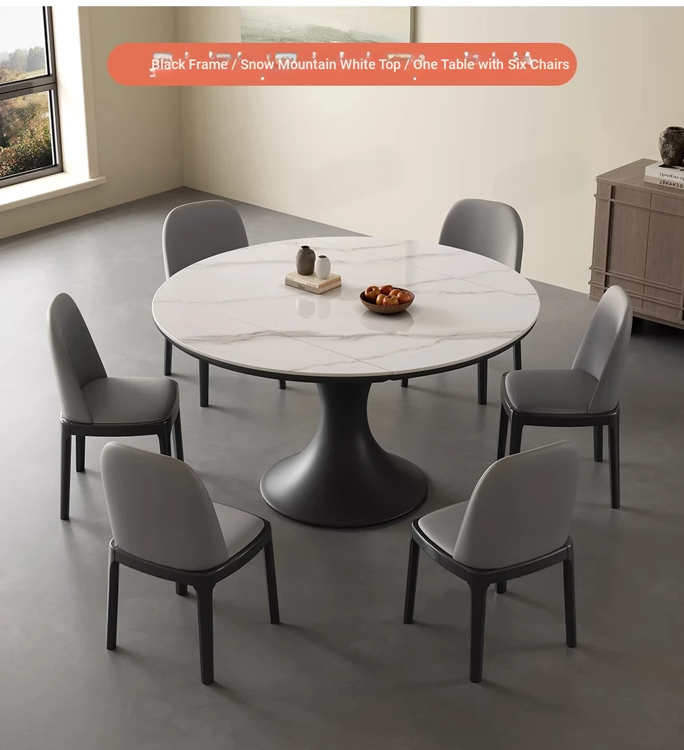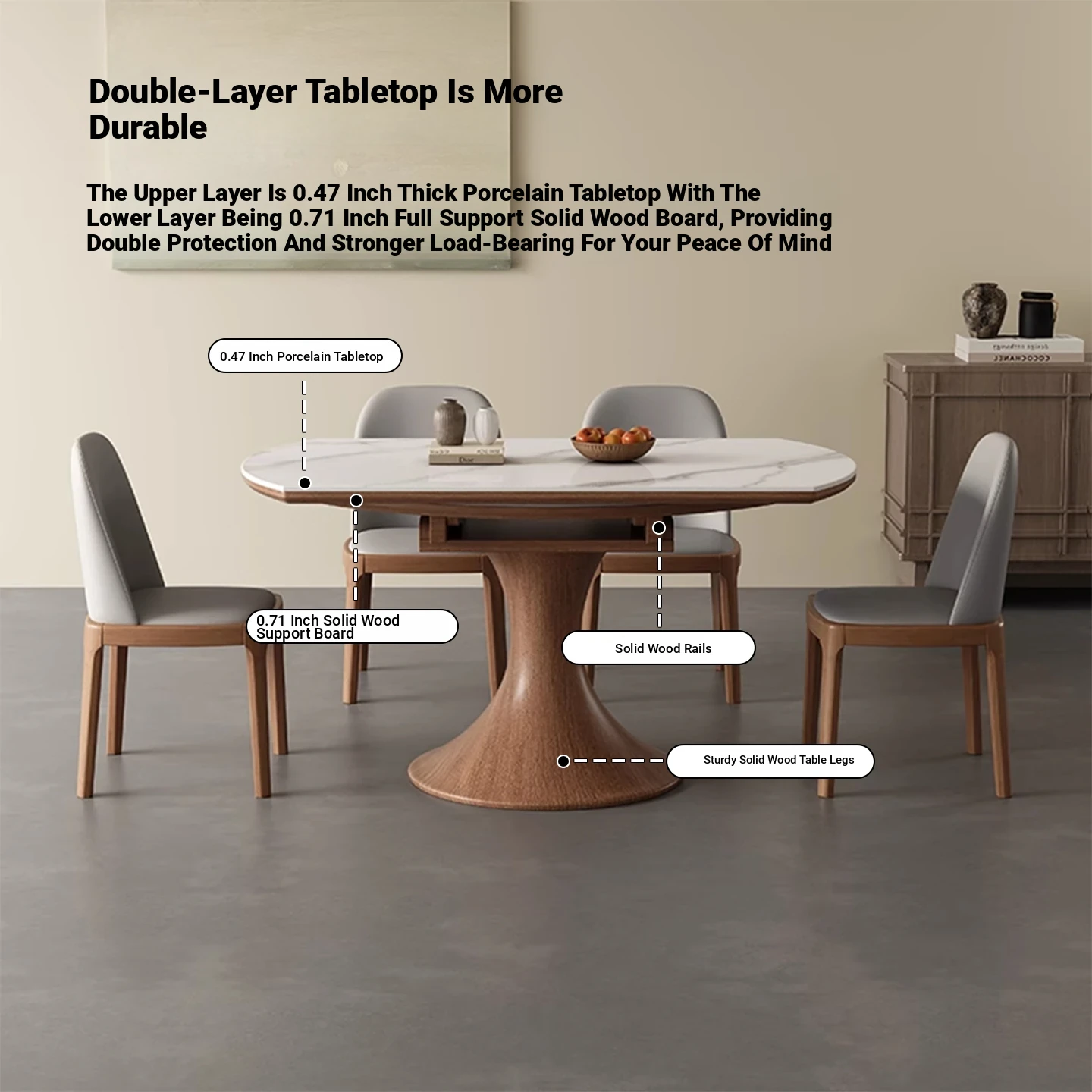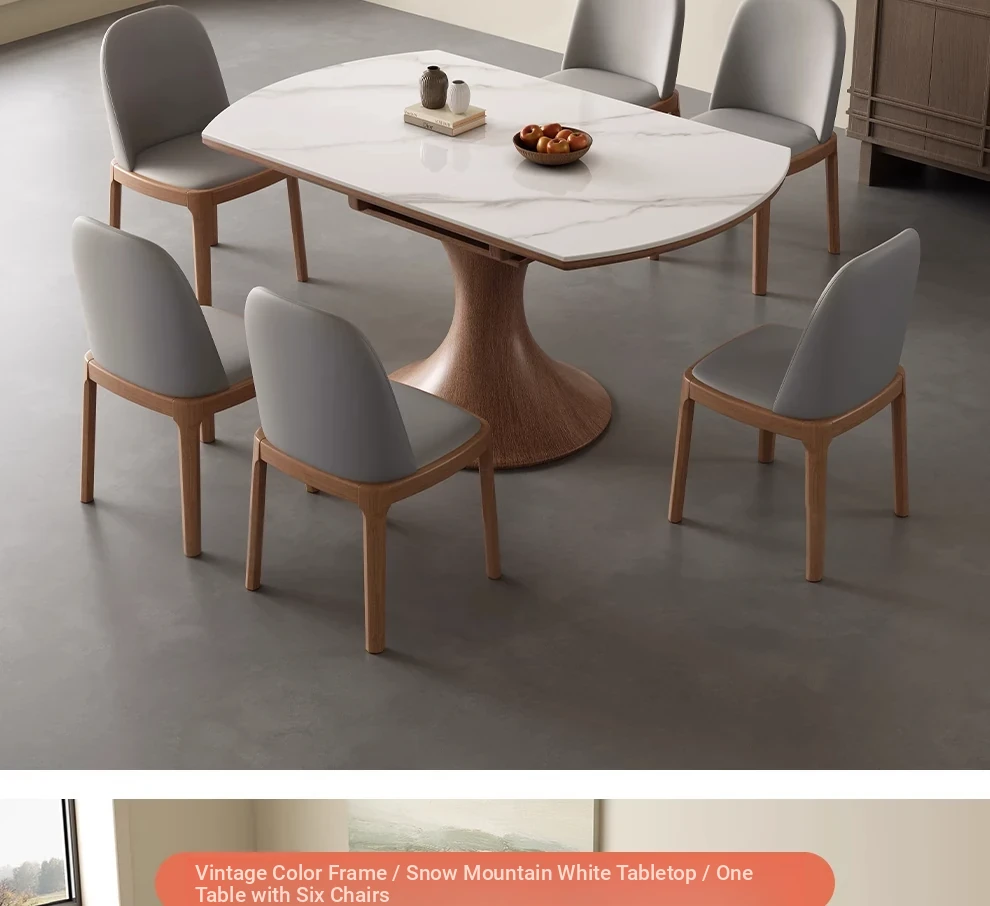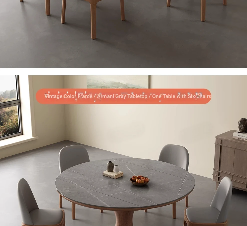 French Vintage Solid Wood Rock Slab Dining Table and Chair Set - Expandable and Versatile Round Table for Small Spaces, Perfect for Home Dining