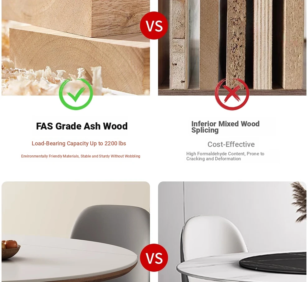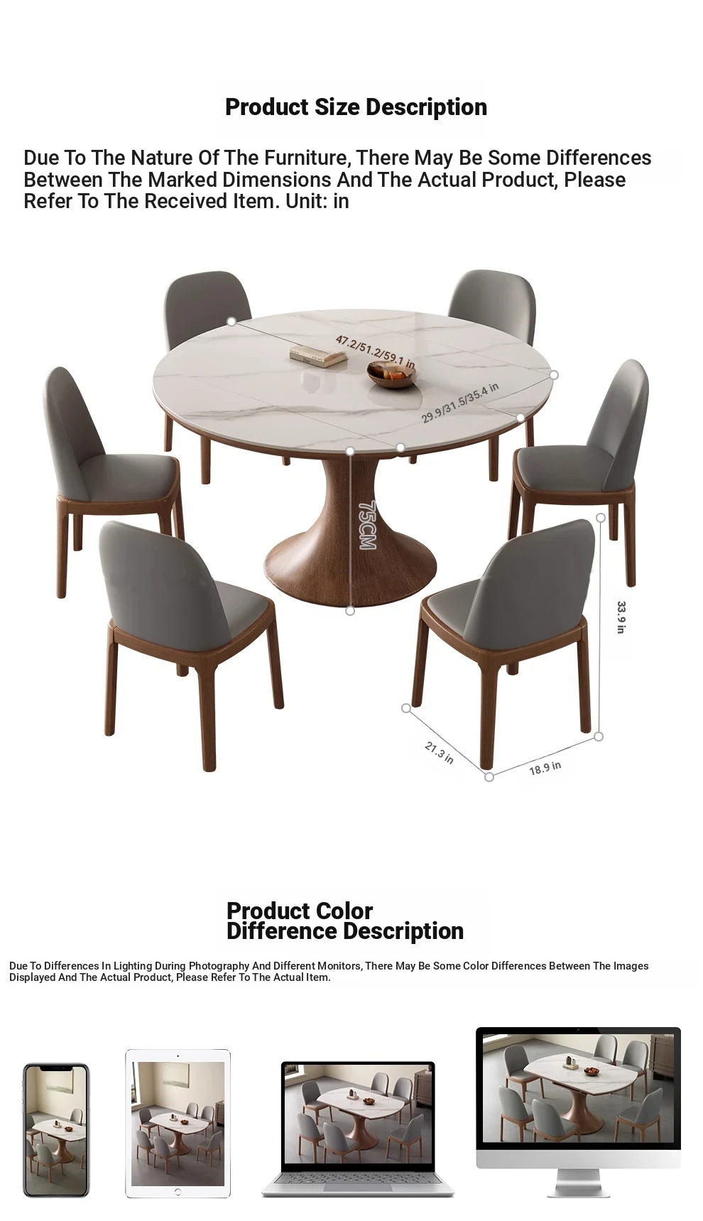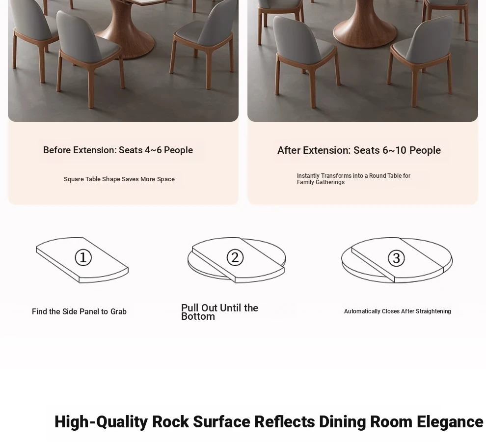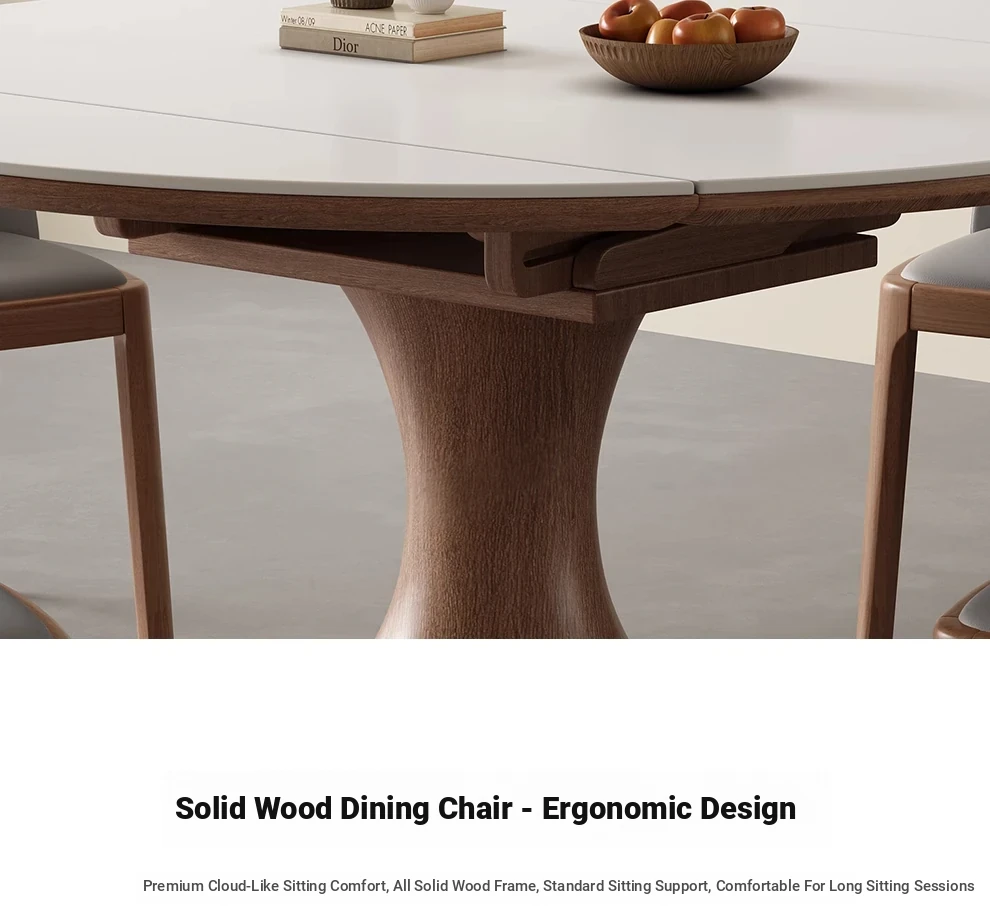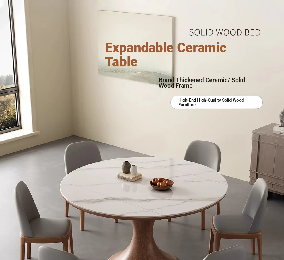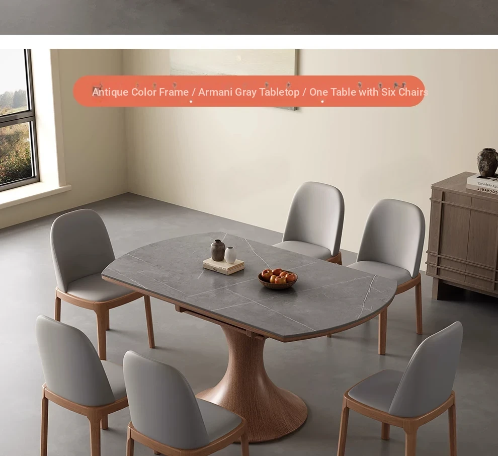 French Vintage Solid Wood Rock Slab Dining Table and Chair Set - Expandable and Versatile Round Table for Small Spaces, Perfect for Home Dining