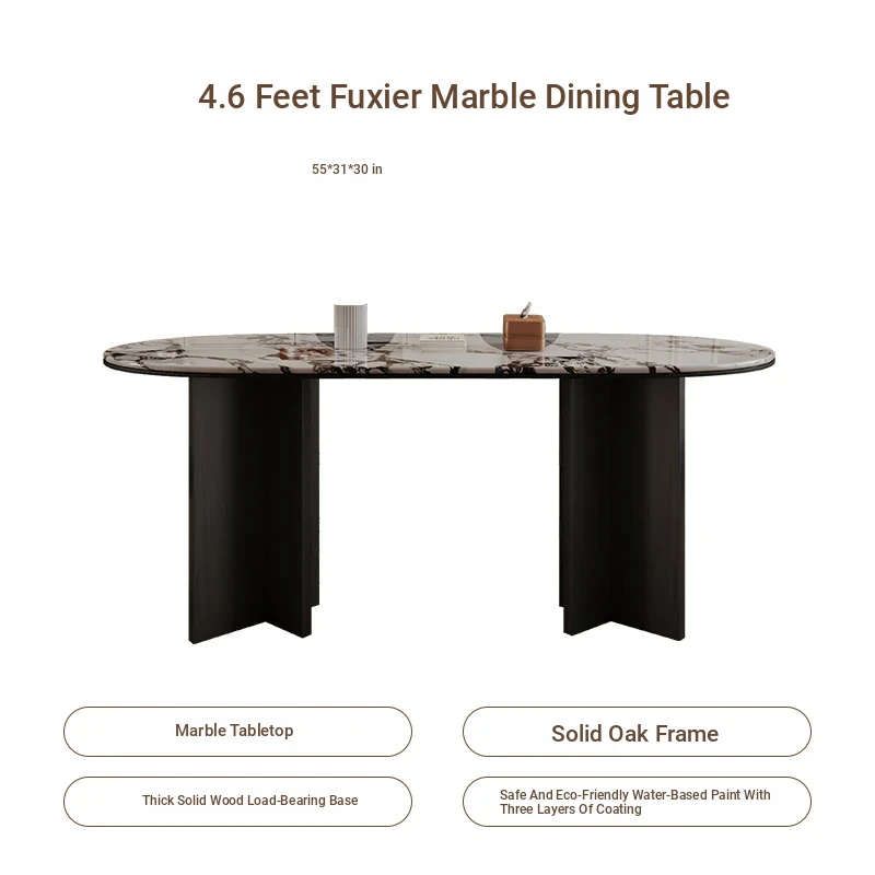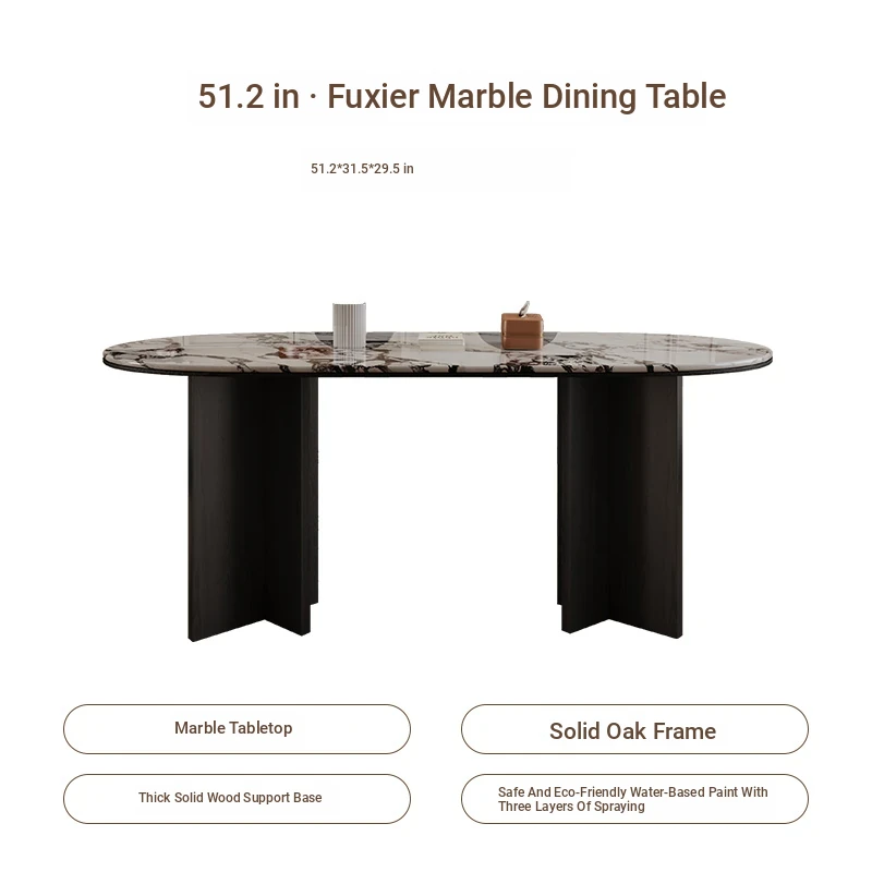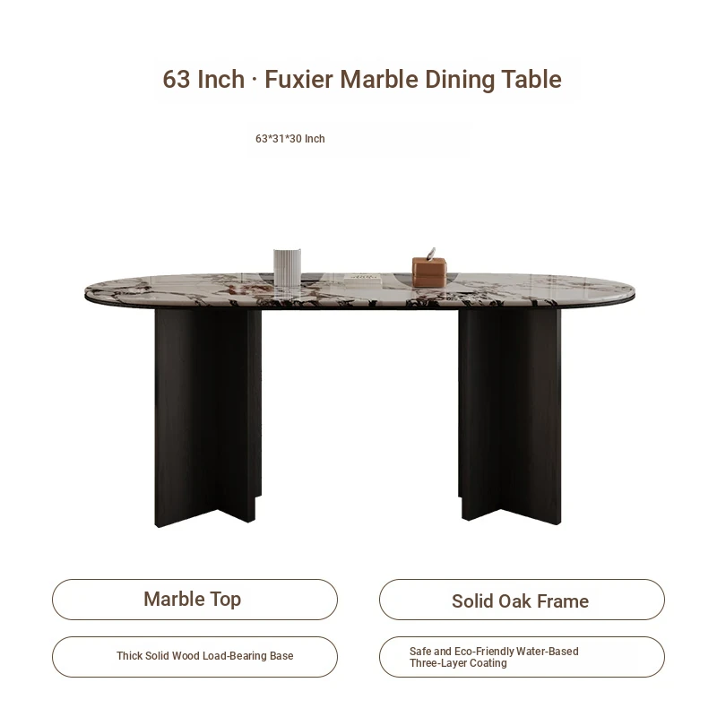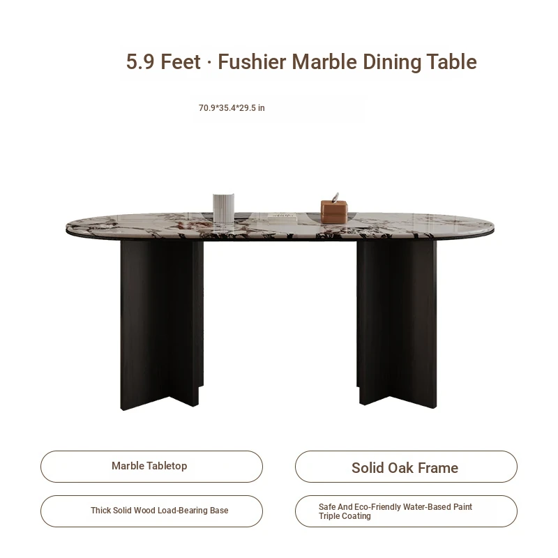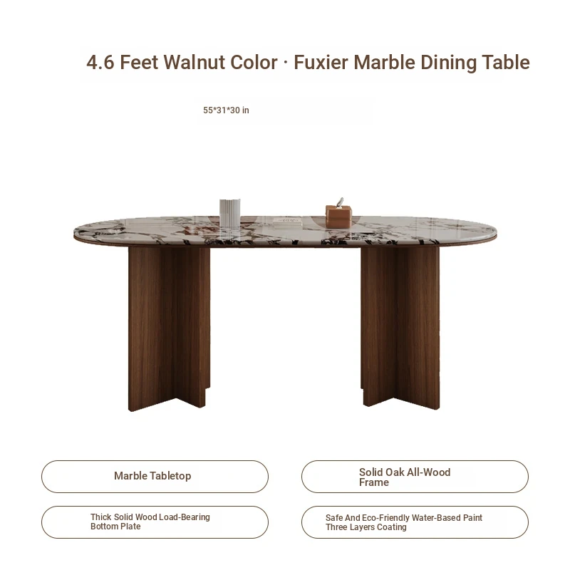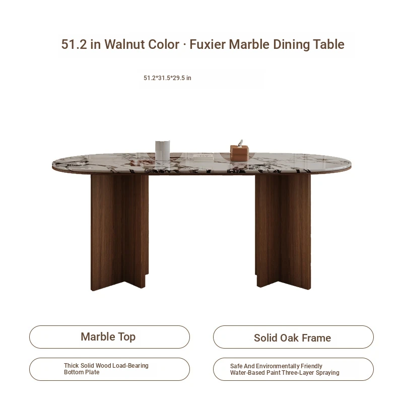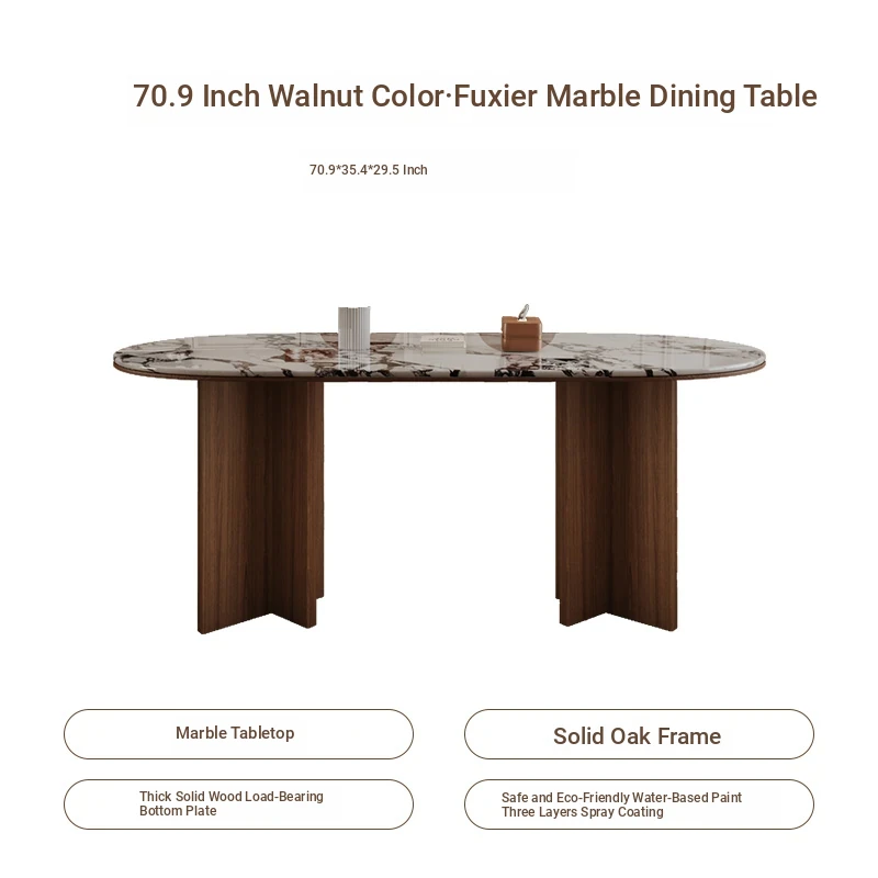 French Vintage Style Bvlgari Natural Marble Dining Table Set - Oval Solid Wood Dining Table and Chair Combo for Small Spaces, Perfect for Home Use