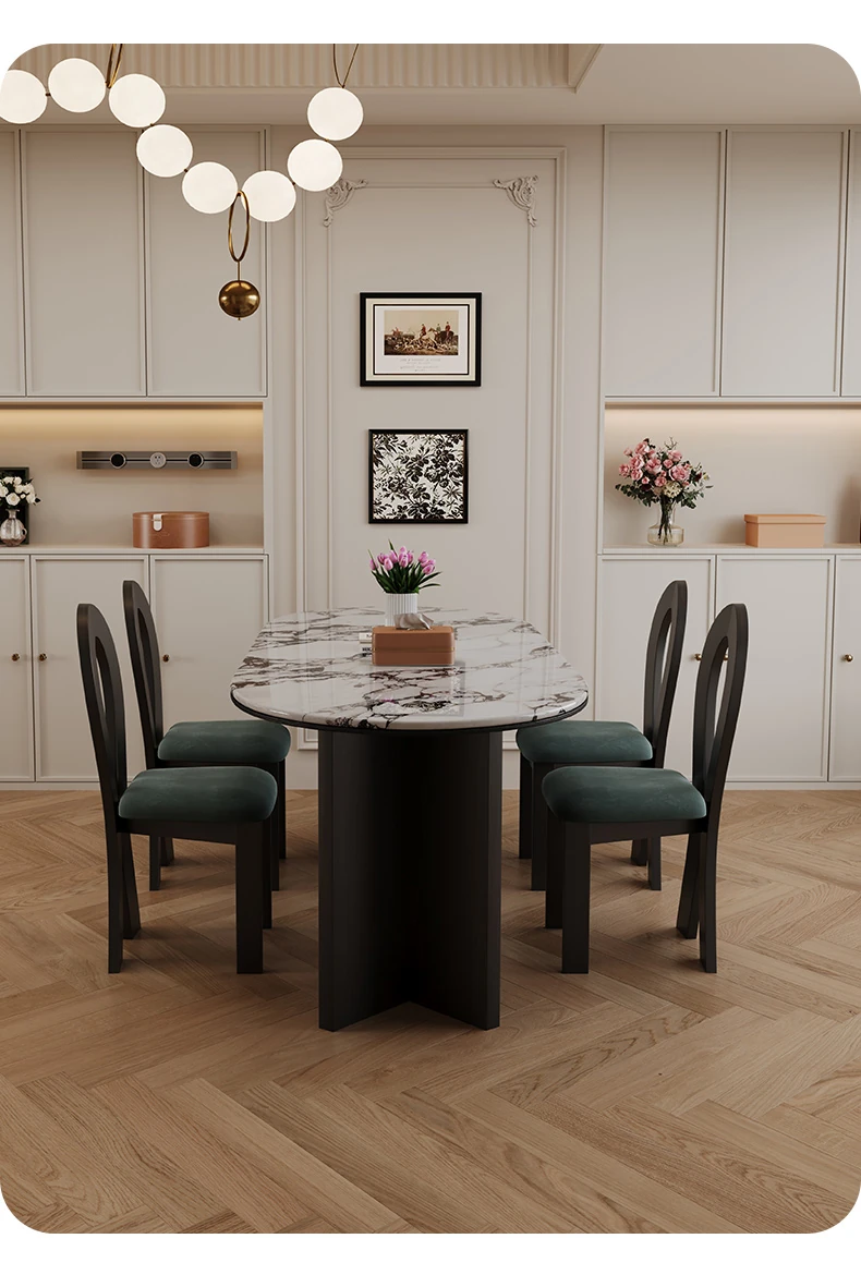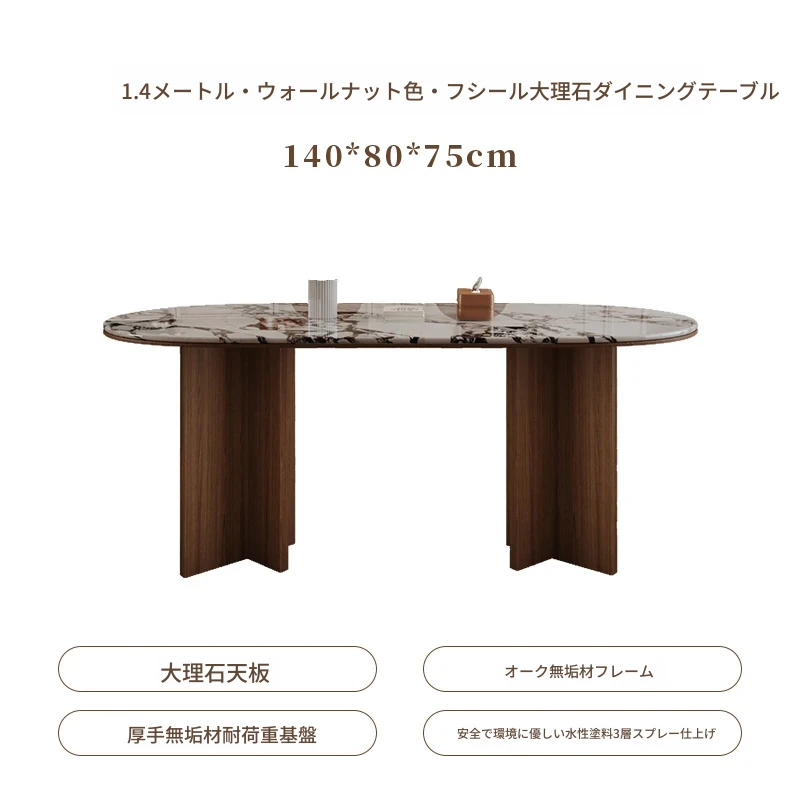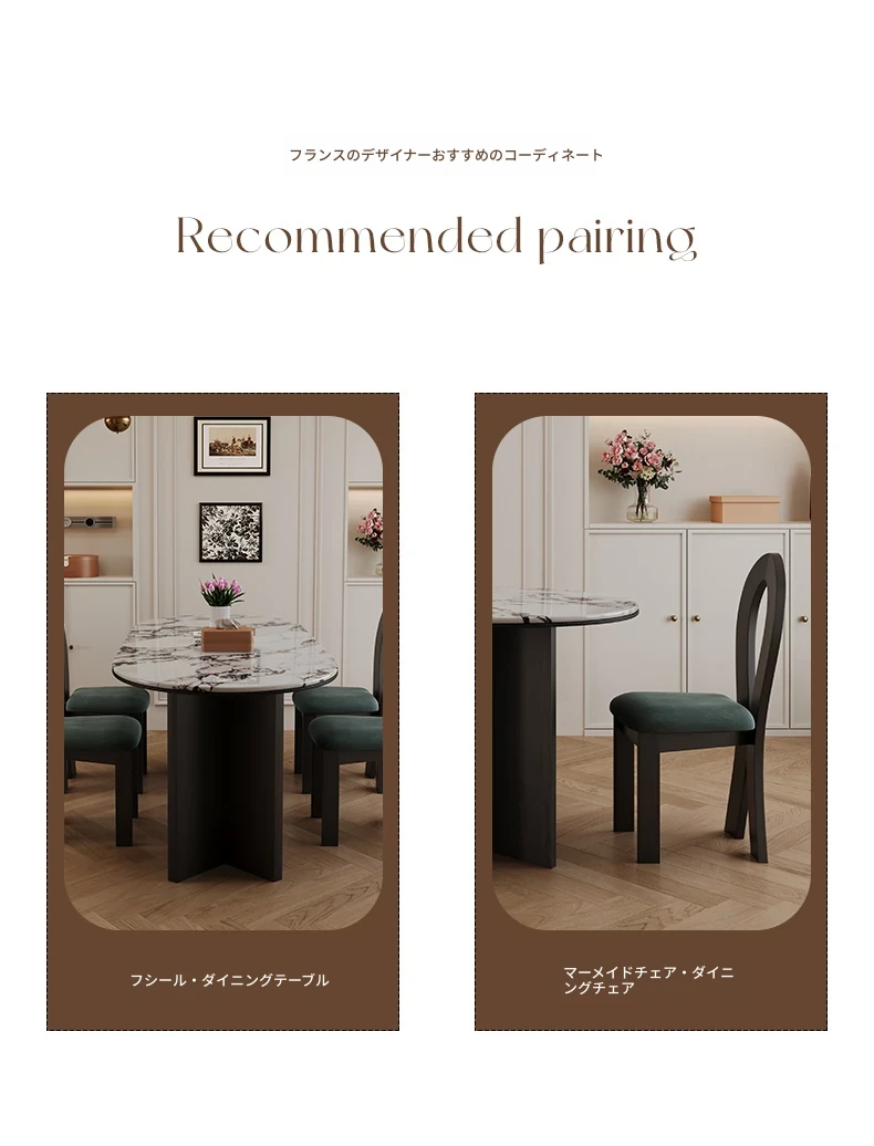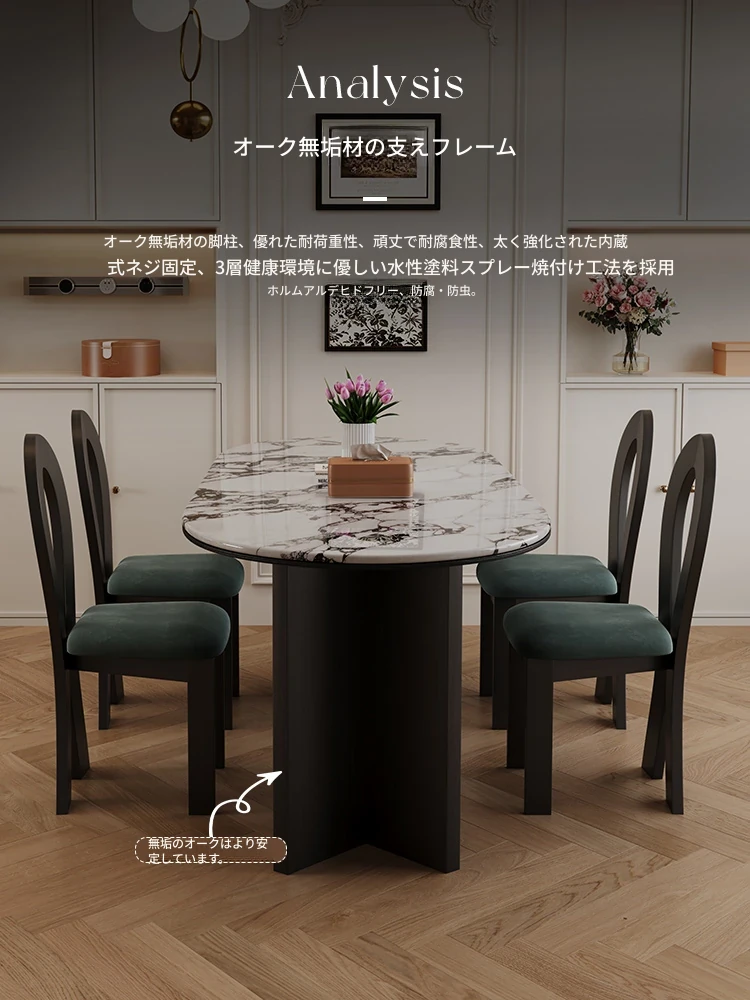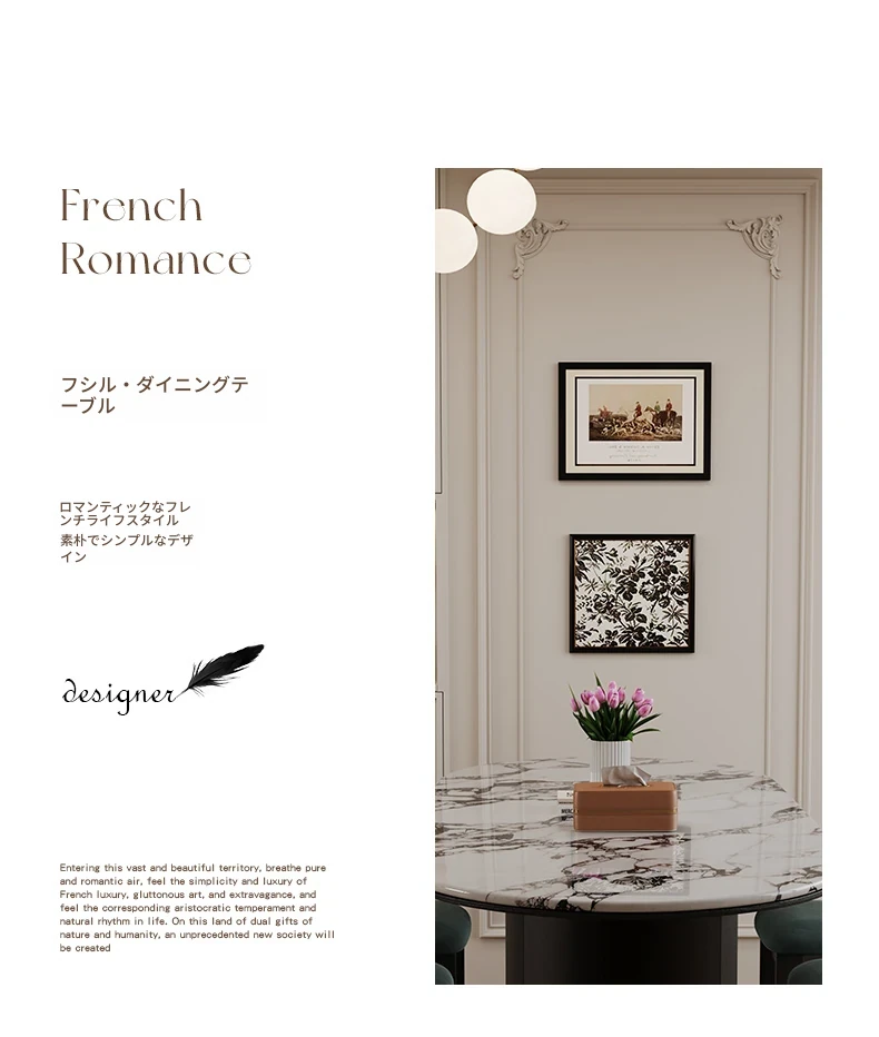 フレンチヴィンテージスタイルのブルガリ天然大理石ダイニングテーブル!小スペースにも最適なオーバル型、木製チェアとのコンビネーションで、洗練された食卓を演出します。おしゃれで機能的な家族の集いにぴったり!