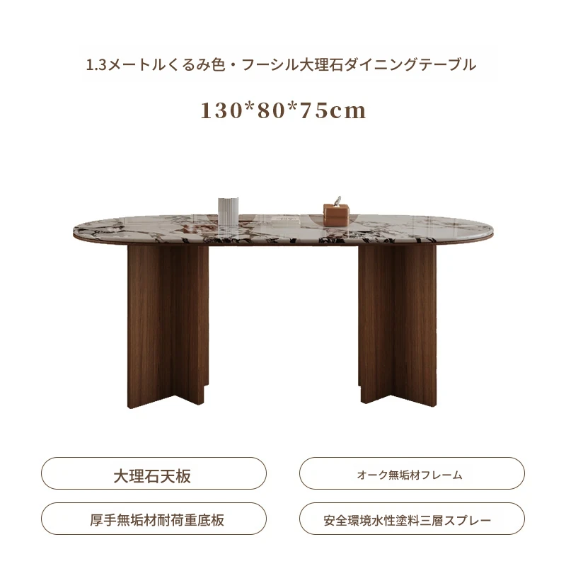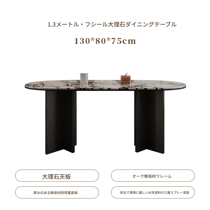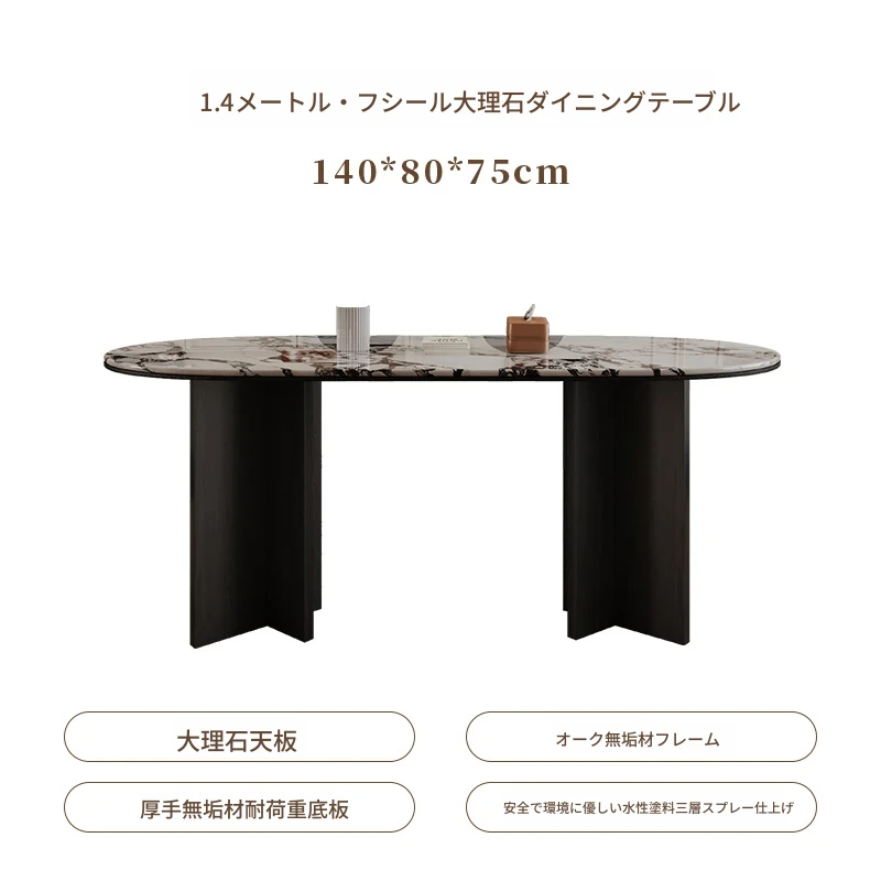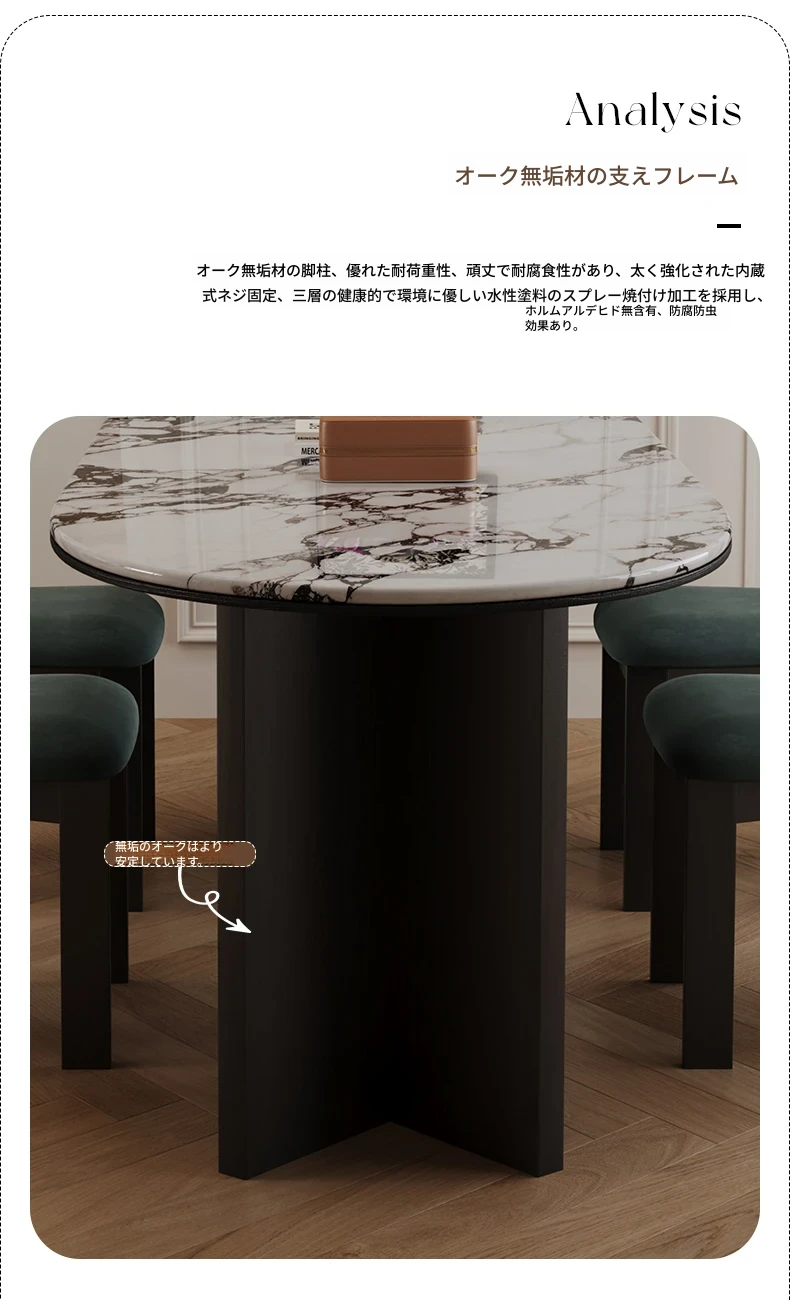 フレンチヴィンテージスタイルのブルガリ天然大理石ダイニングテーブル!小スペースにも最適なオーバル型、木製チェアとのコンビネーションで、洗練された食卓を演出します。おしゃれで機能的な家族の集いにぴったり!