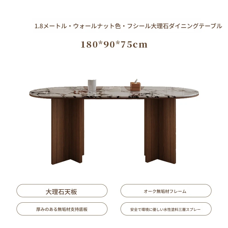 【フシールダイニングテーブル】1.8メートルウォールナット色