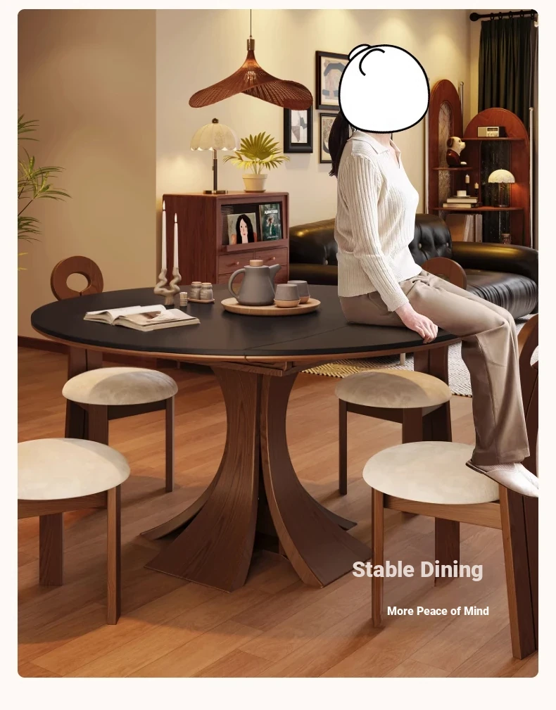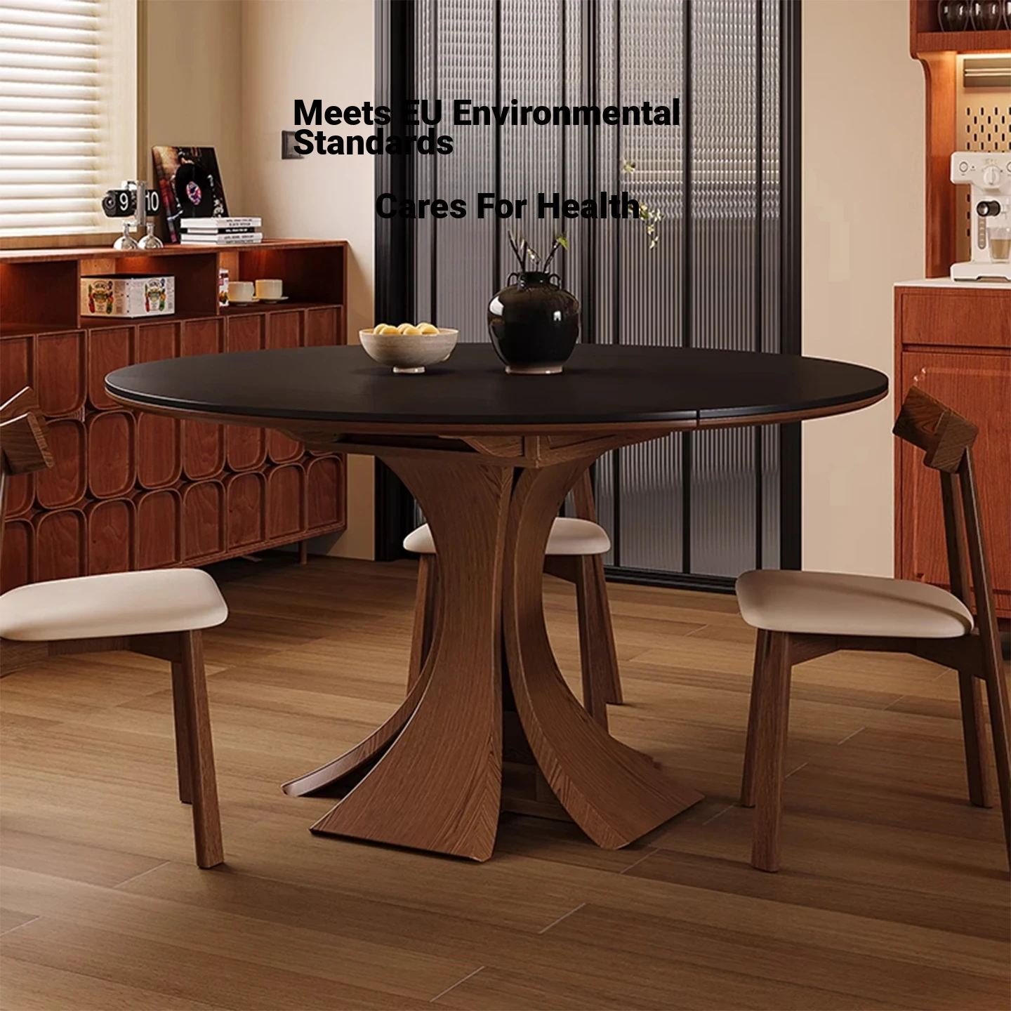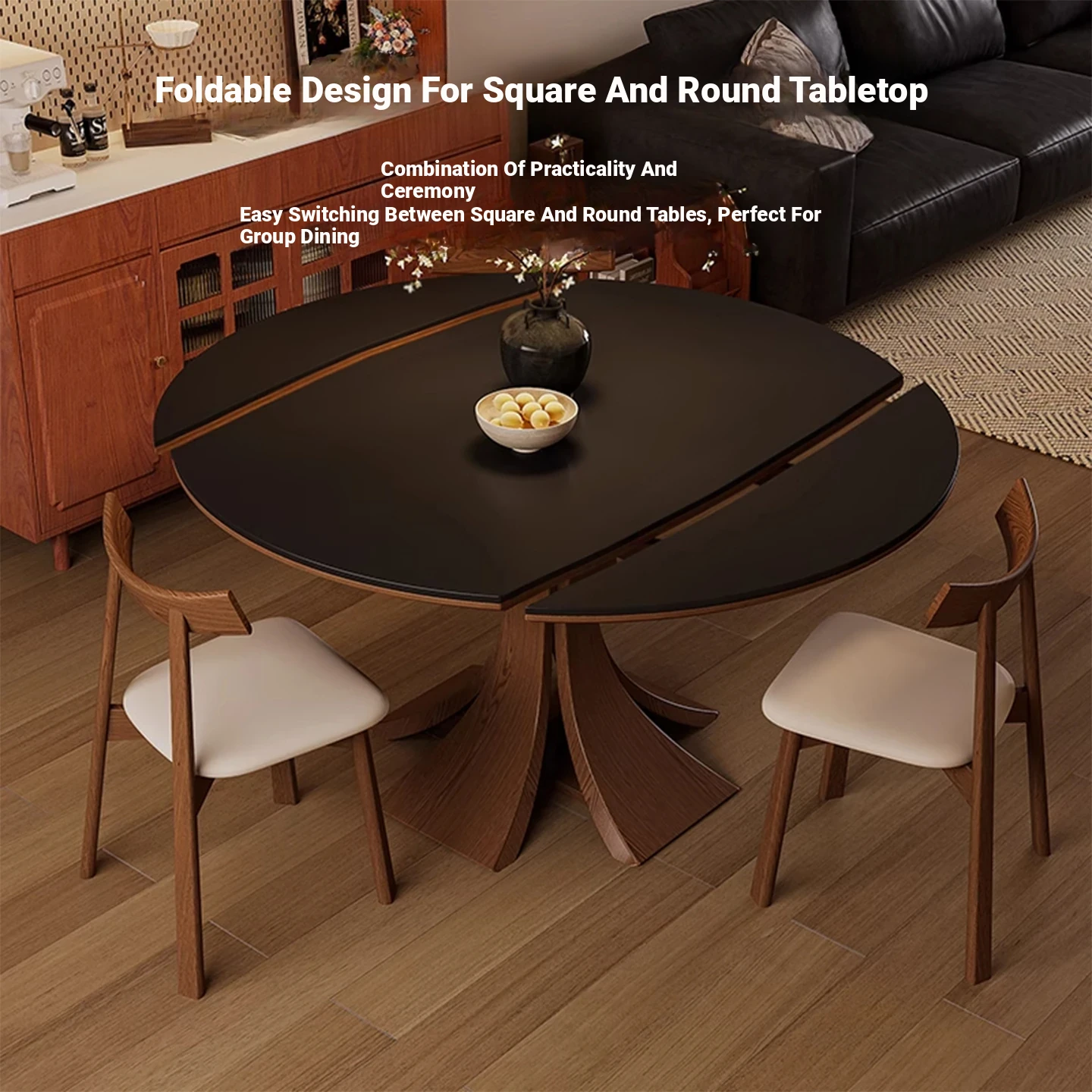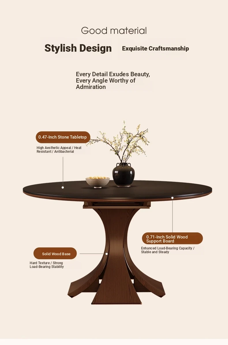 French Vintage Style Expandable Round Marble Dining Table - Versatile Solid Wood Table for Home Use, Perfect for Dining in Living Room, Square and Round Options Available