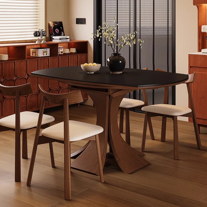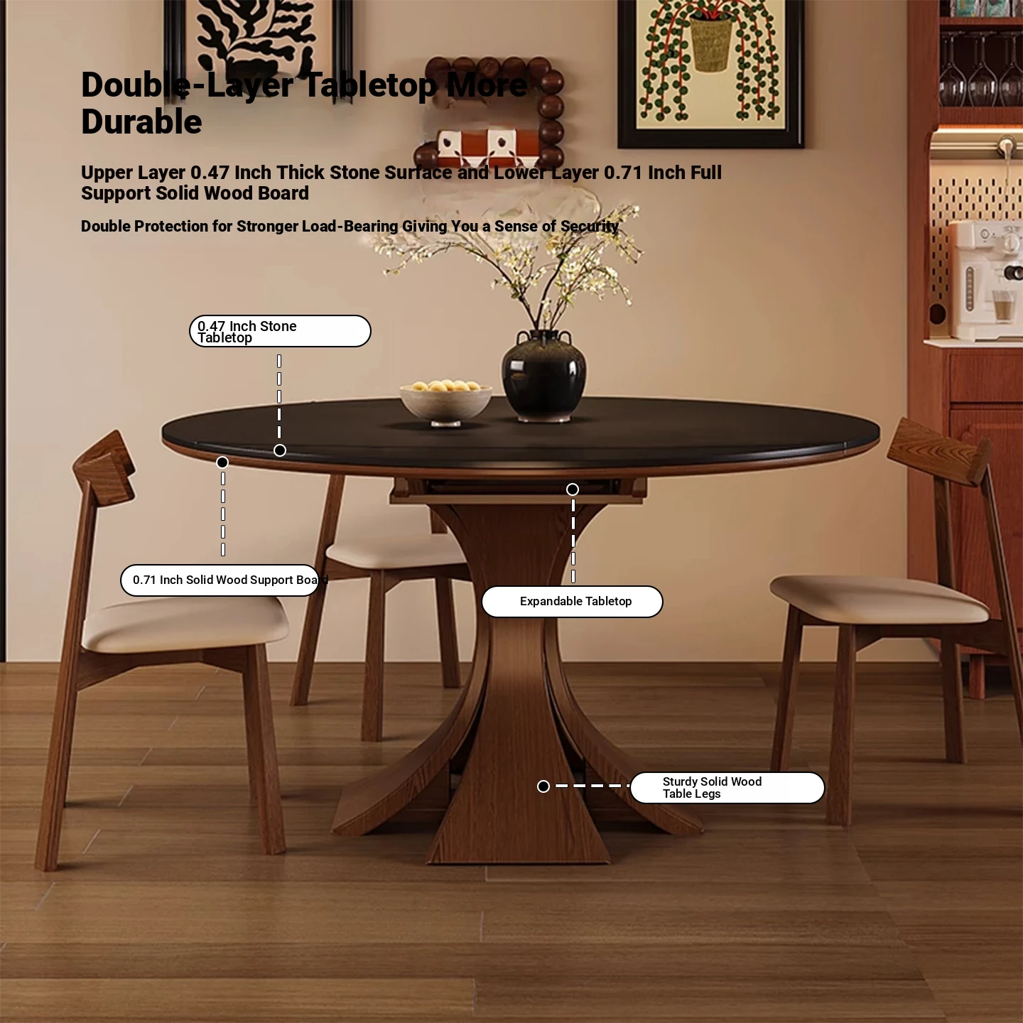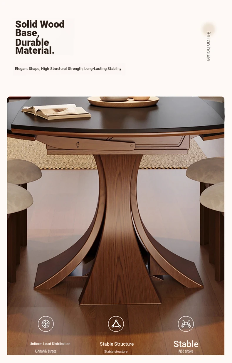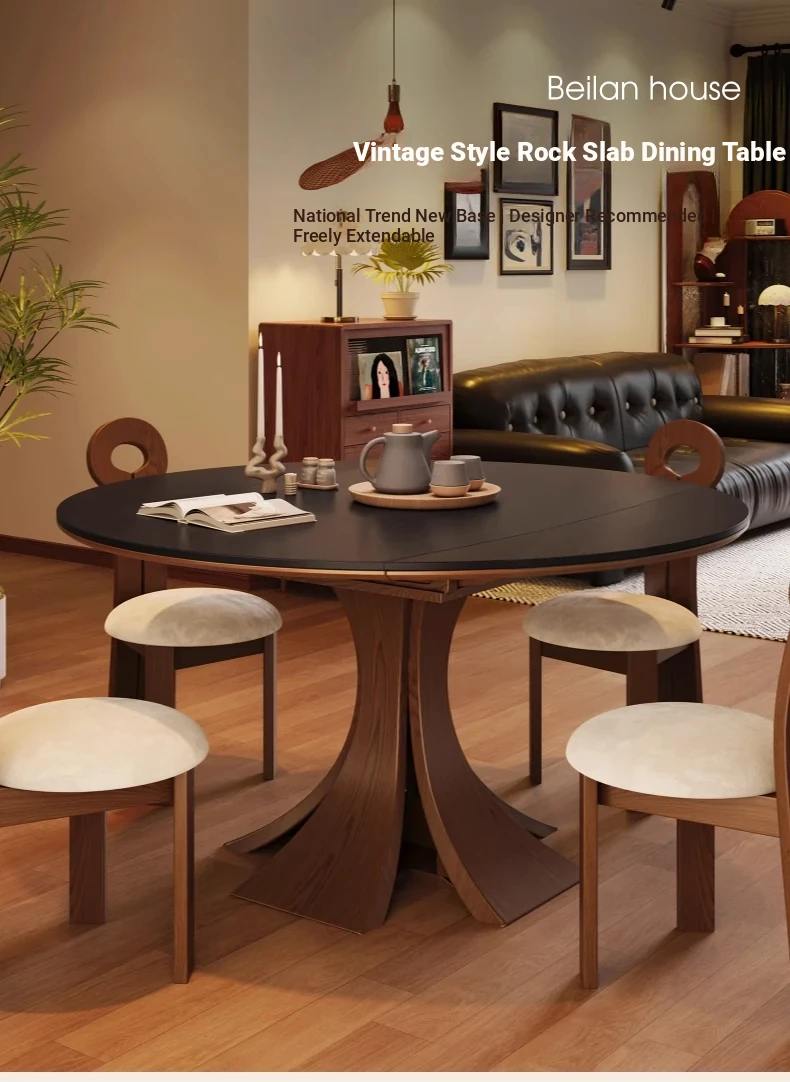 French Vintage Style Expandable Round Marble Dining Table - Versatile Solid Wood Table for Home Use, Perfect for Dining in Living Room, Square and Round Options Available