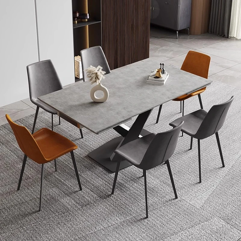 【1.4メートル伸縮2.0メートル】純岩板ダイニングテーブル +6脚の人気椅子