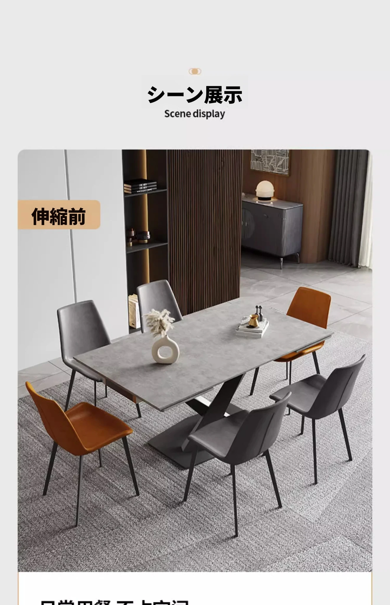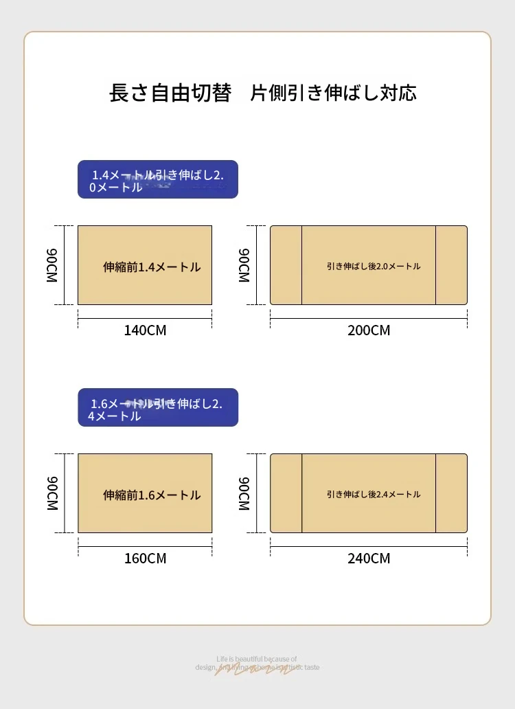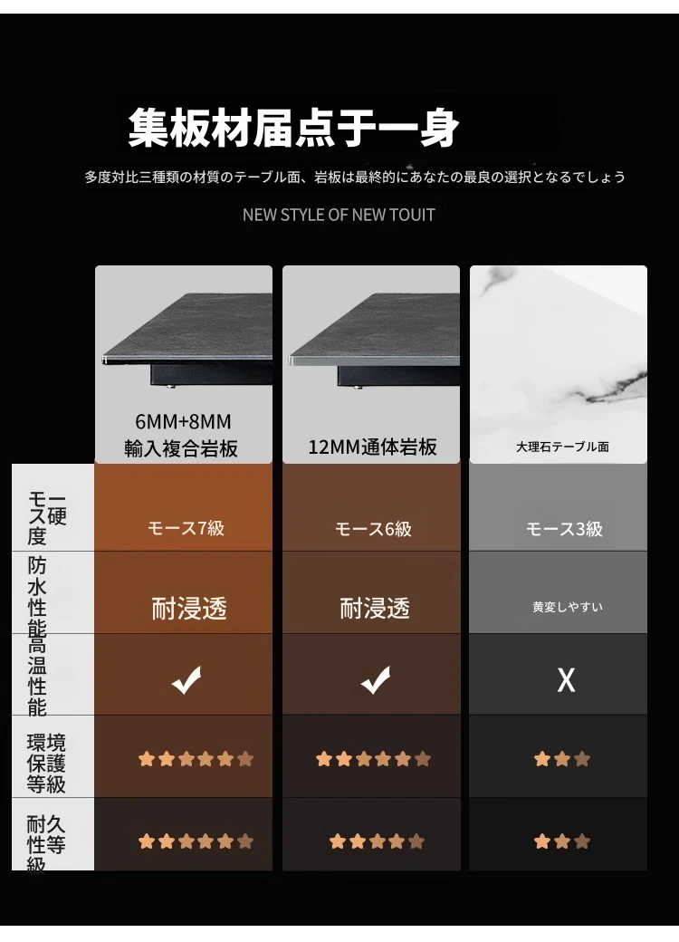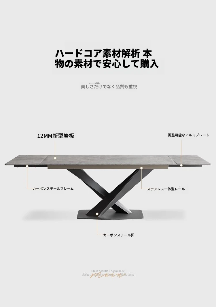 【複合岩板】1.6メートル伸縮2.4メートルダイニングテーブル