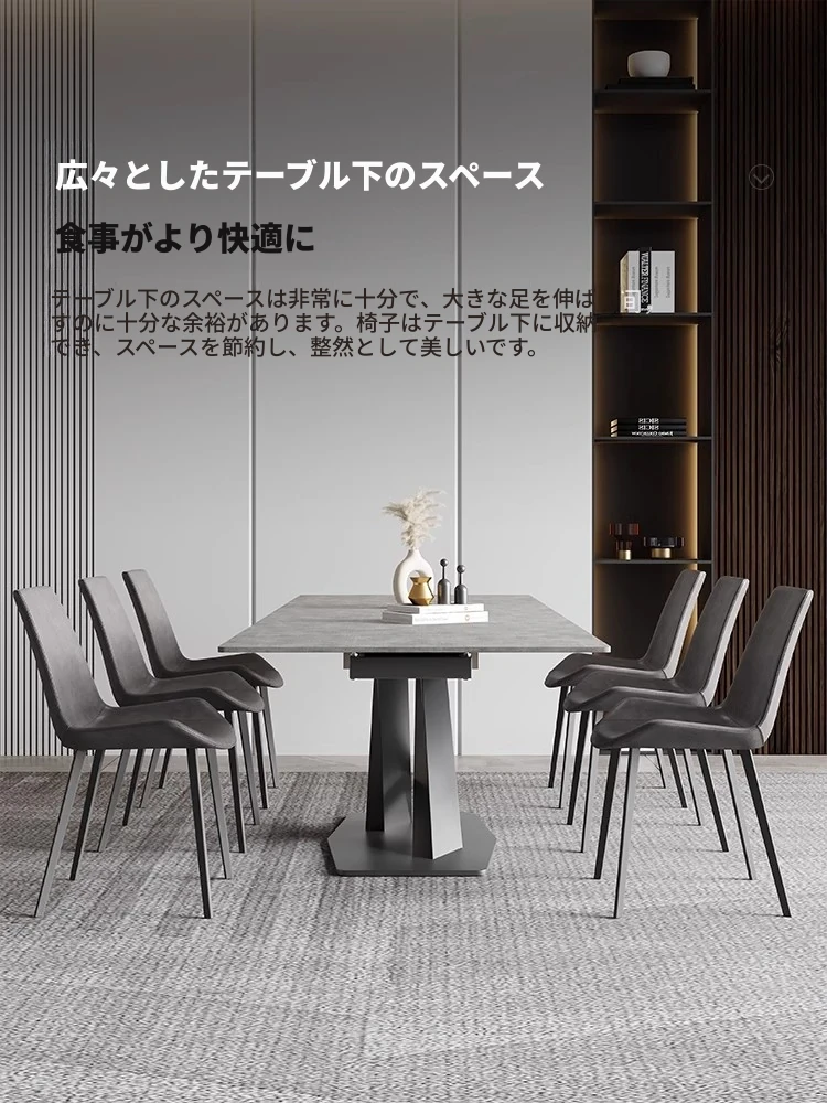 【1.6メートル伸縮2.4メートル】純岩板ダイニングテーブル +6脚の人気椅子