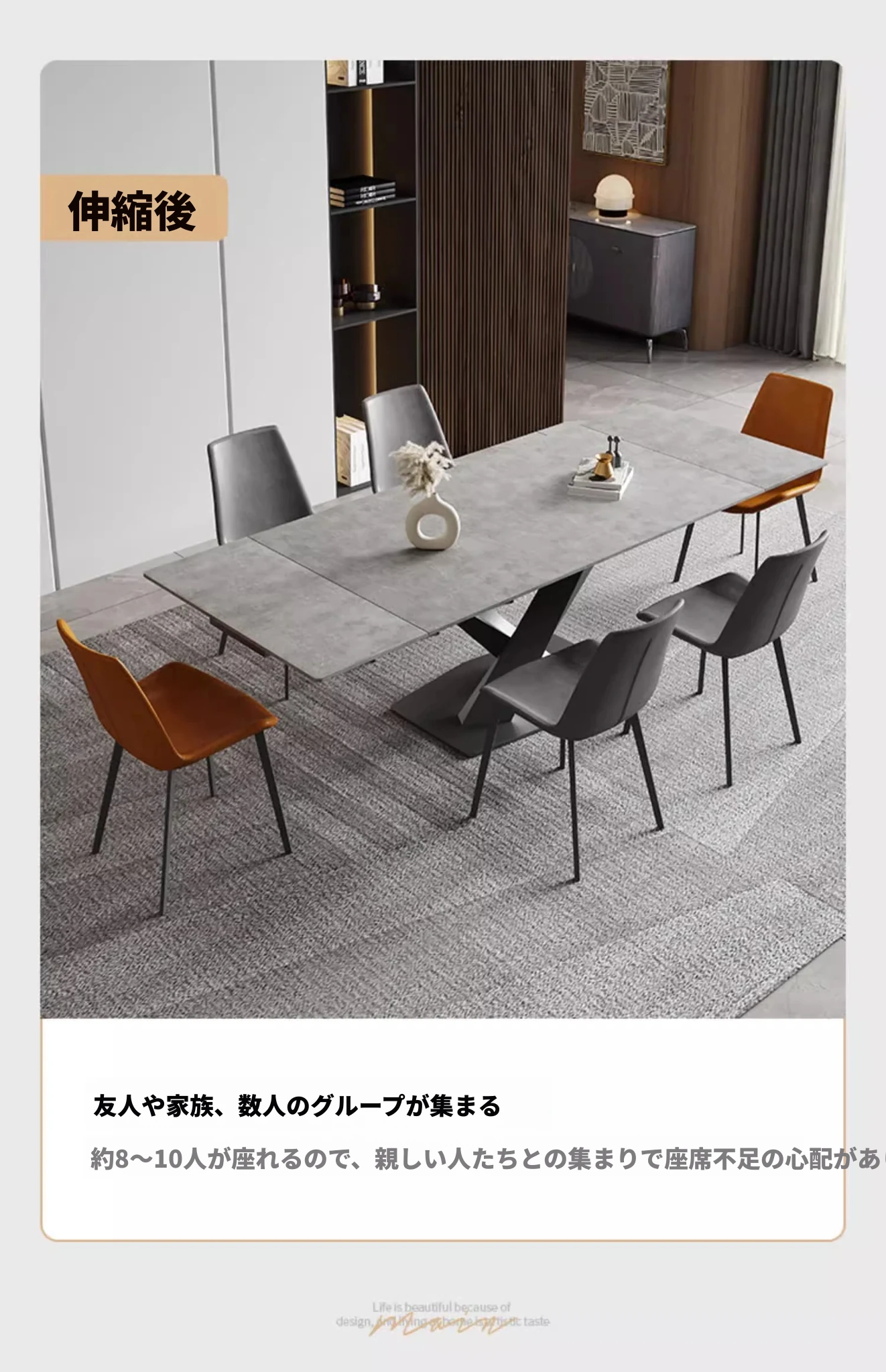 【複合岩板】1.4メートル伸縮2.0メートルダイニングテーブル