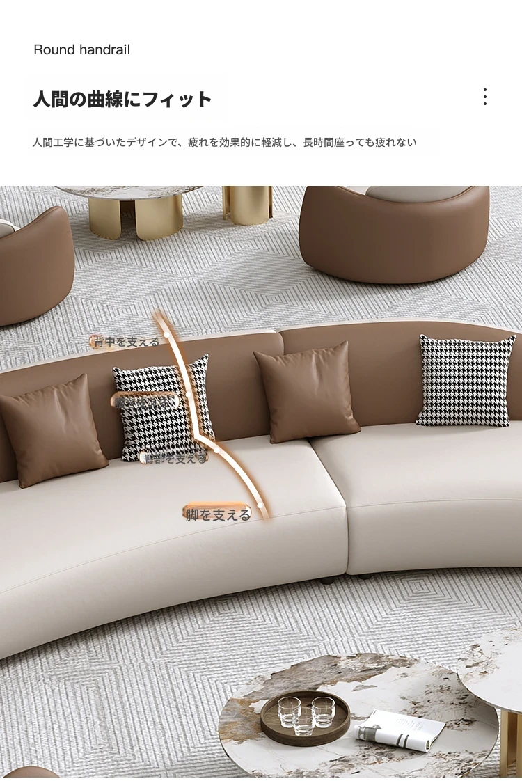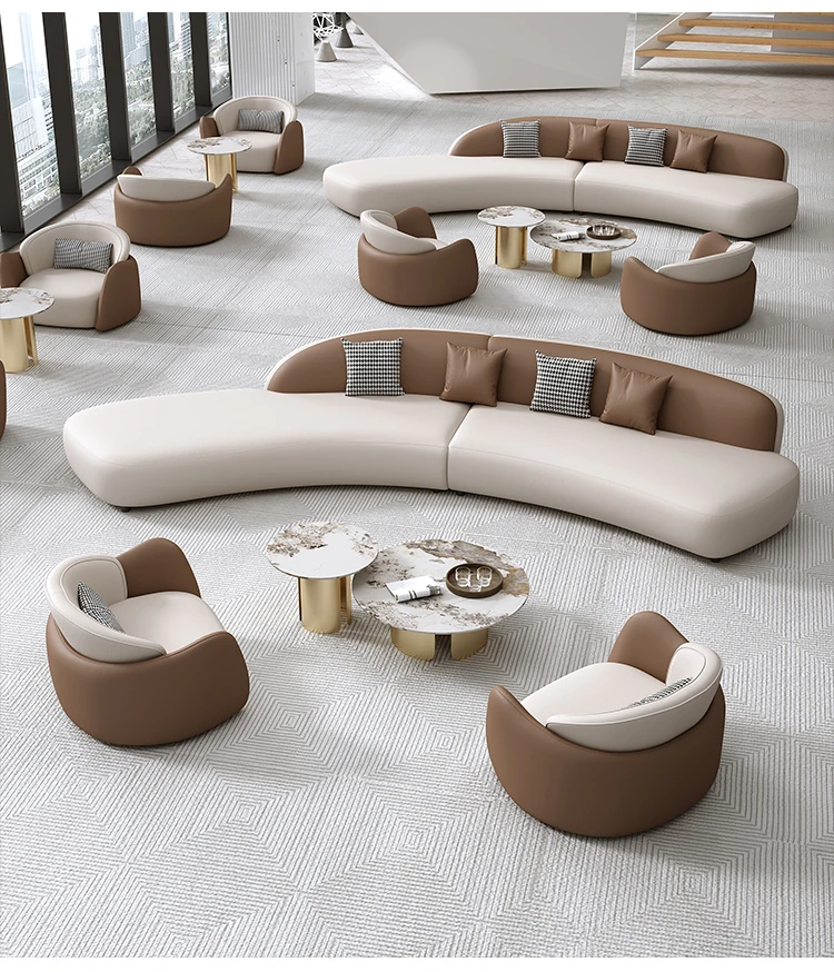 ホテルロビーのVIPラウンジ休憩エリア、接客スペースに最適なソファ。洗練されたデザインで、お客様を心地よくお迎えします。販売オフィスや商談にもぴったりな一品です。