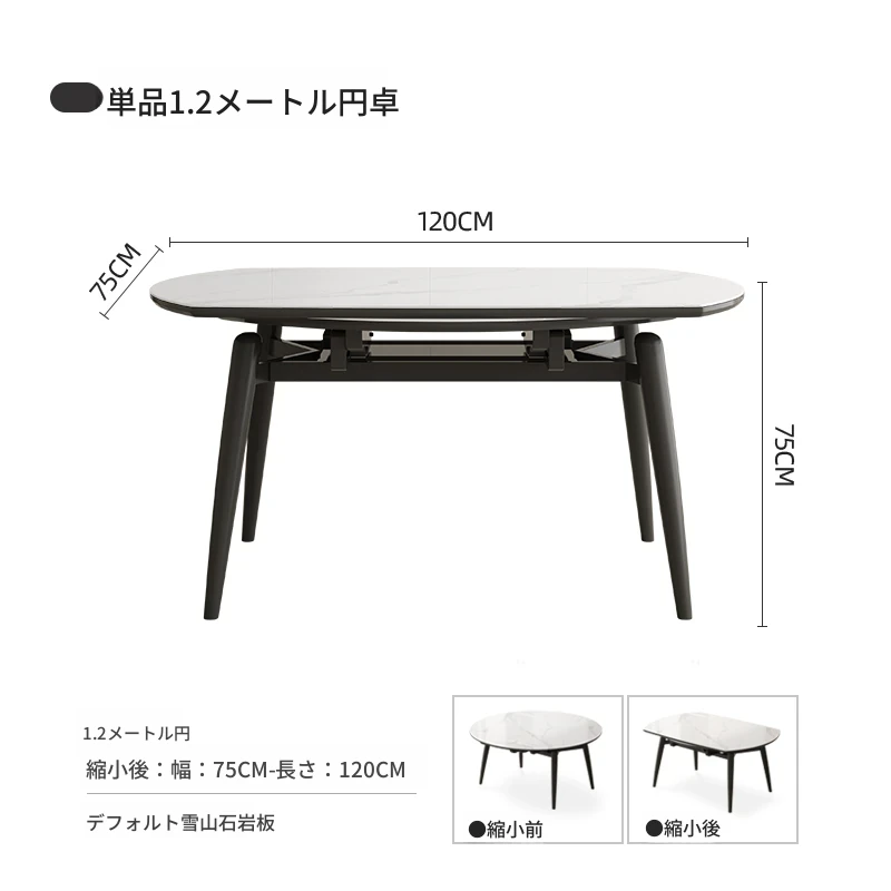 1.2メートルの円形・四角形兼用ダイニングテーブル+6椅子【6MMブランド岩板】