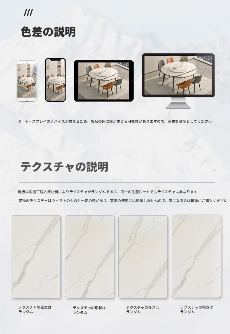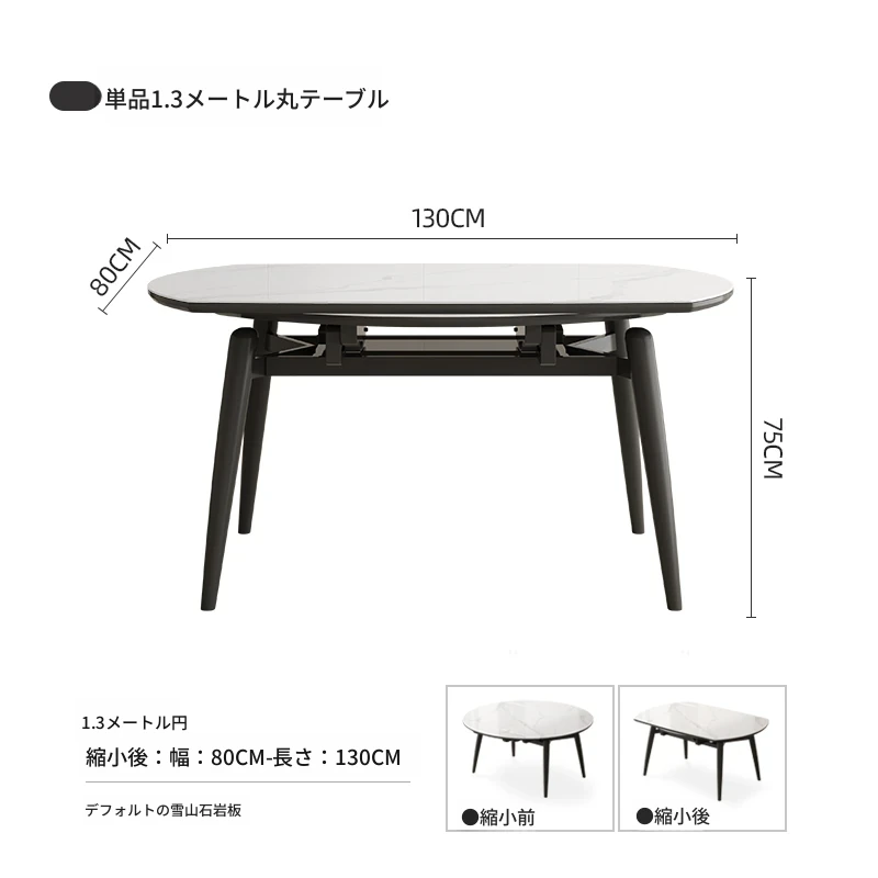 1.3*0.8メートルダイニングテーブル【12MM厚手ブランド岩板】