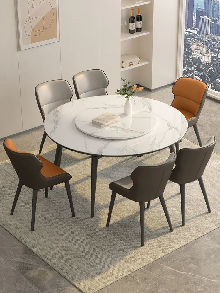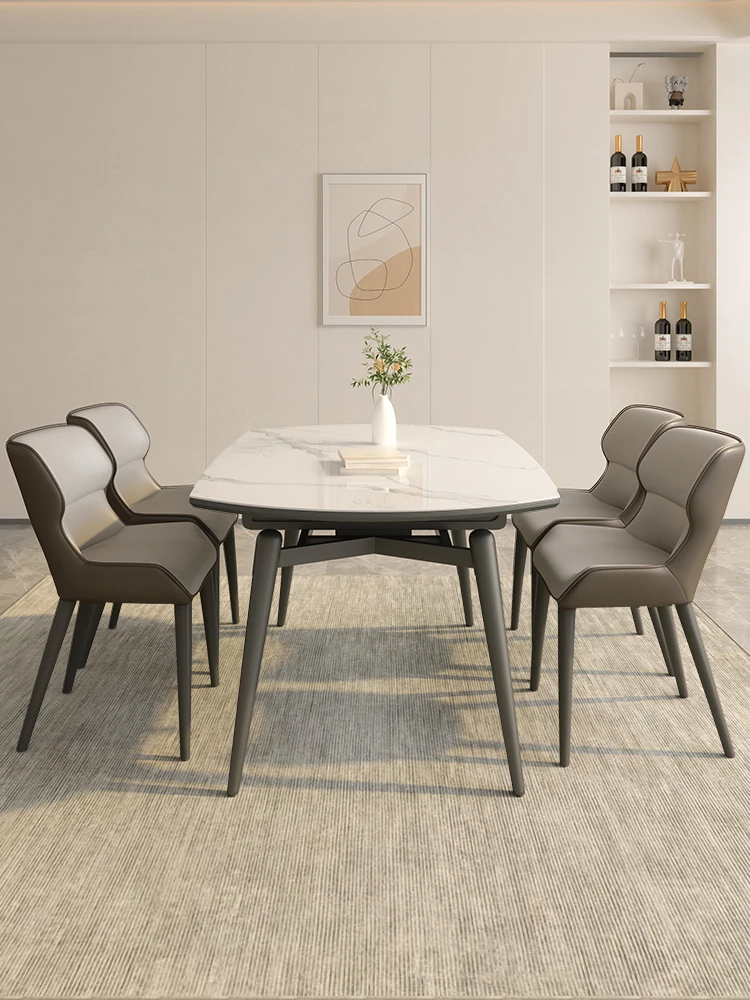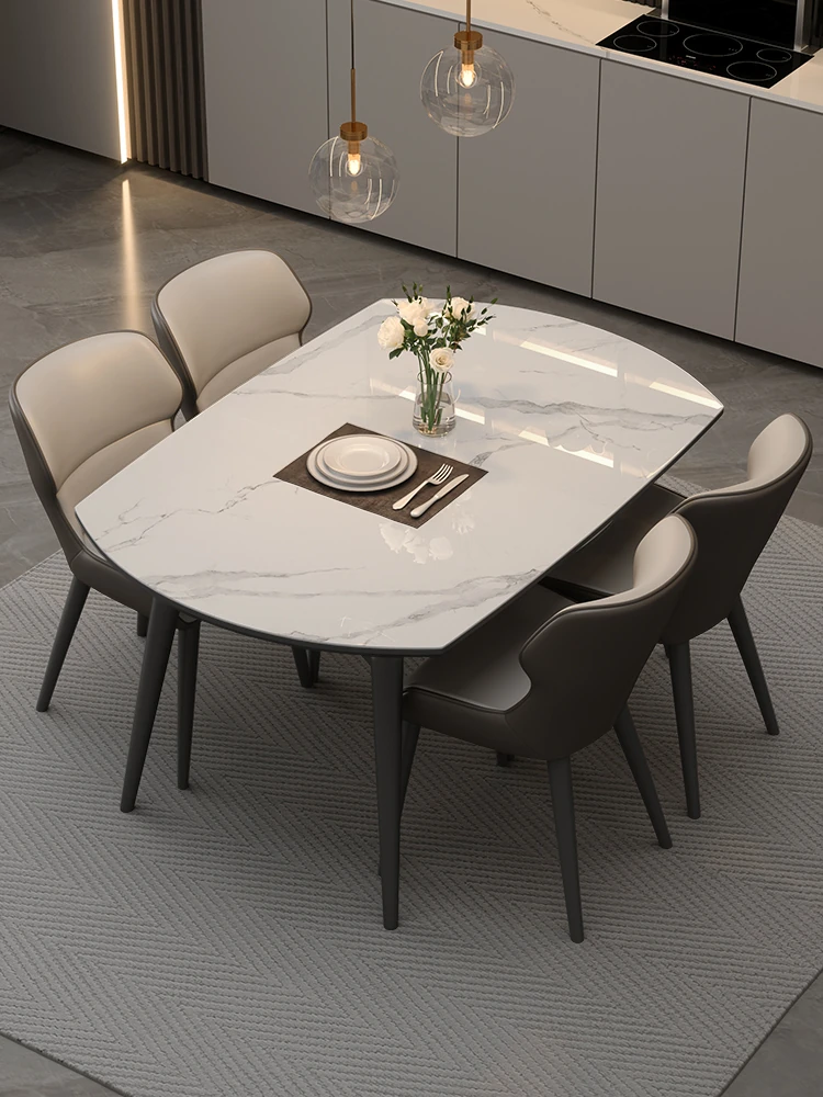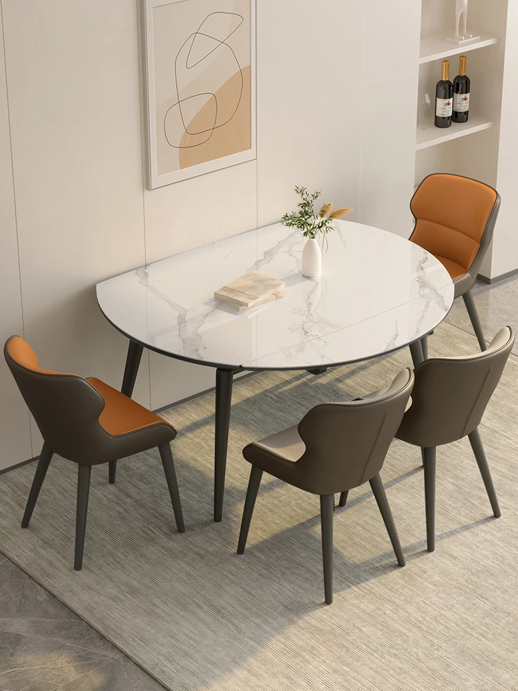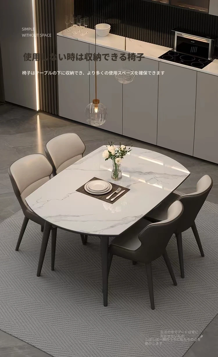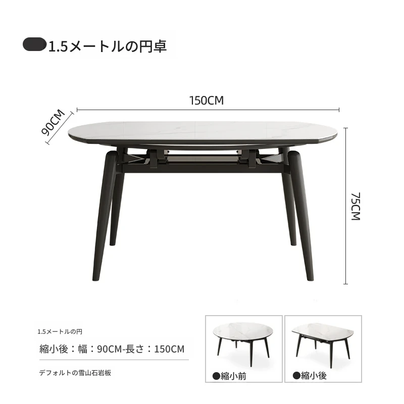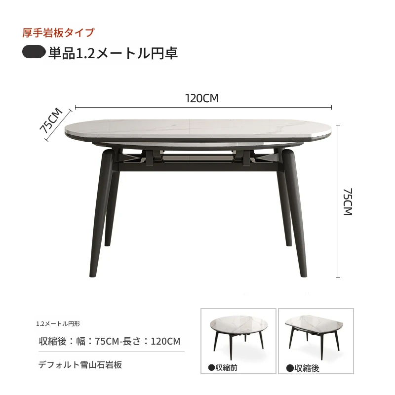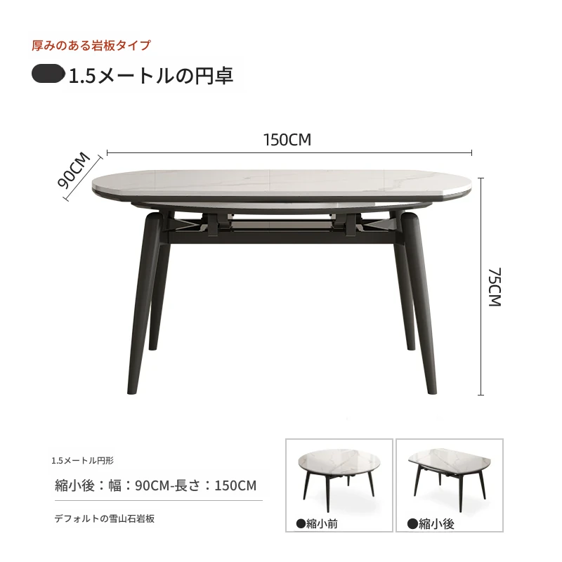 伸縮可能なモダンデザインの実木製岩板ダイニングテーブル - 小型住居に最適な軽奢華なシンプルスタイル、丸型と四角型の2WAYデザインで、使い勝手抜群の食卓です!