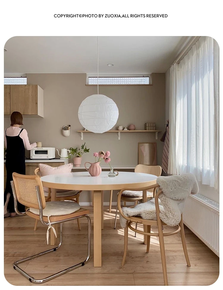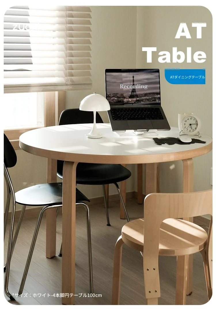 新作!商用レストラン向け、北欧スタイルのクリームカラーの丸テーブル - 高品質な無垢材使用で、カフェやレストランに最適なリラックス空間を演出します!