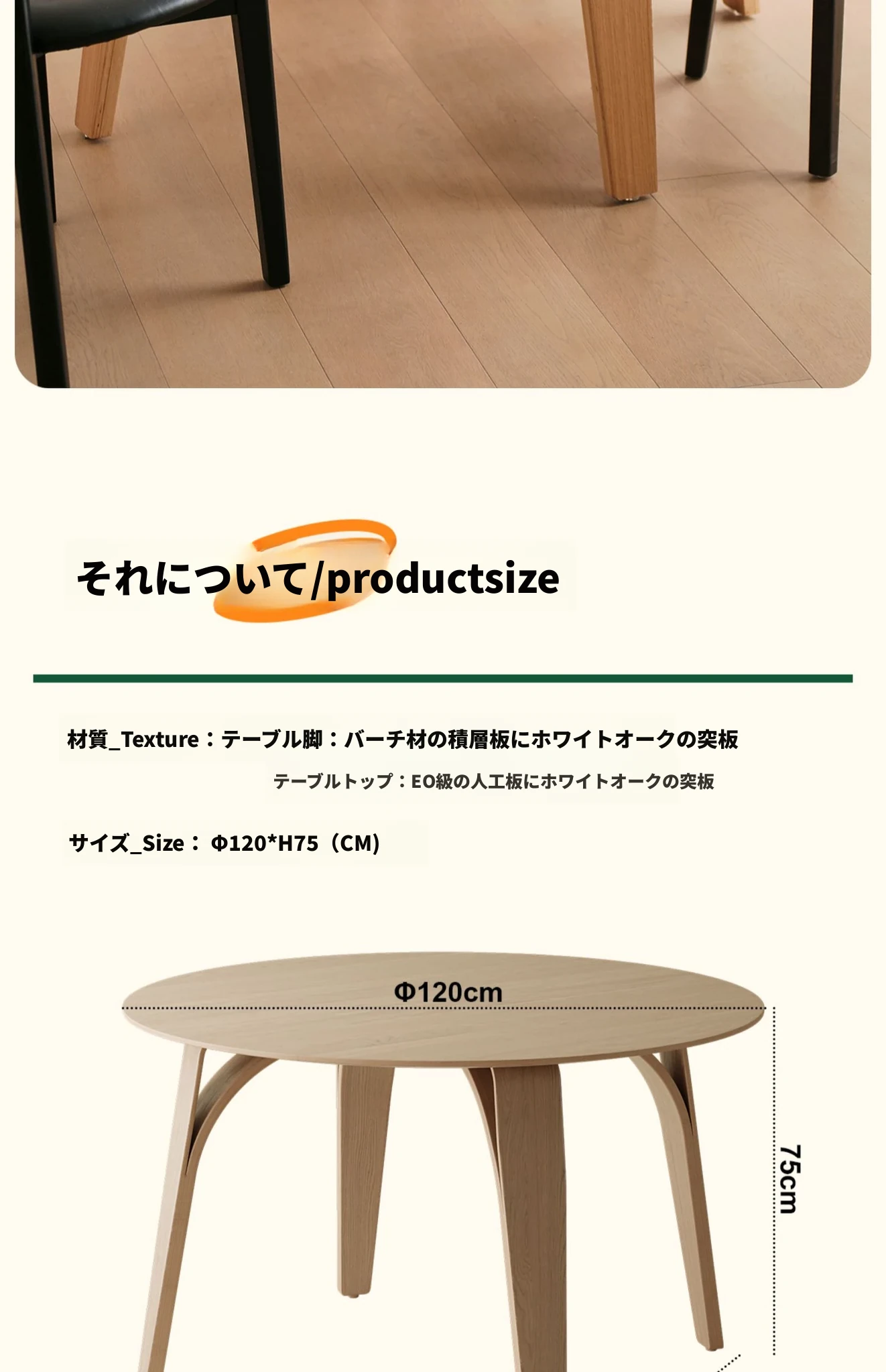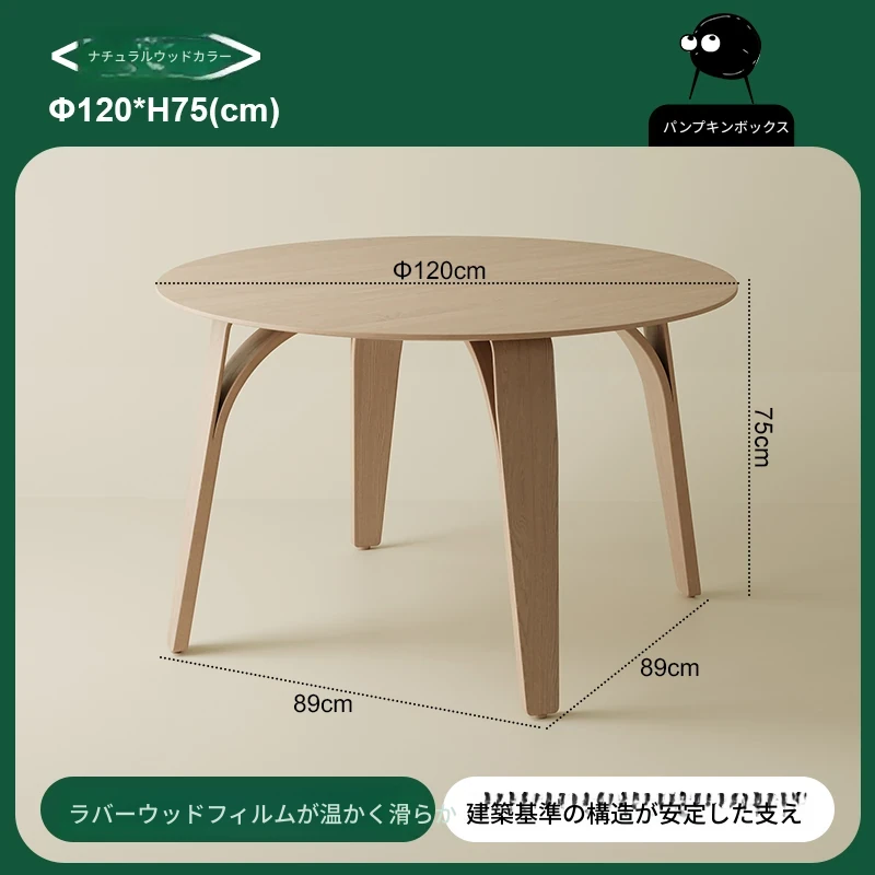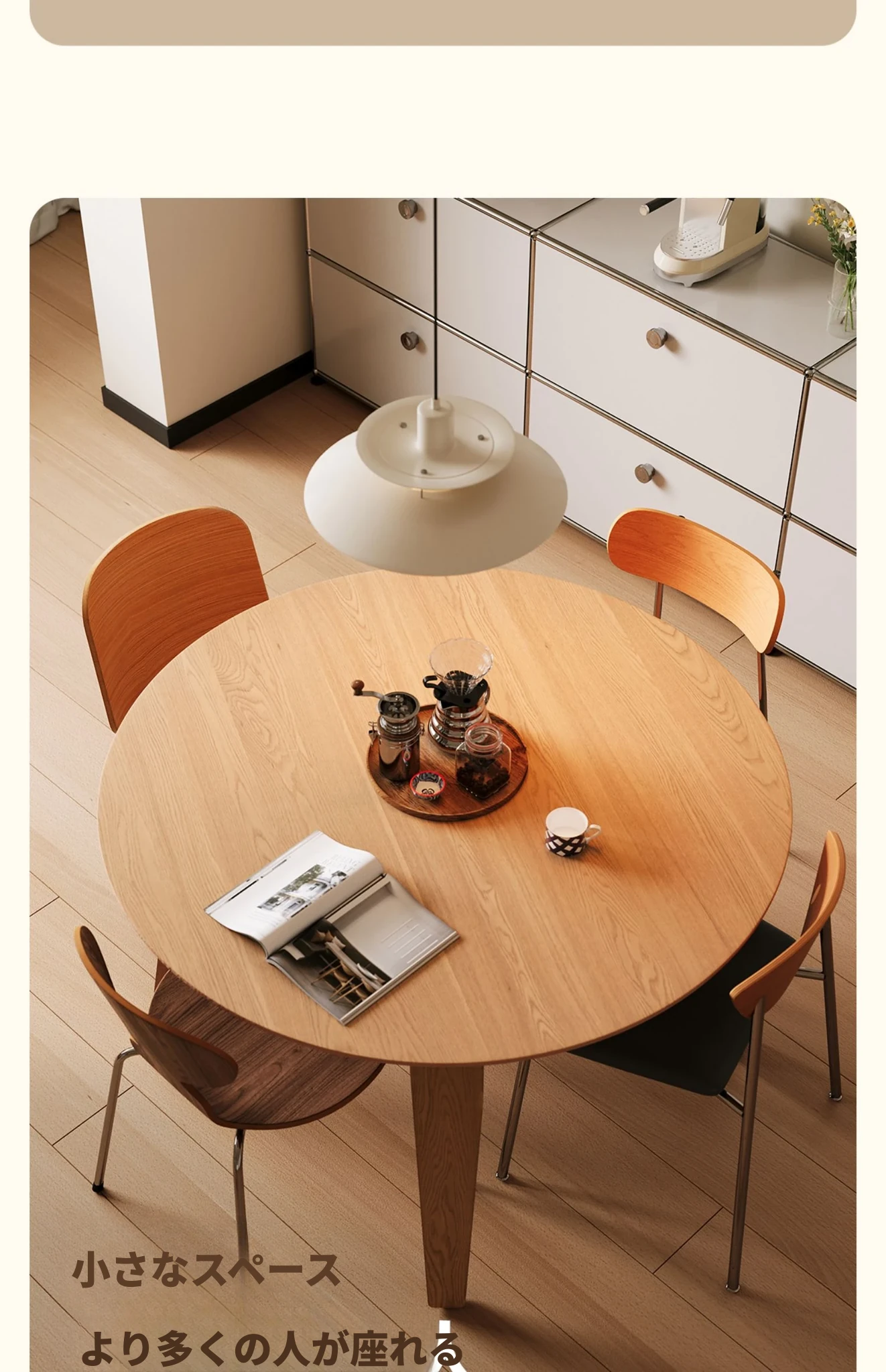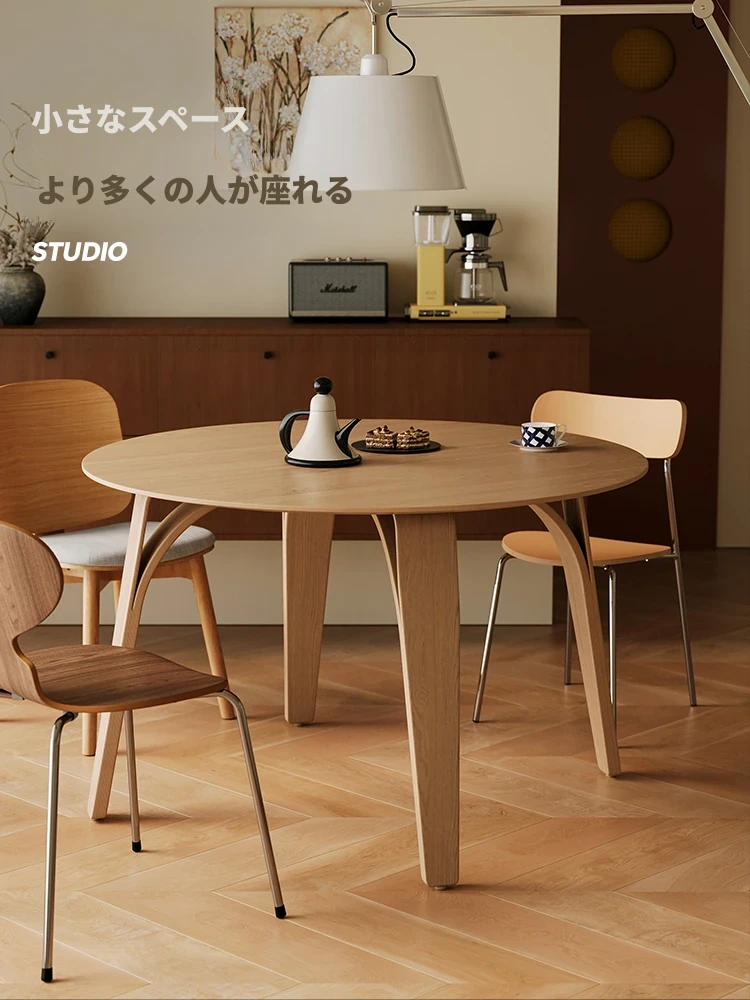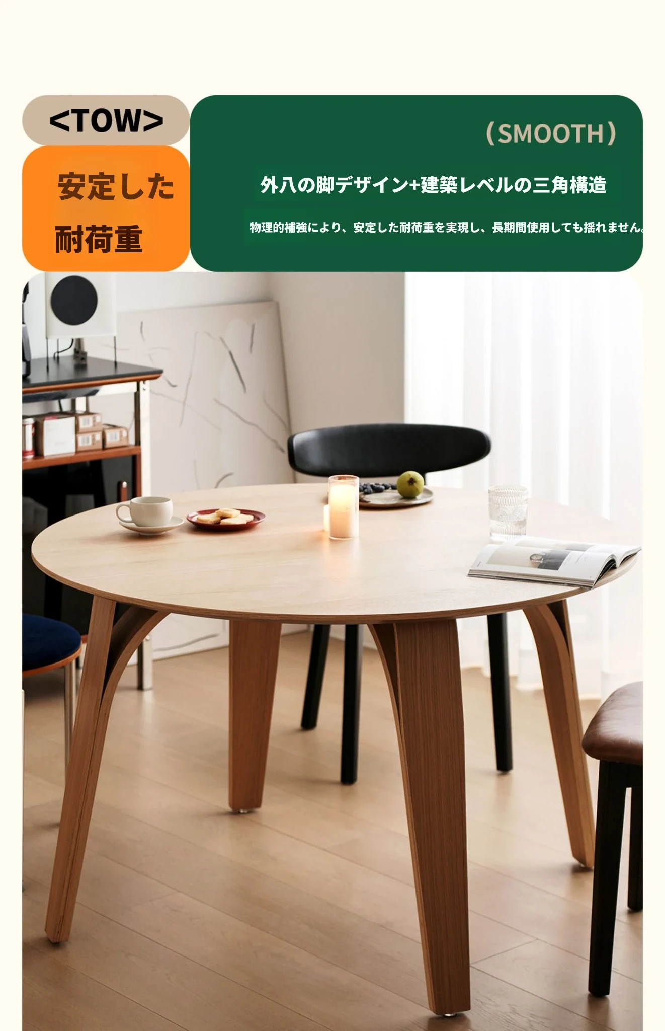 自然派の木製サークルテーブル - シンプルでおしゃれなデザイン、狭いスペースにも最適!家庭用やカフェ、レストランの接待にもぴったりです。おしゃれなインテリアを演出し、食事の時間を特別に彩ります。