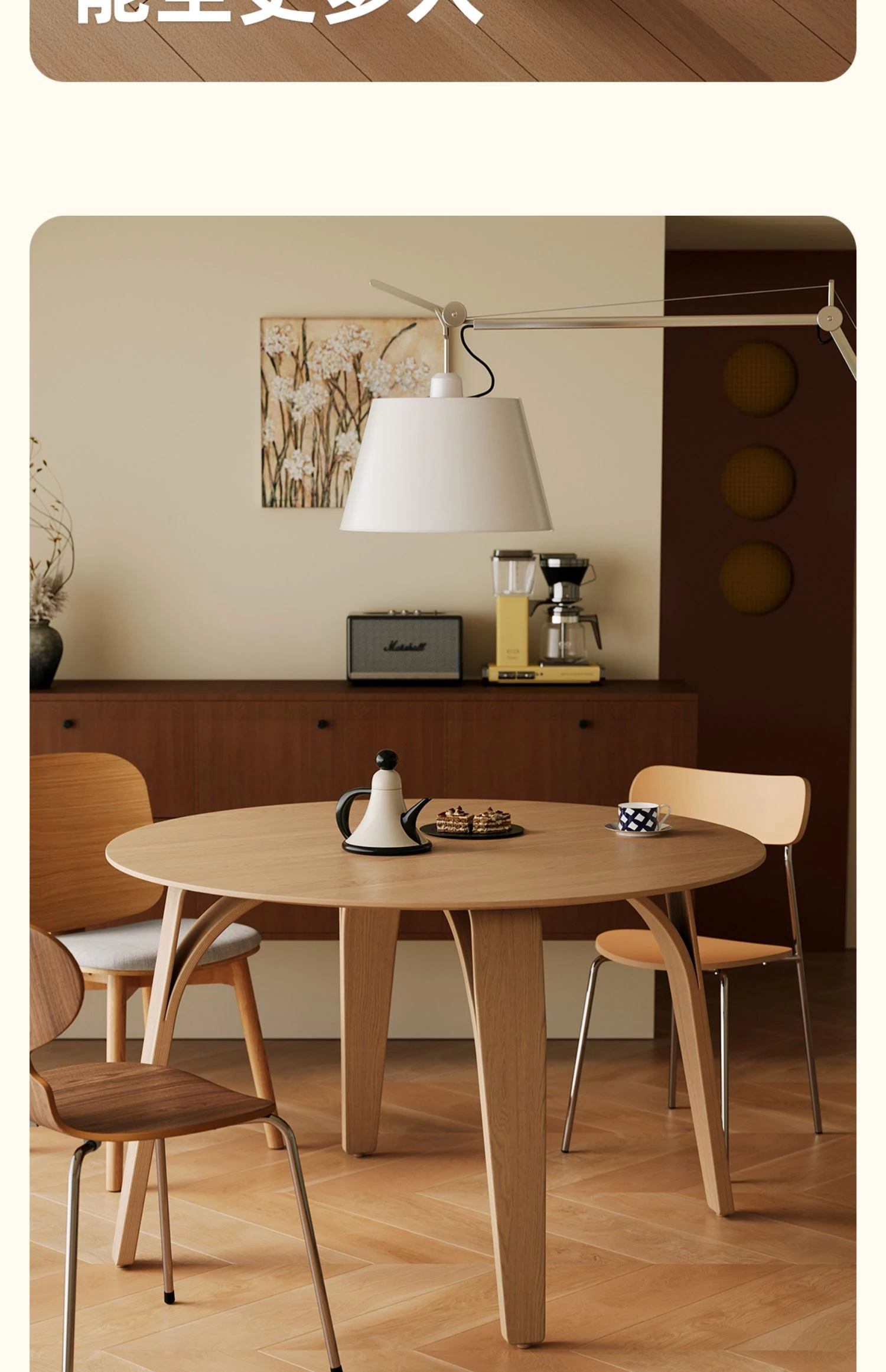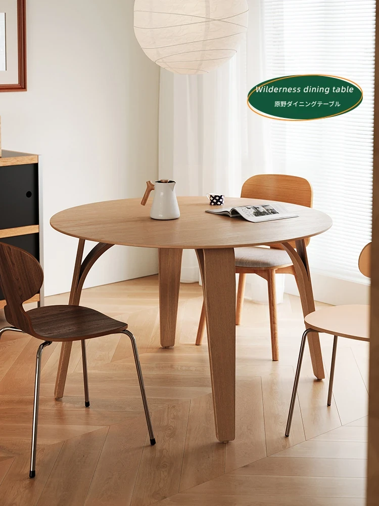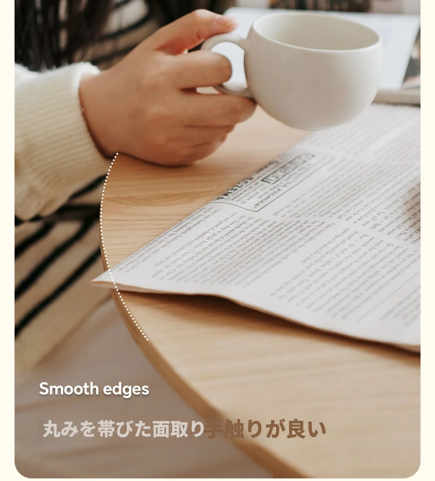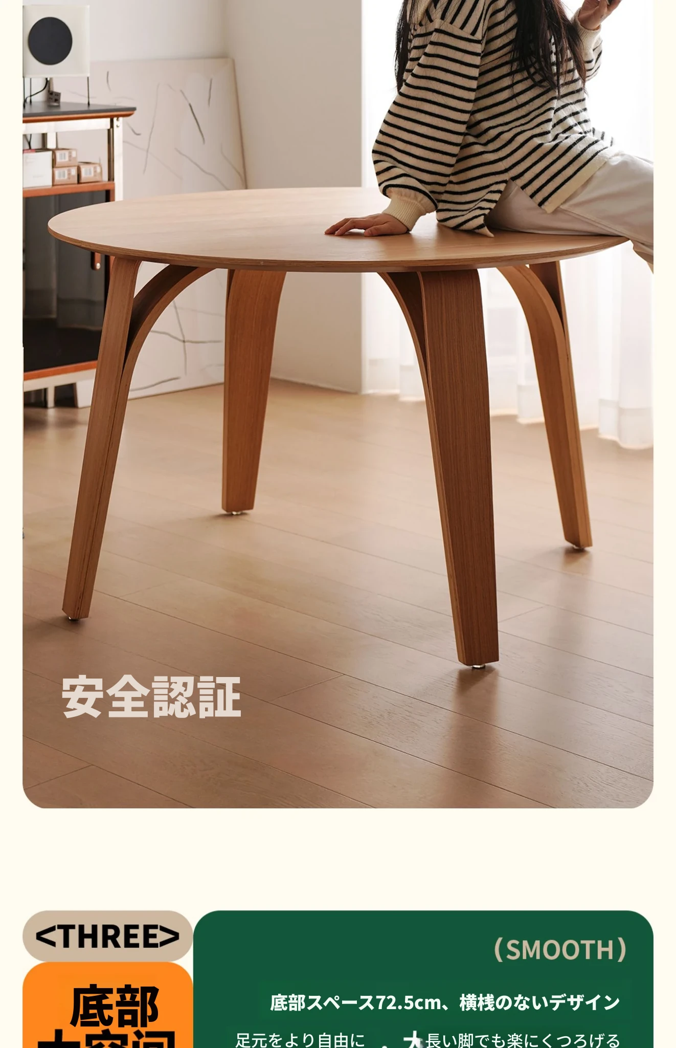 自然派の木製サークルテーブル - シンプルでおしゃれなデザイン、狭いスペースにも最適!家庭用やカフェ、レストランの接待にもぴったりです。おしゃれなインテリアを演出し、食事の時間を特別に彩ります。