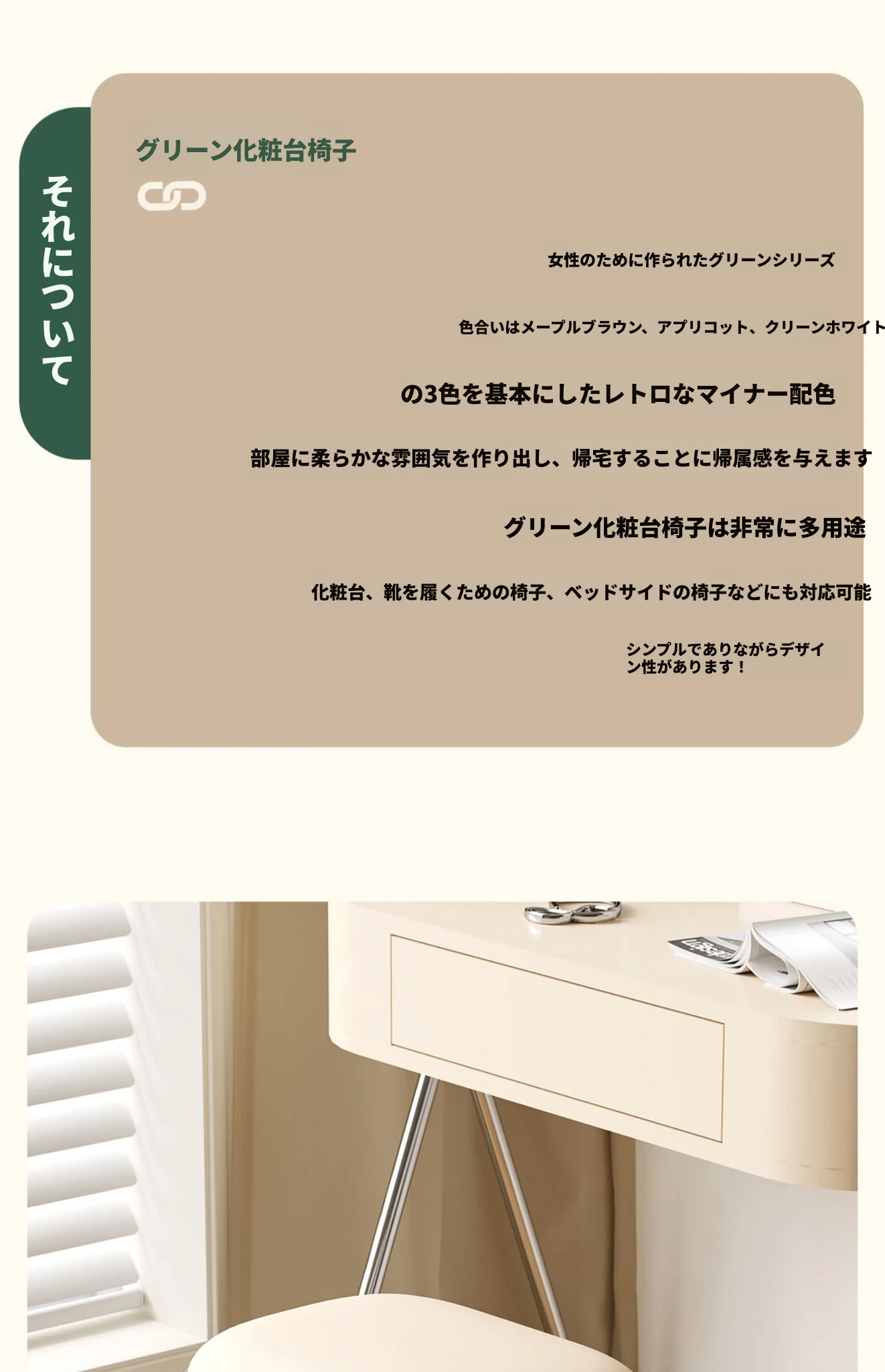 北欧風インスタ映えするシンプルモダン化粧椅子 – 軽やかなラグジュアリー、寝室にぴったりのソフトパッド付きドレッシングテーブル用スツール!
