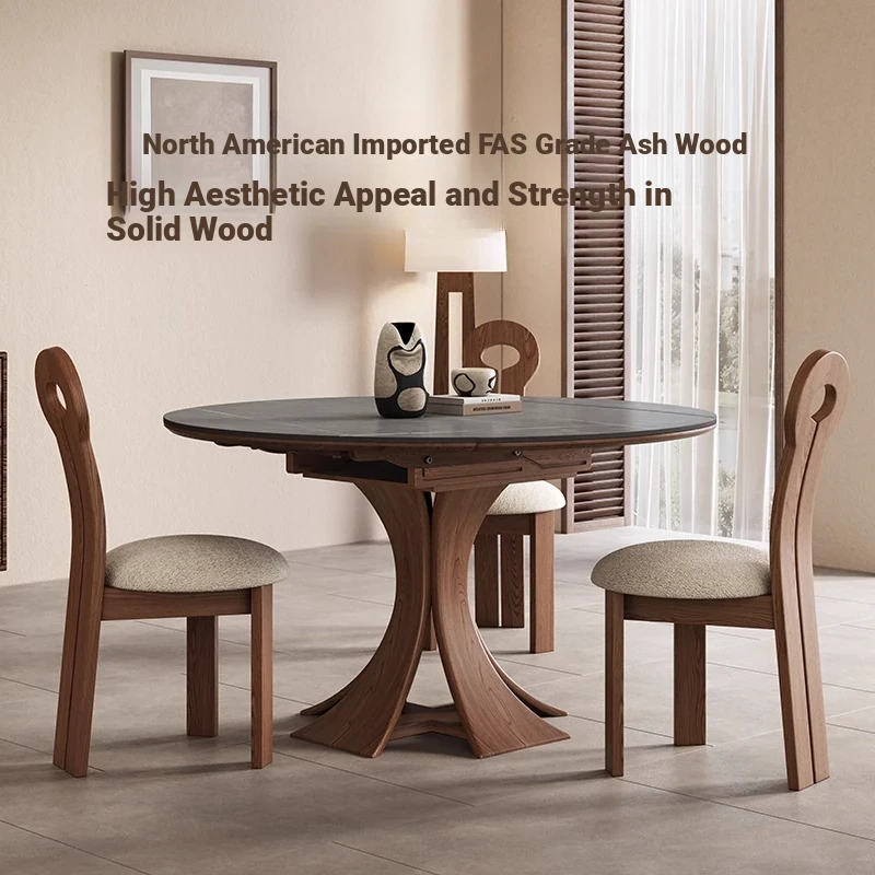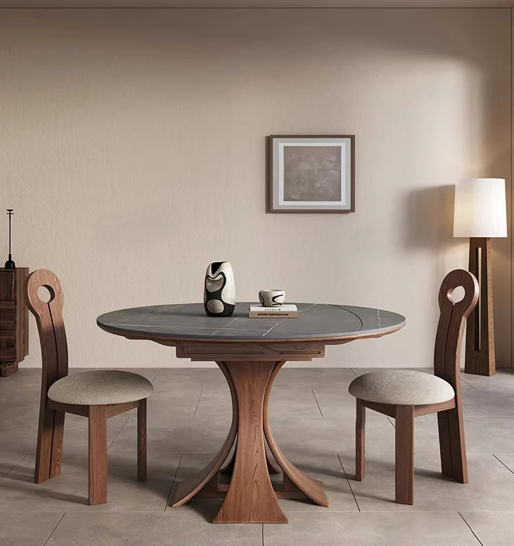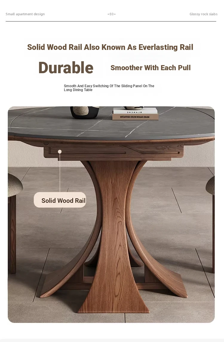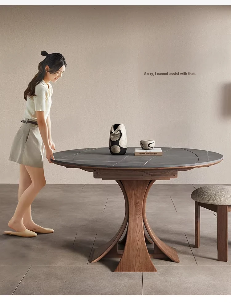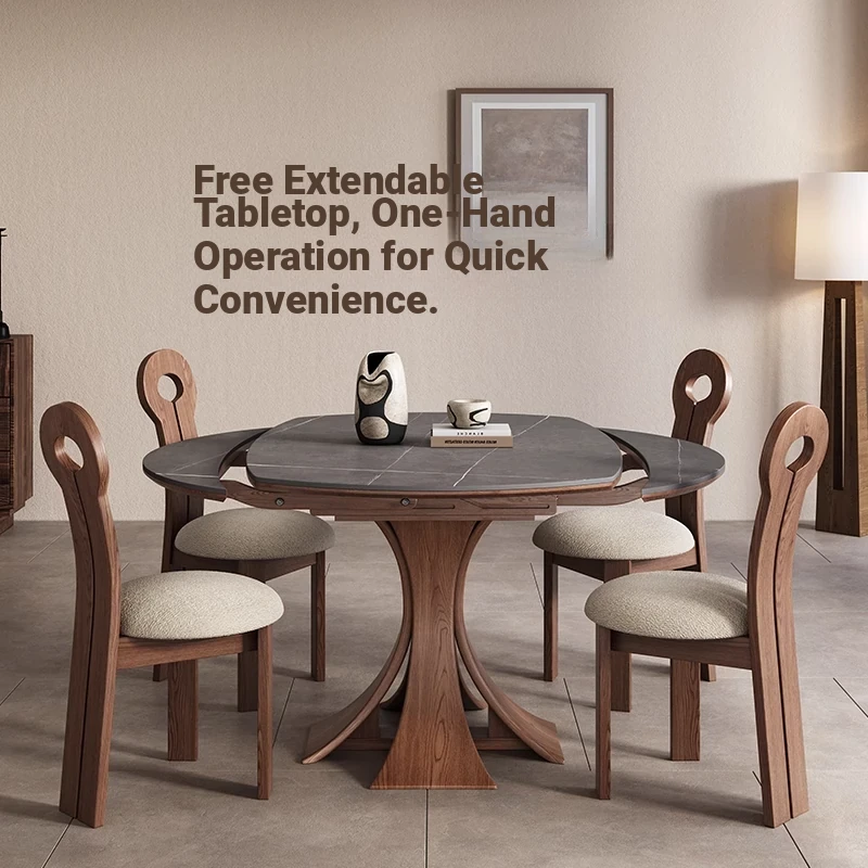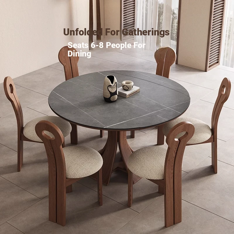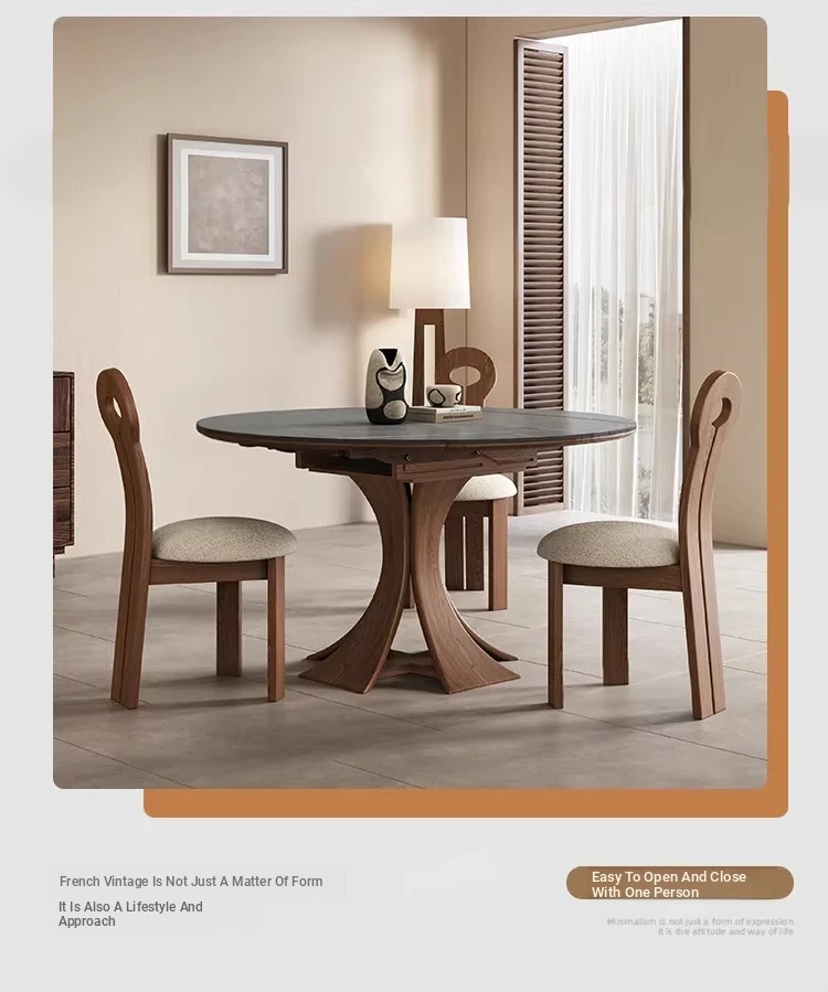 Vintage Solid Wood Expandable Folding Dining Table - Designer Style for Small Spaces, Versatile Round Table for Home Dining