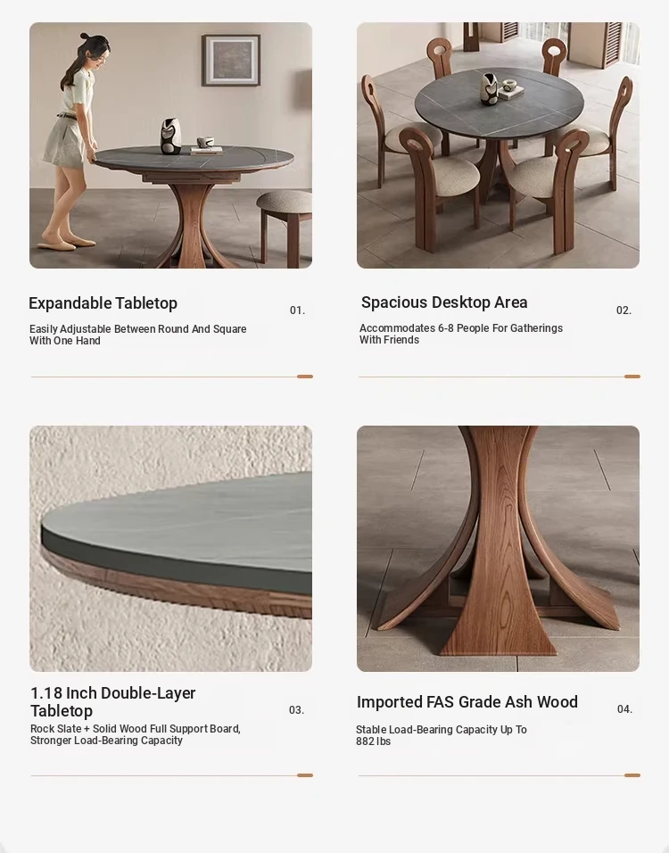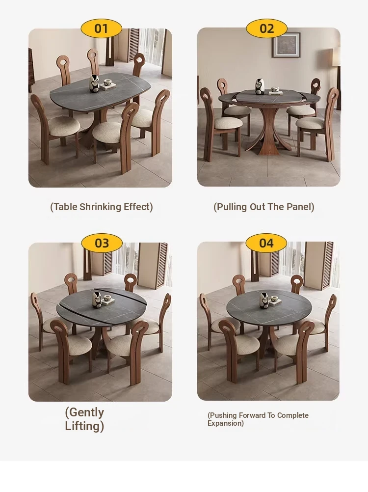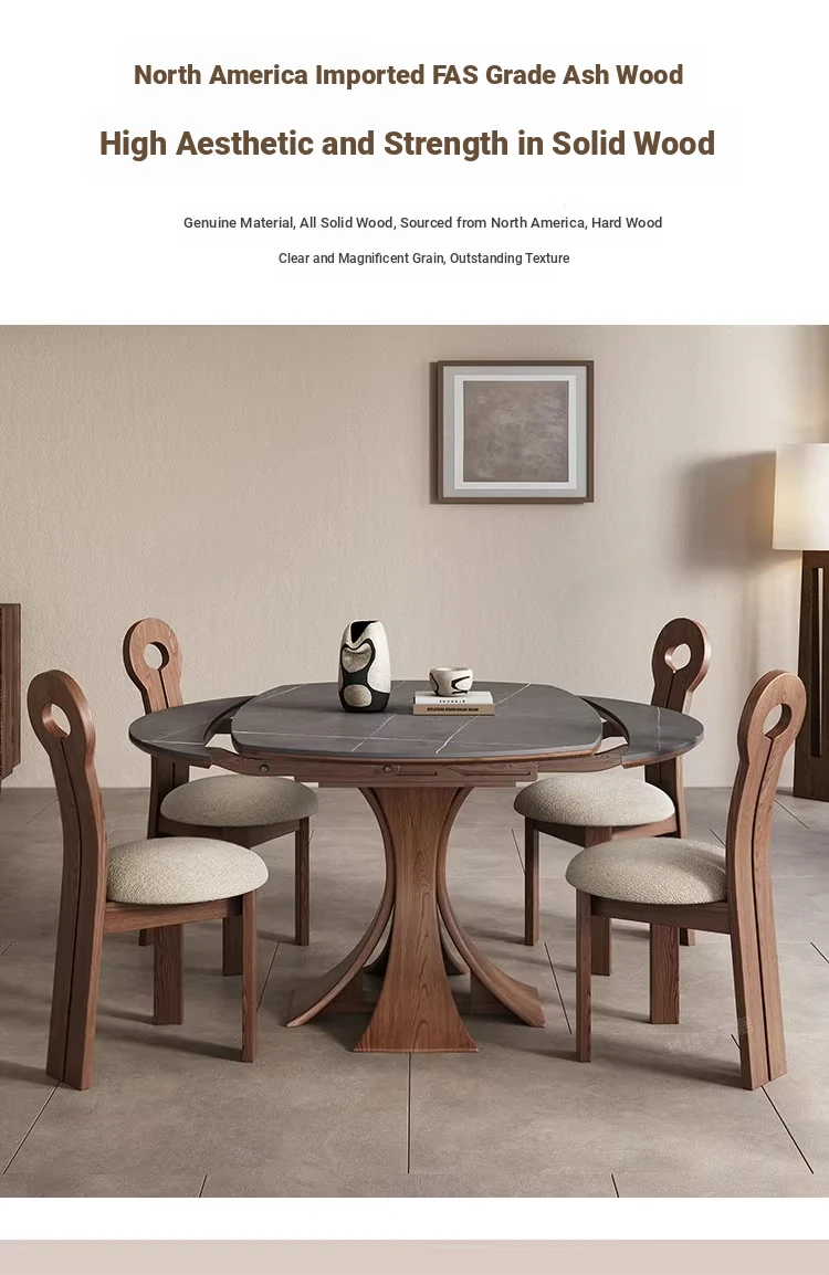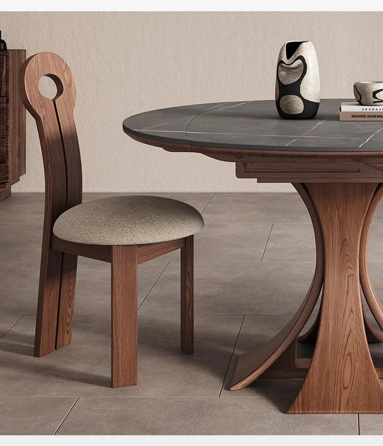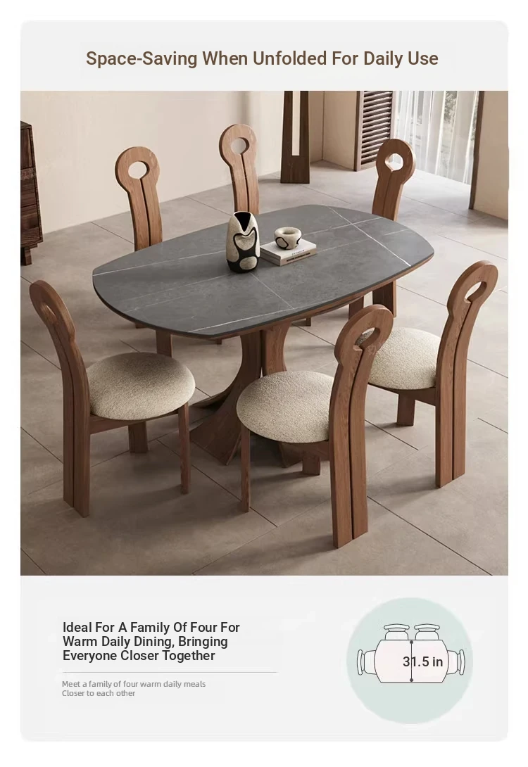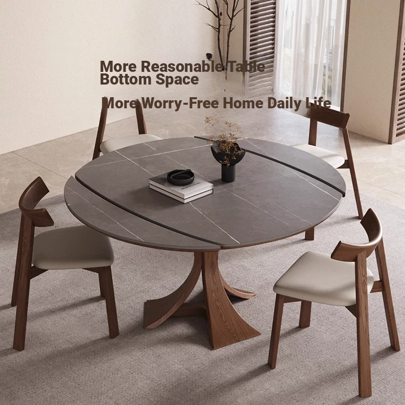 Vintage Solid Wood Expandable Folding Dining Table - Designer Style for Small Spaces, Versatile Round Table for Home Dining