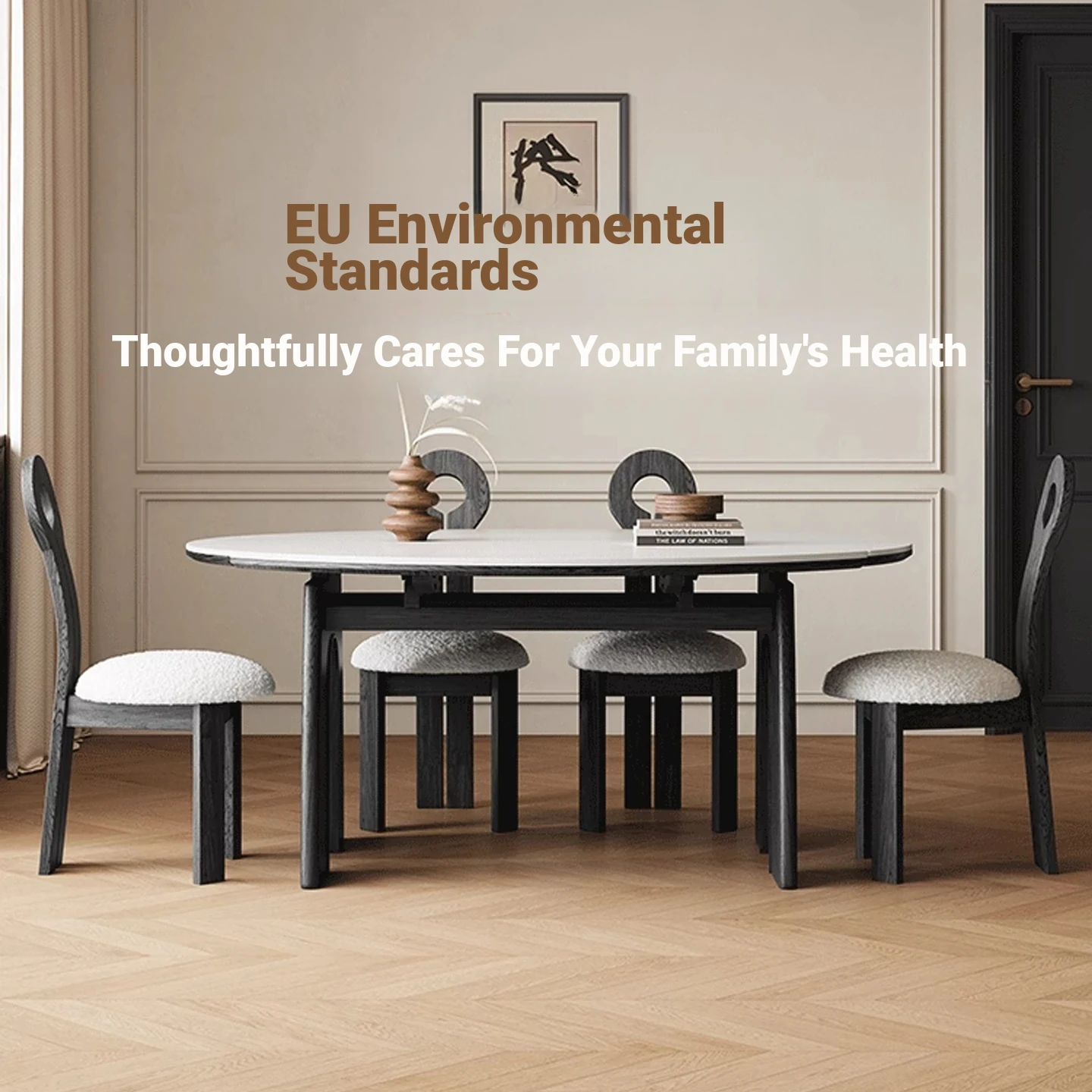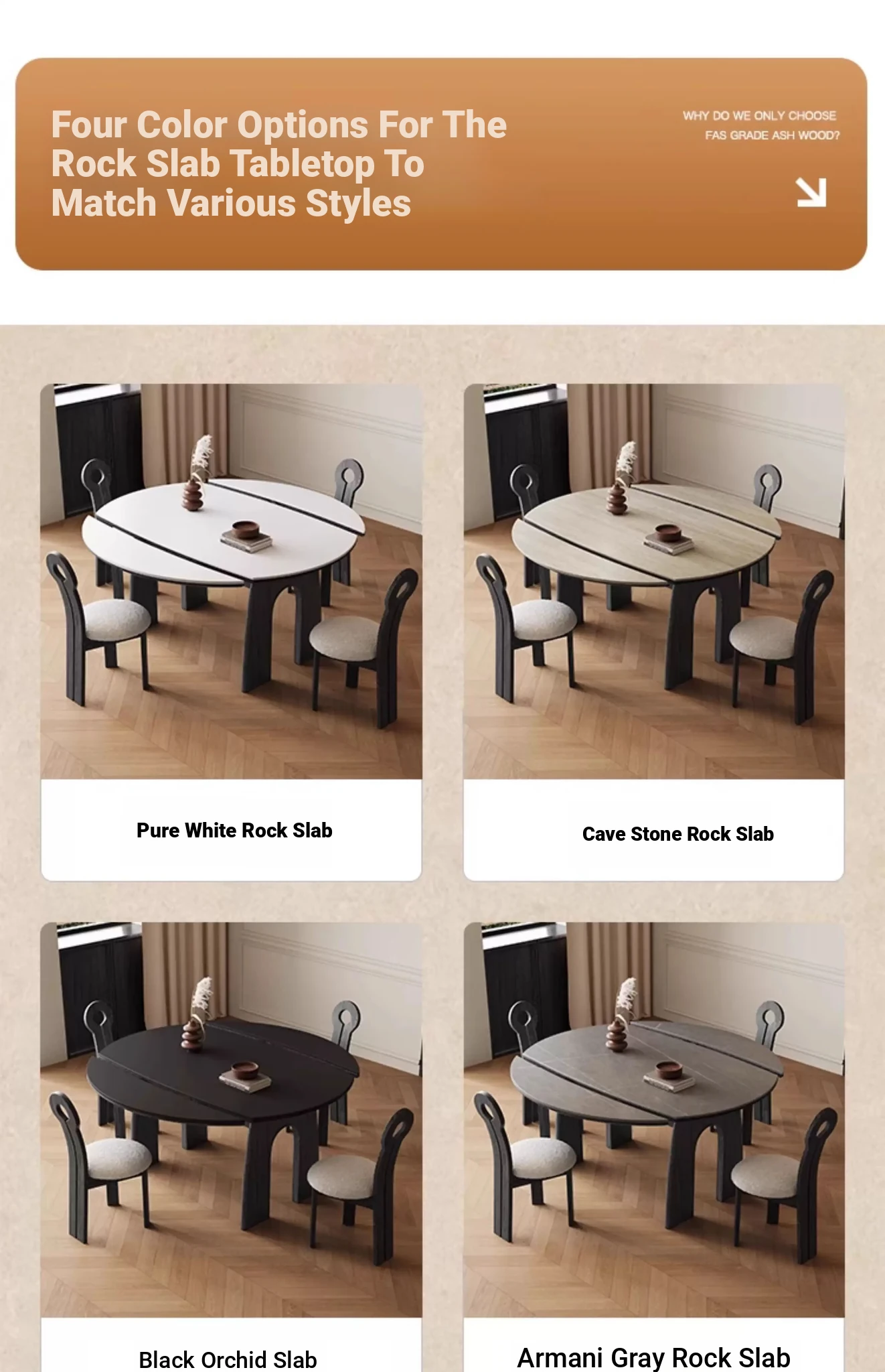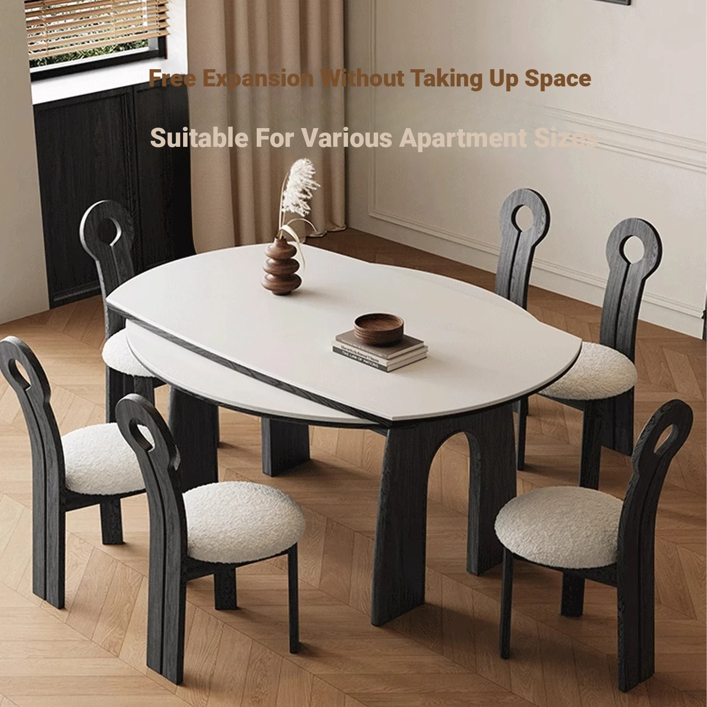 Solid Wood Rock plate telescopic dining table(Double-layer table top])