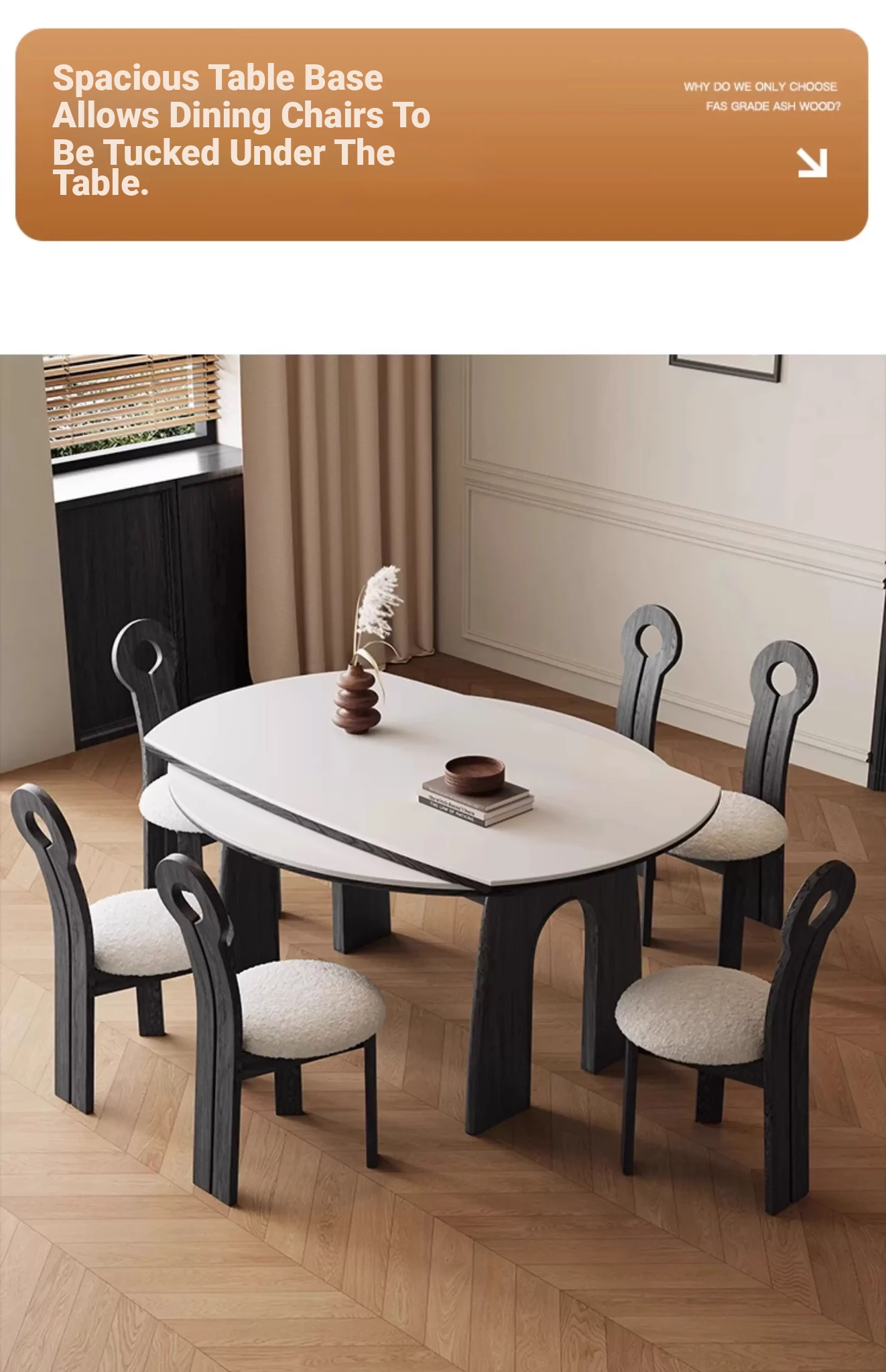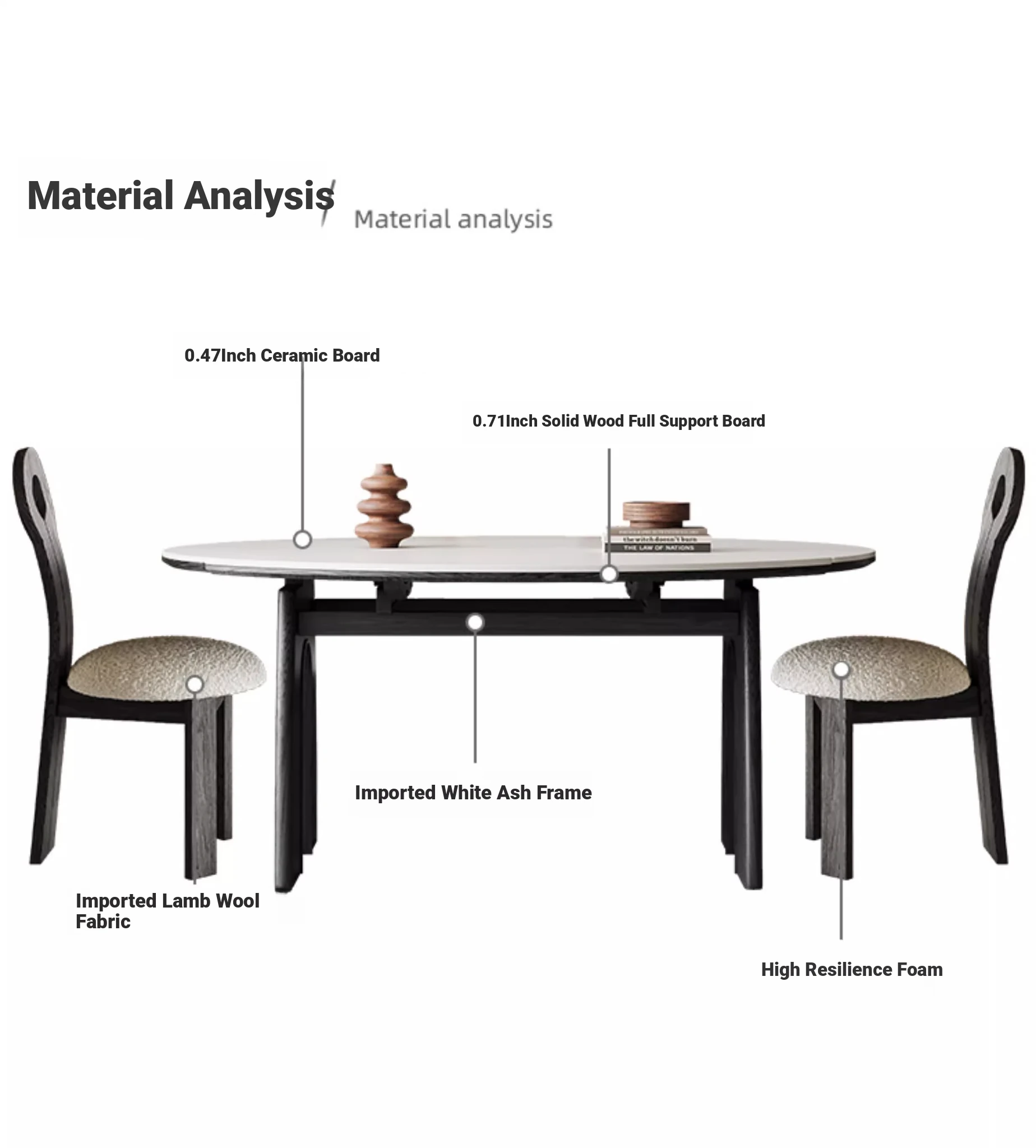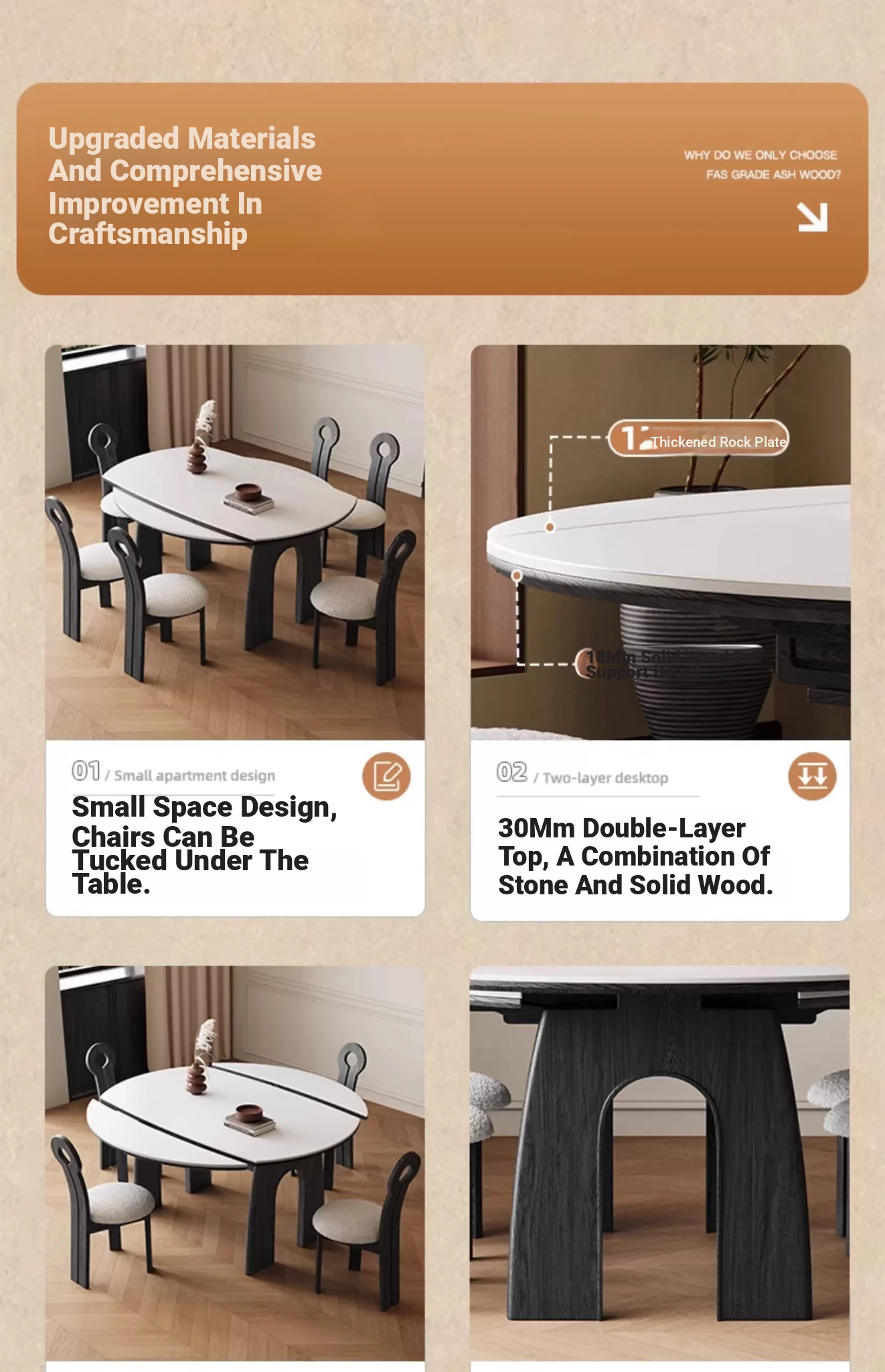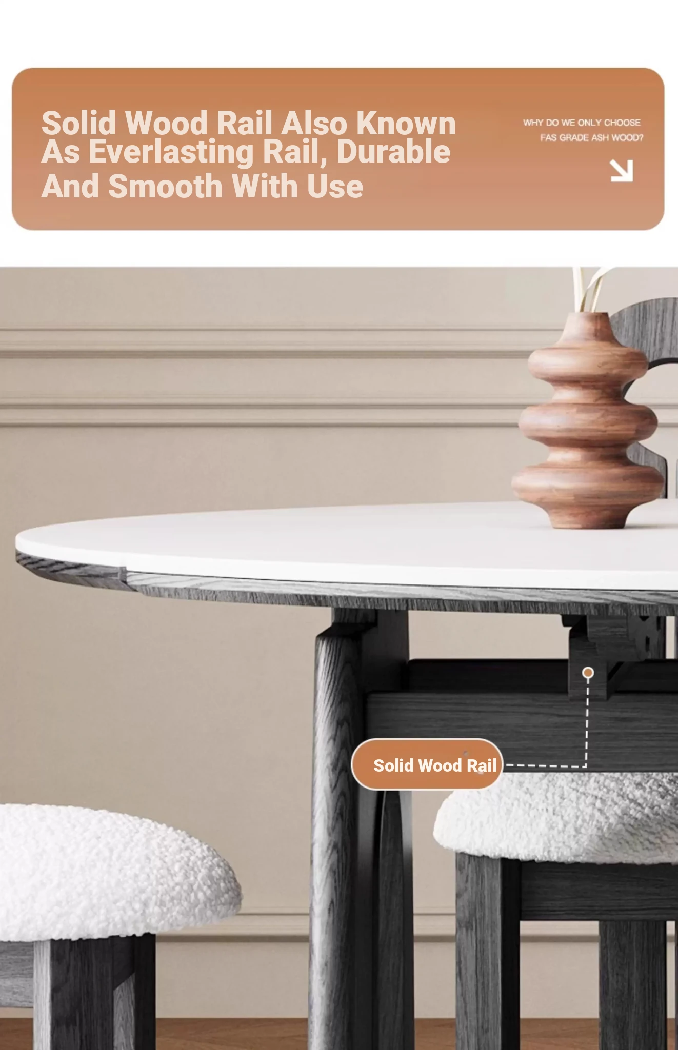 Solid Wood Rock plate telescopic dining table(Double-layer table top])