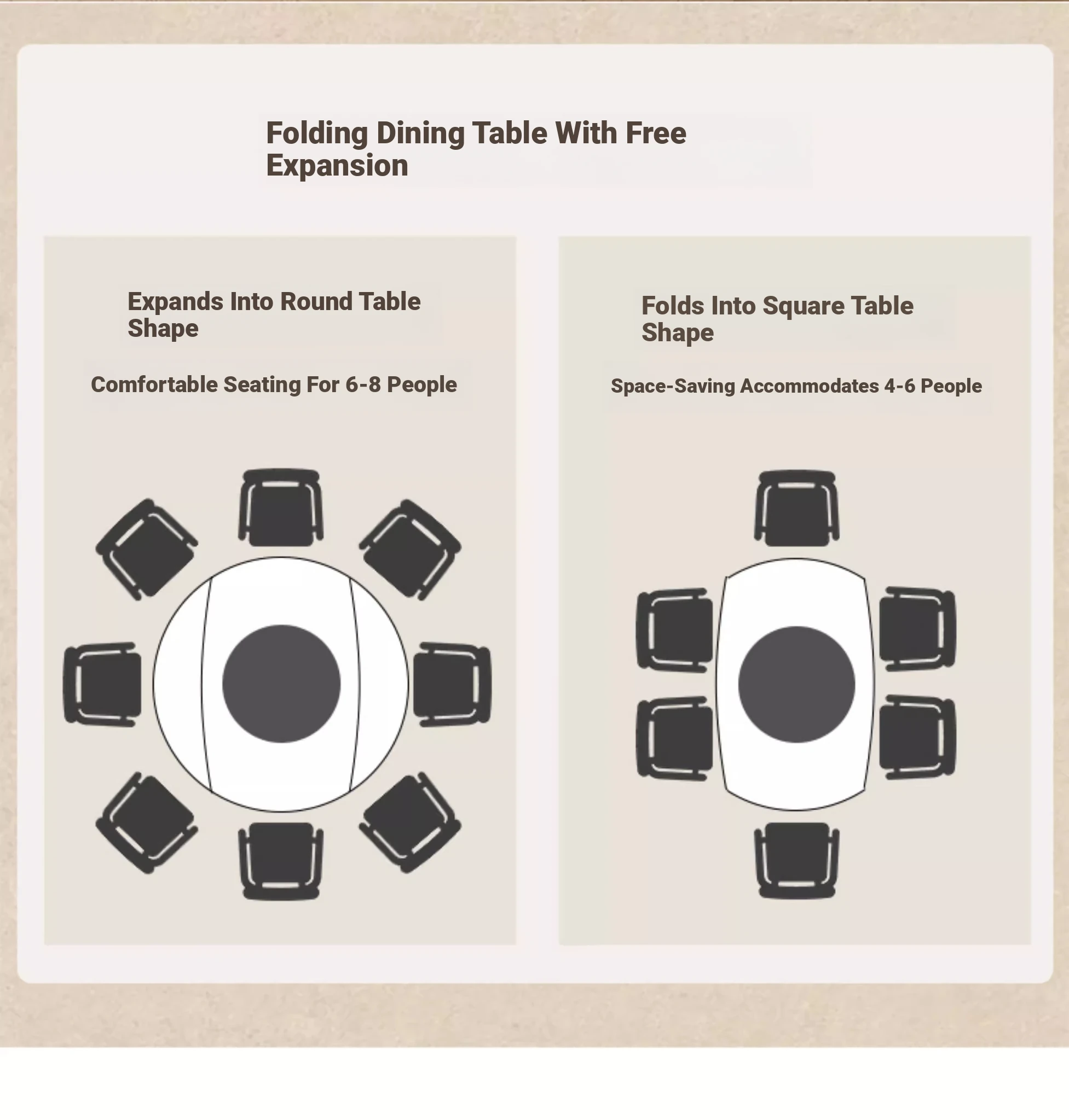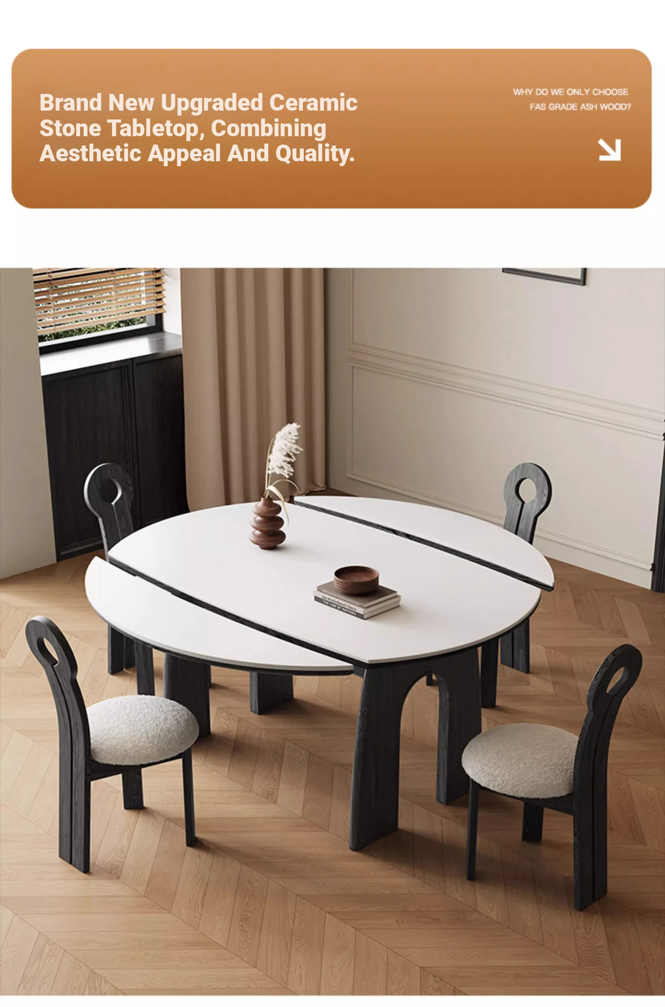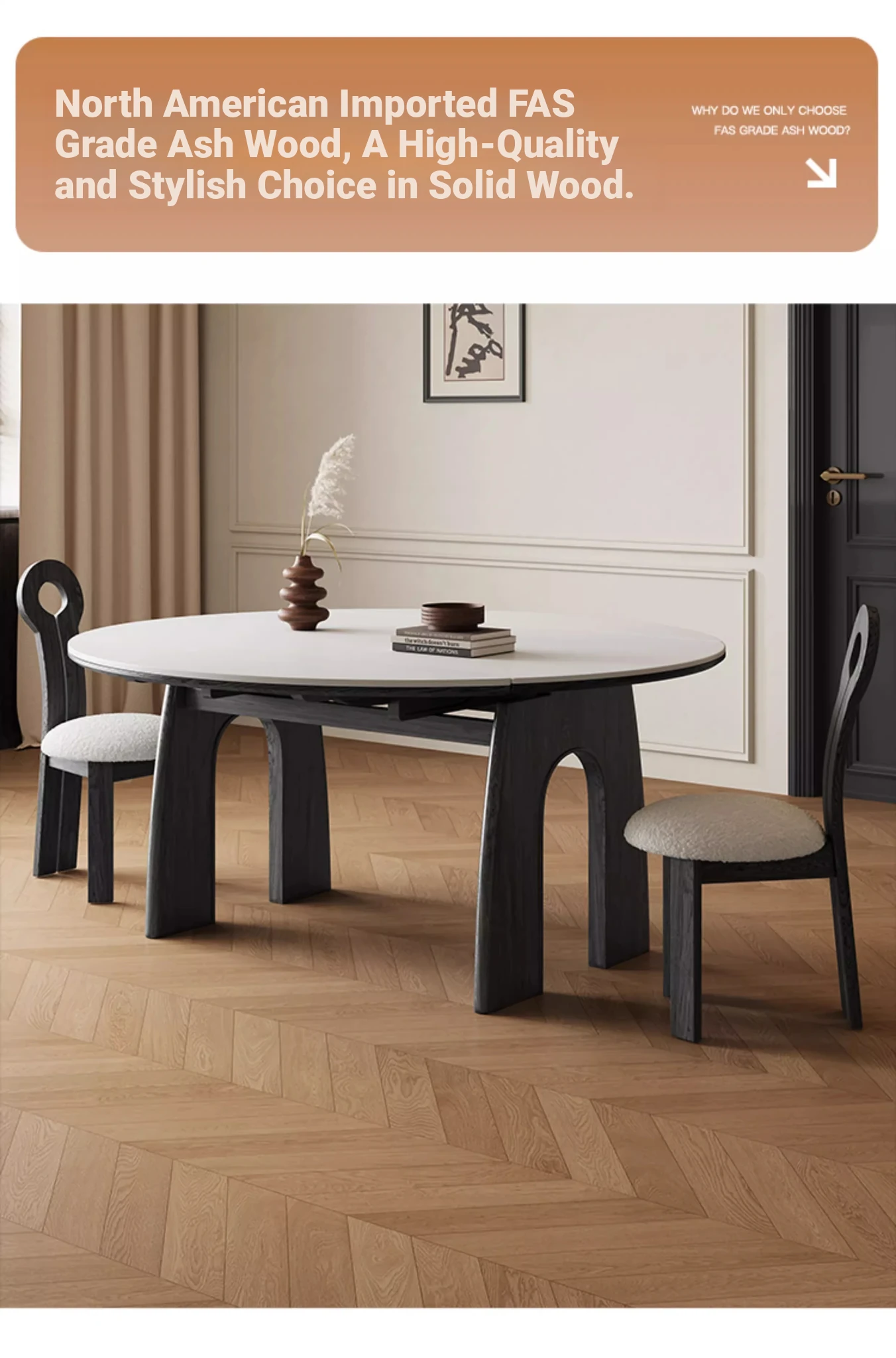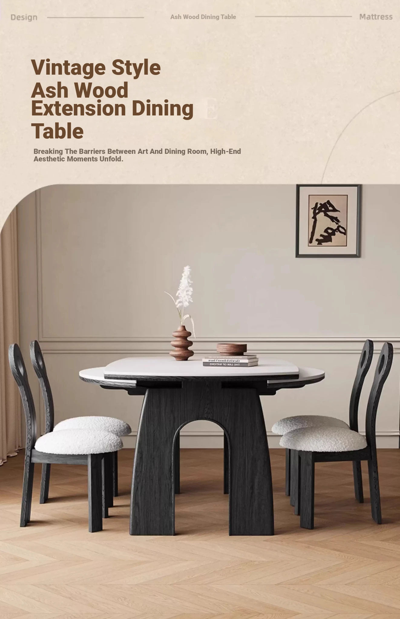 Vintage Solid Wood Rock Plate Dining Table - Space-Saving, Expandable, and Foldable Design for Small Homes - Versatile Square and Round Options in Ash Wood for Stylish Dining Experience.