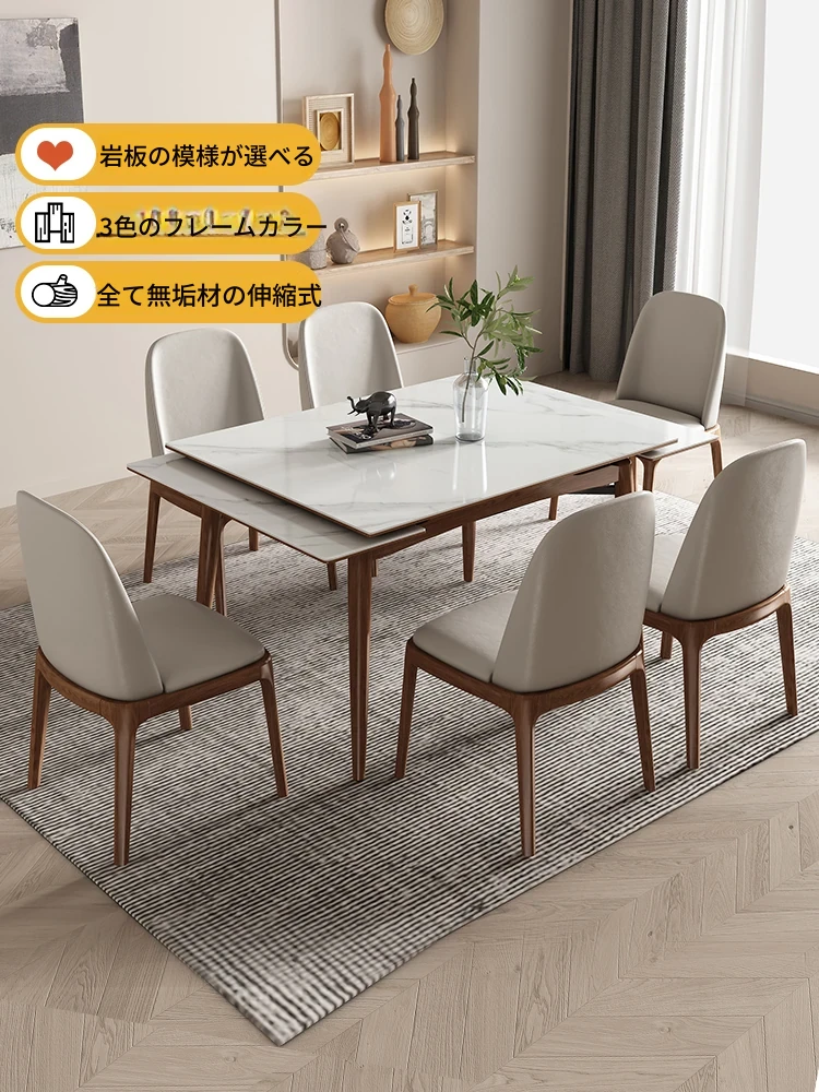小屋風ミニマリストデザインのイノ・ストーンテーブル|全実木製・伸縮可能な長方形ダイニングテーブル&チェアセット。シンプルで洗練された空間を演出し、心地よい食卓をお楽しみください!
