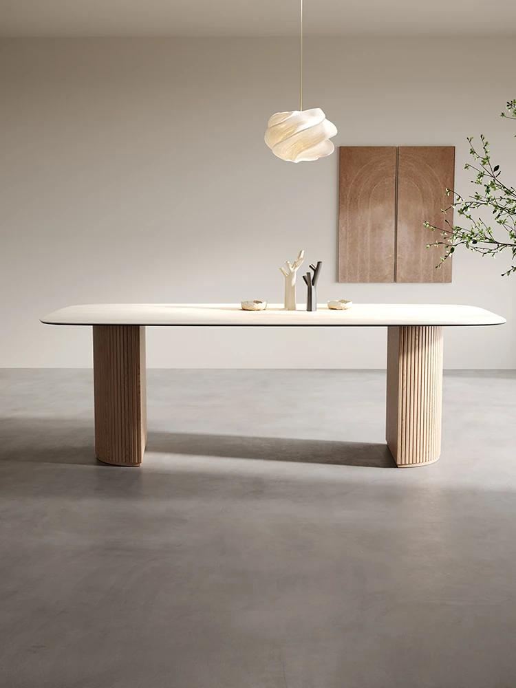 インポート洞石岩板ダイニングテーブル 北欧スタイル 家庭用 デザイナーの侘寂風 原木色 ホワイトアッシュ木製テーブル&チェアセットで、洗練された空間を演出し、心地よい食事のひとときを楽しめます!
