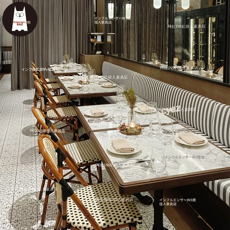 高級感溢れる実木&岩板大理石製フレンチスタイルのダイニングテーブル!カフェやスイーツ店、バーに最適なスタイリッシュな角テーブルとチェアのセット。おしゃれな空間を演出し、お客様を惹きつける一品です!