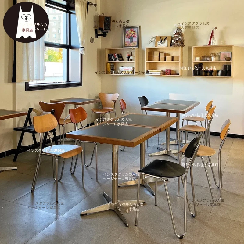 インスタ映えするカフェ&スイーツ店の大理石テーブル&椅子セット!フレンチレストランにもぴったりな無垢材の岩板方テーブル、小さなバルに最適なダイニングテーブルで、おしゃれな空間を演出します!